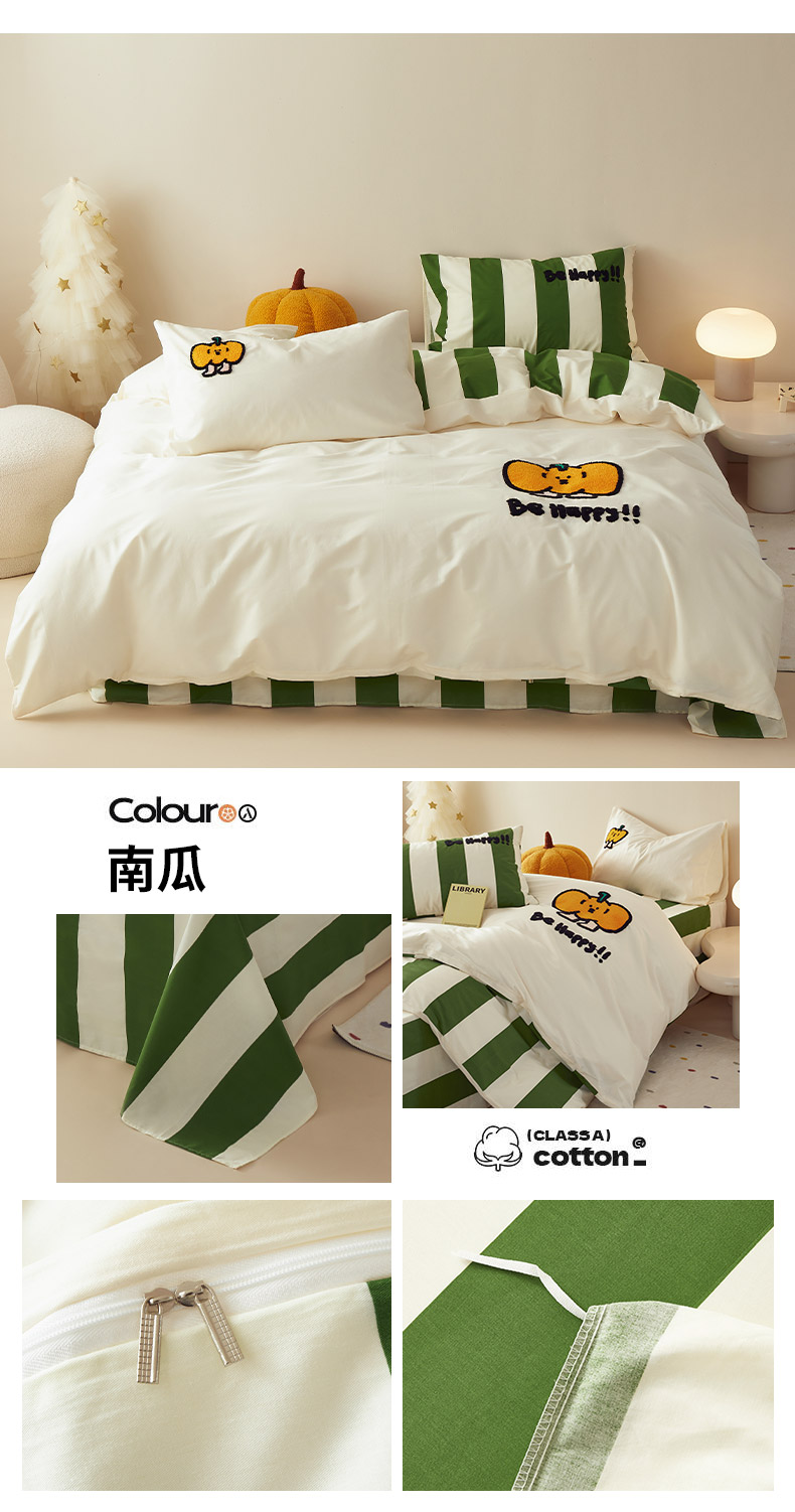 怡家居 2024新款全棉印花加绣花四件套 南瓜
