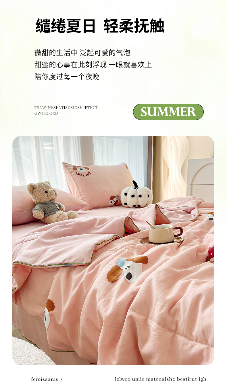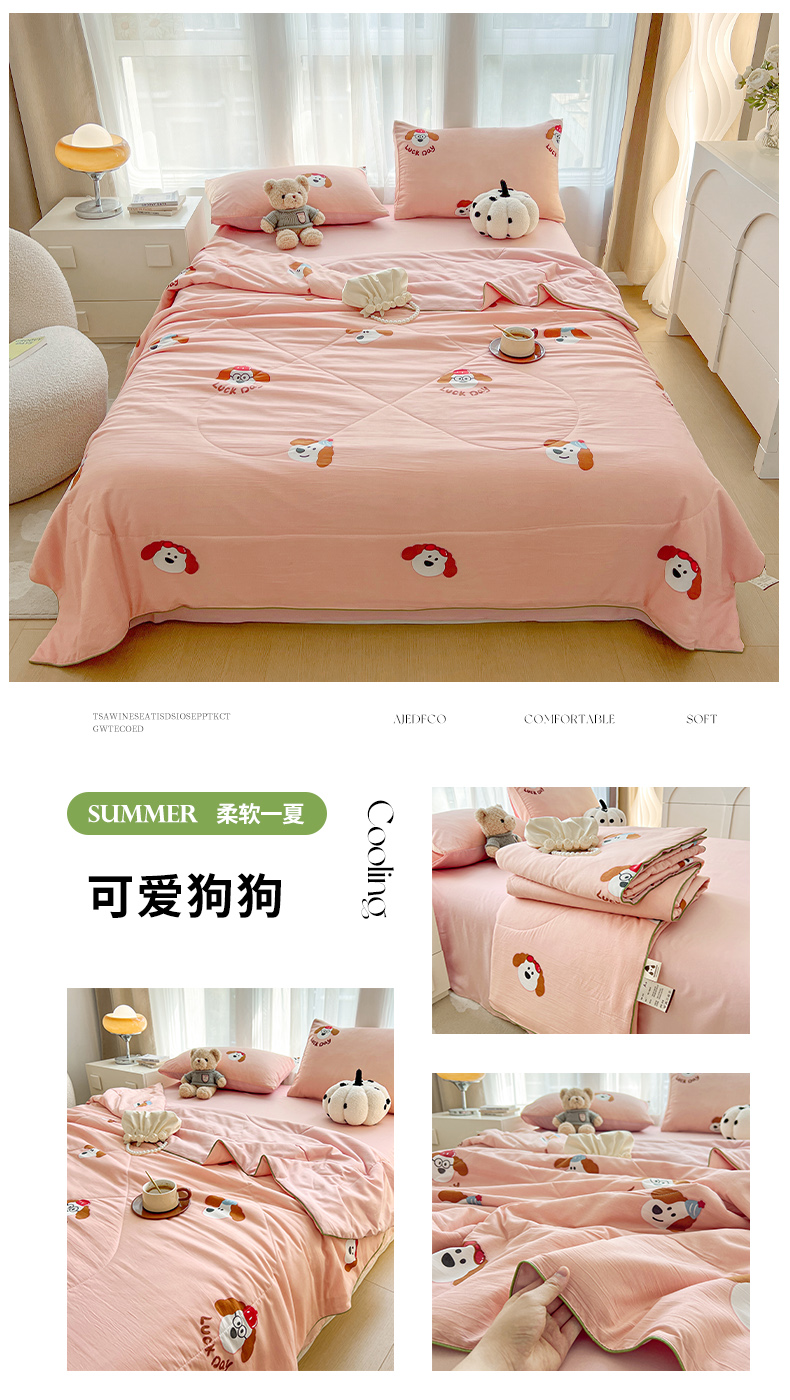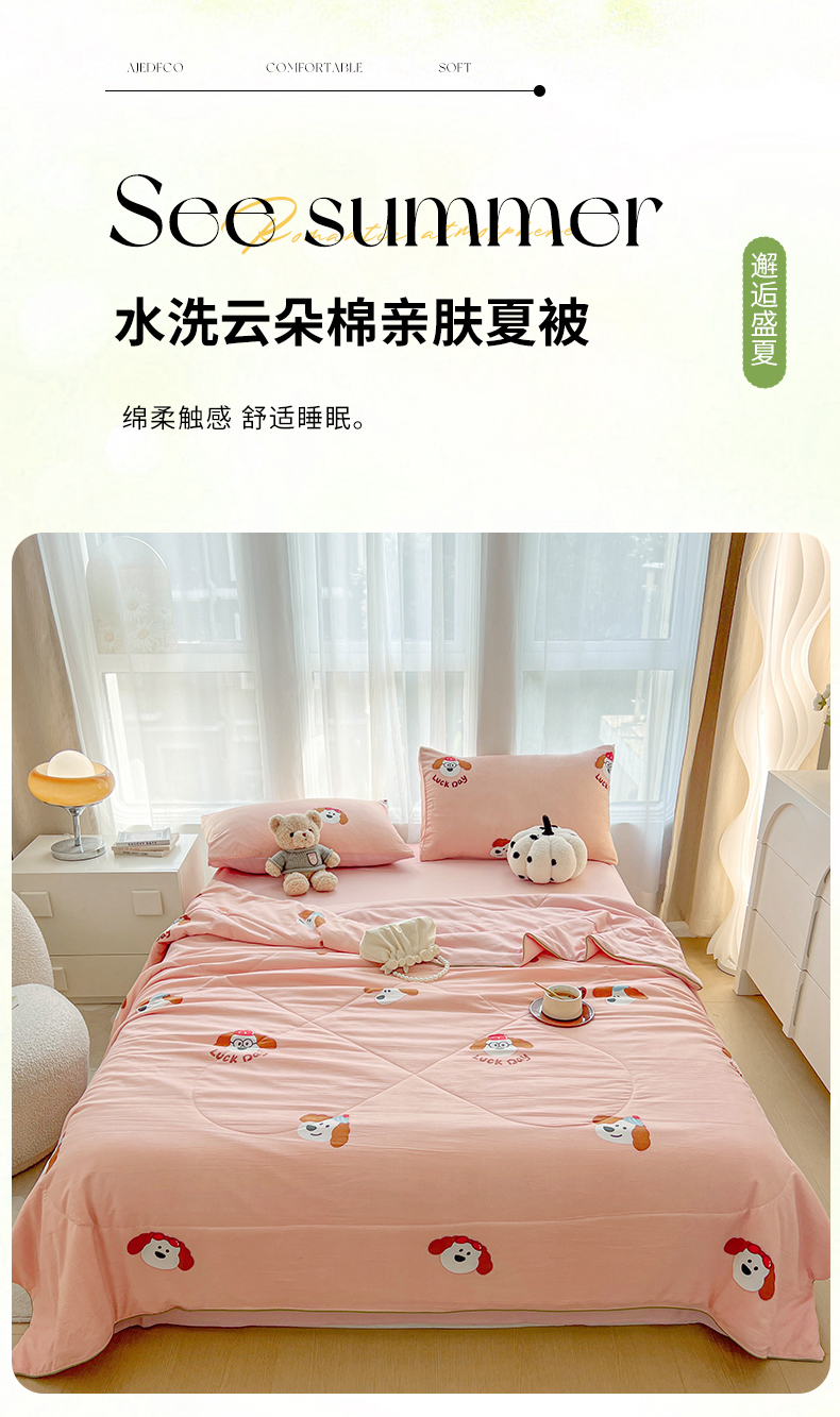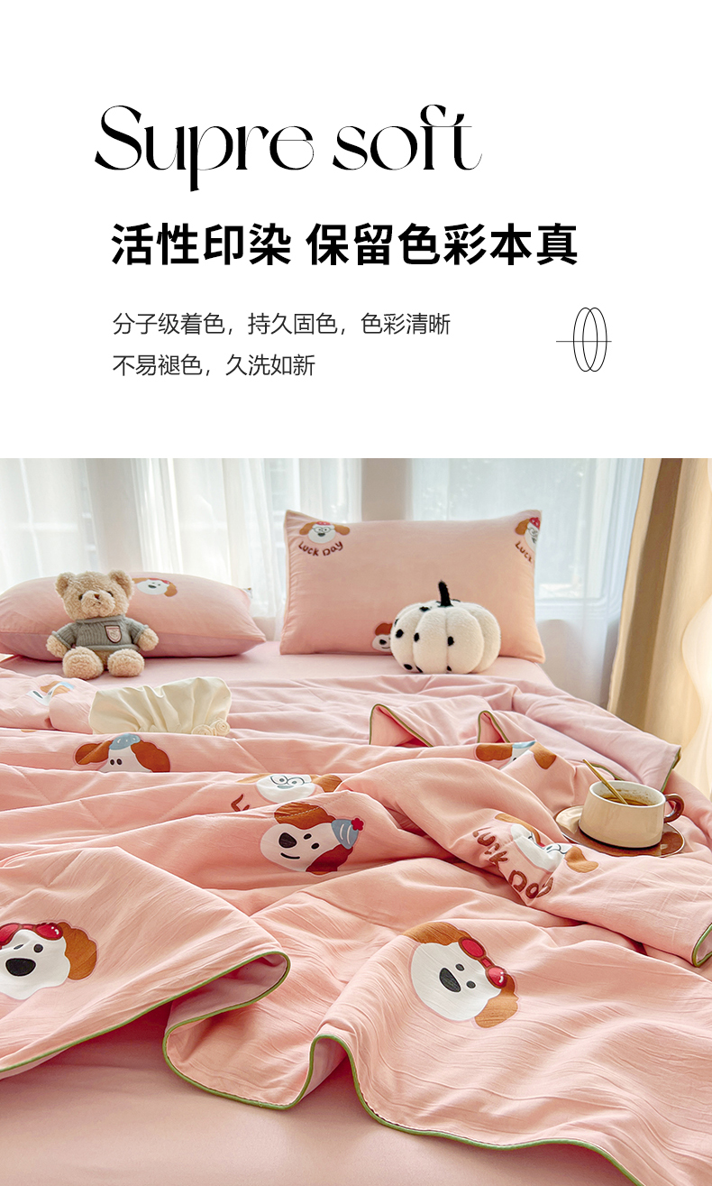 宏源家纺 2024新款超柔水洗云朵棉夏被 可爱狗狗