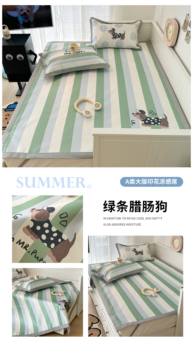 昔可家纺 2024新款A类900D大版冰丝席 绿条腊肠狗