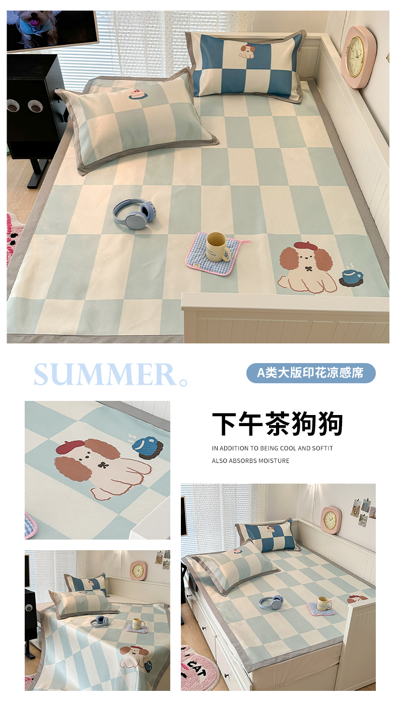 昔可家纺 2024新款A类900D大版冰丝席 下午茶狗狗