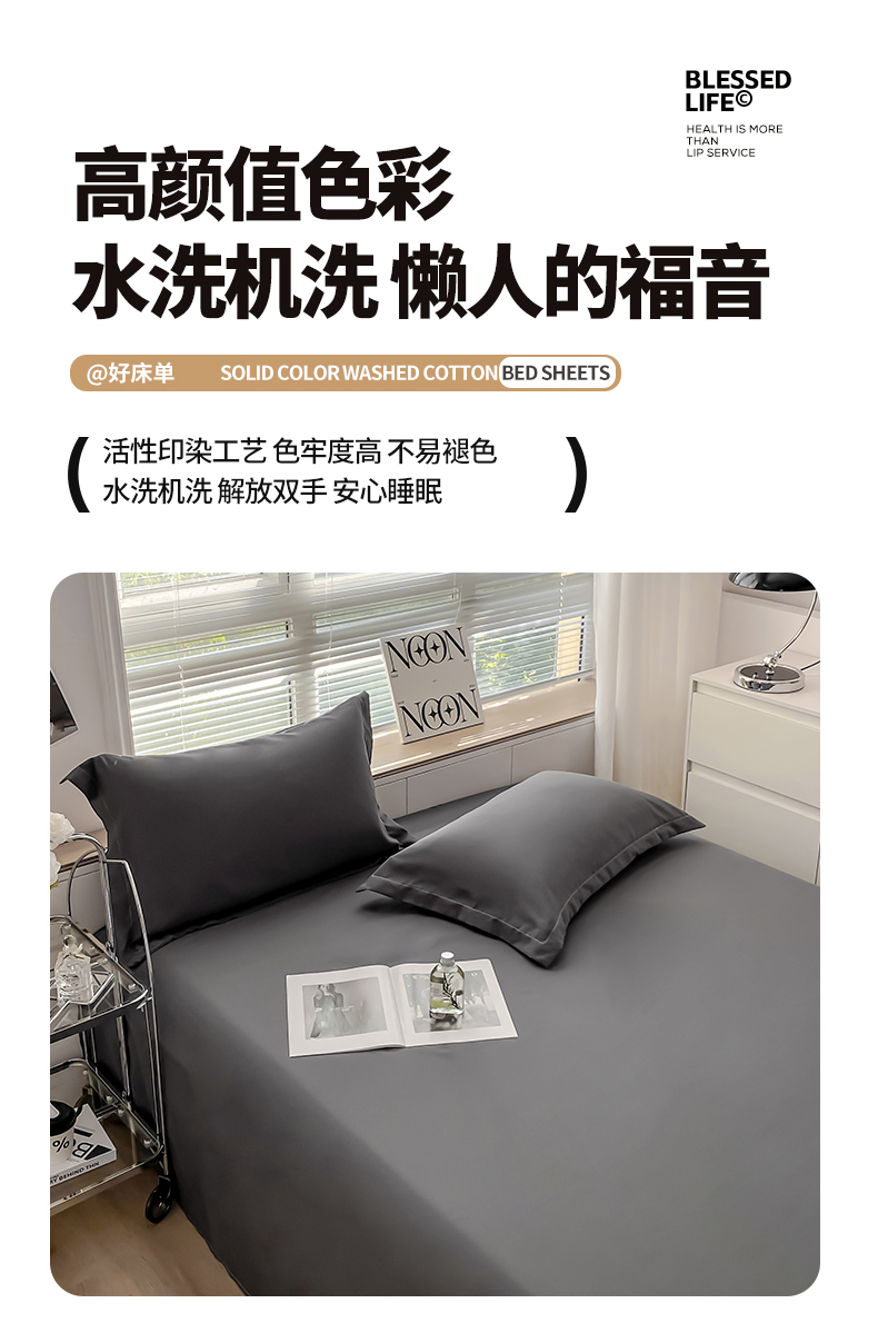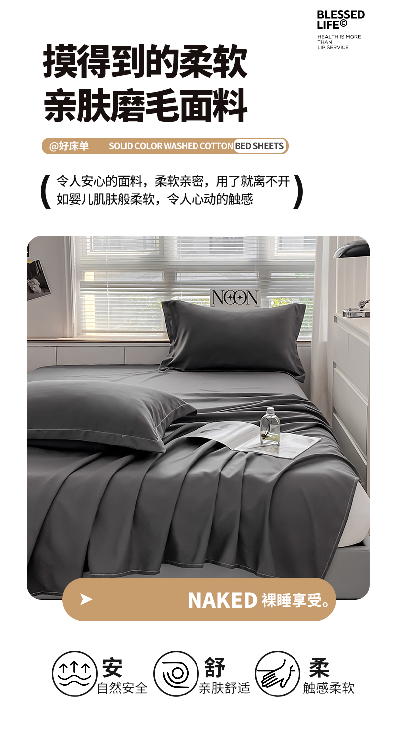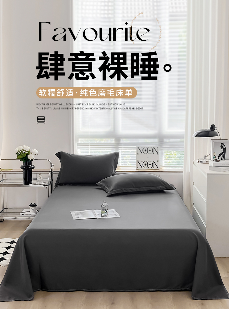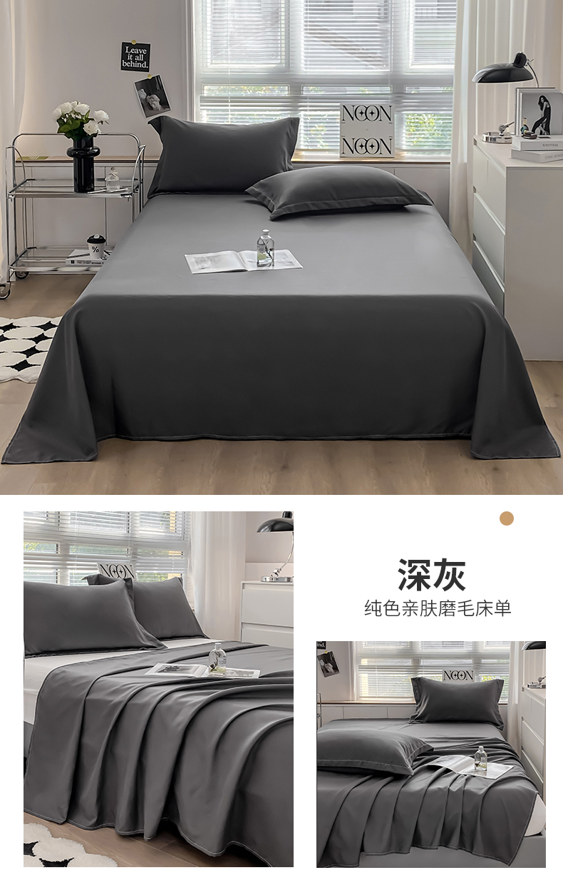 商品名称:恬澳家纺 2024新款亲肤磨毛纯色床单 深灰