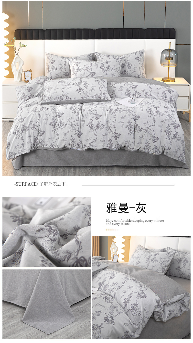 商品名称:木兰花 2024新款民宿空气感全棉双层提花四件套床单款小众色织水洗棉床笠款 雅曼-灰