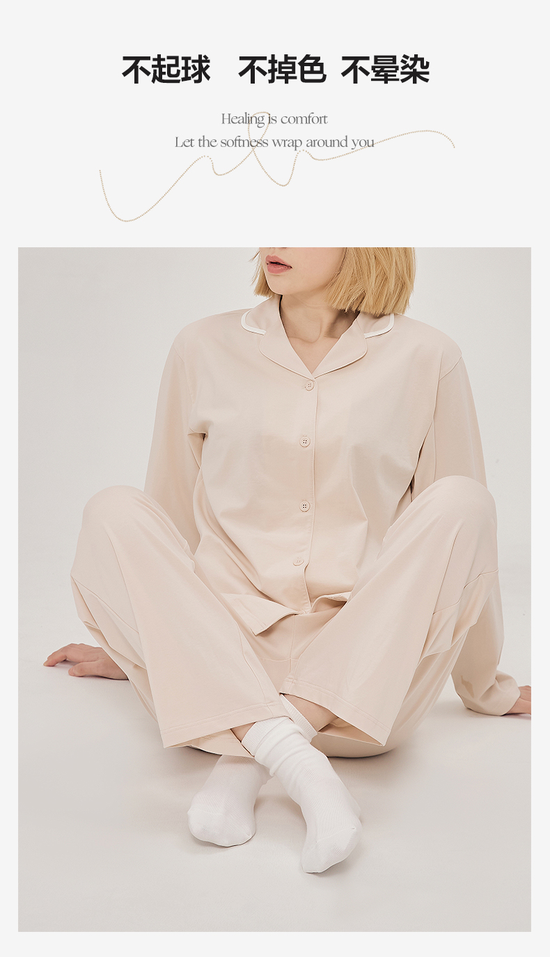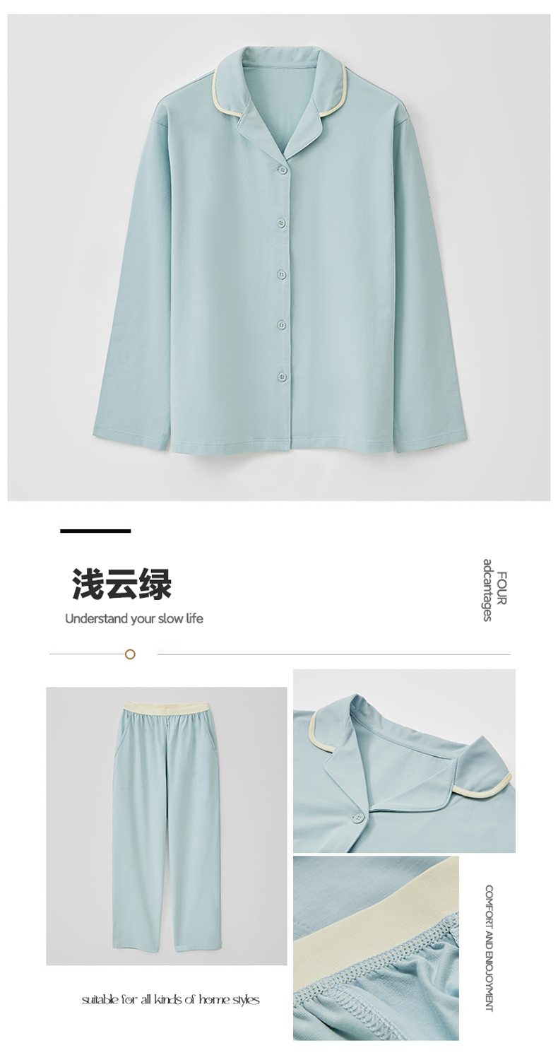 商品名称:EH 2024新款全棉男女情侣款家居服-男女款翻领 女款浅云绿