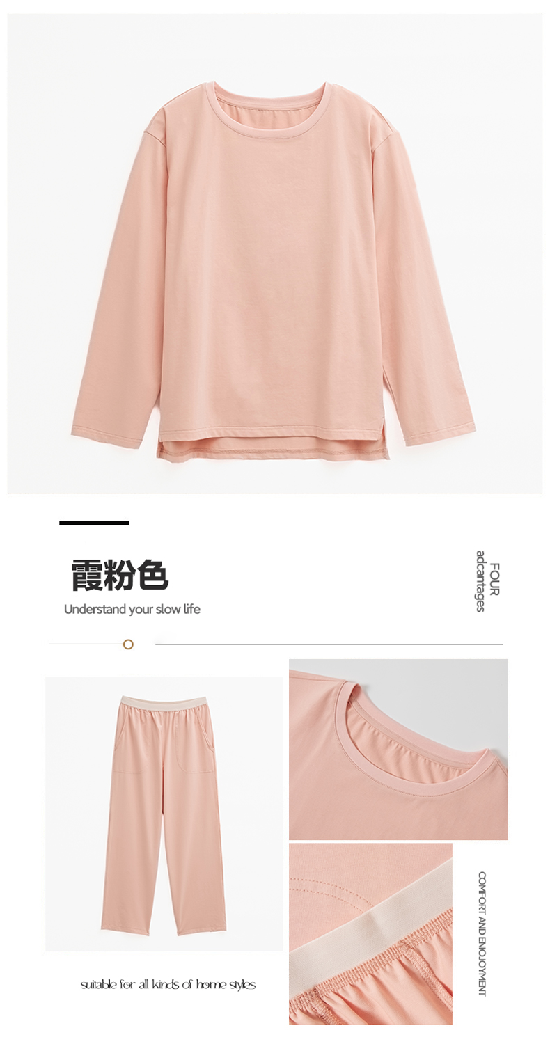 商品名称:EH家居 2024新款全棉男女情侣款家居服-女款圆领 霞粉色