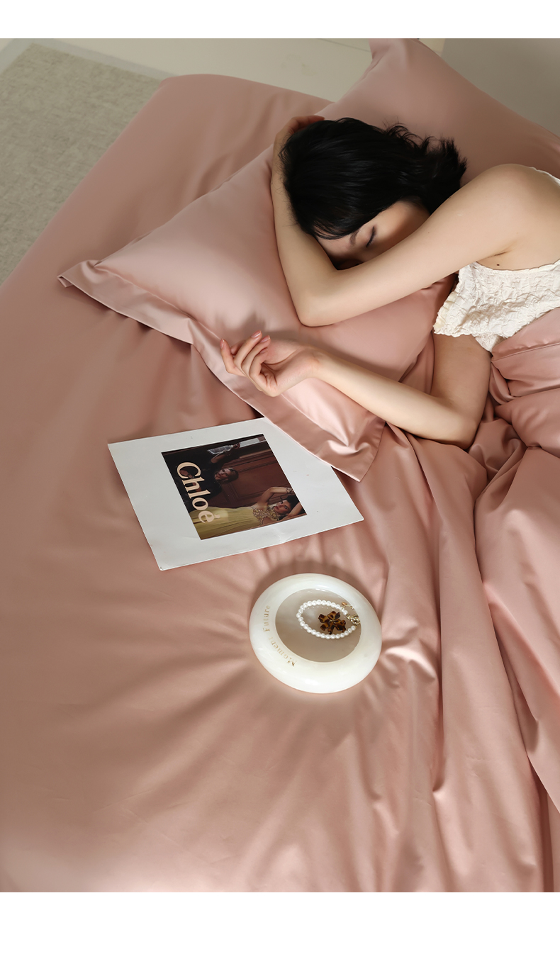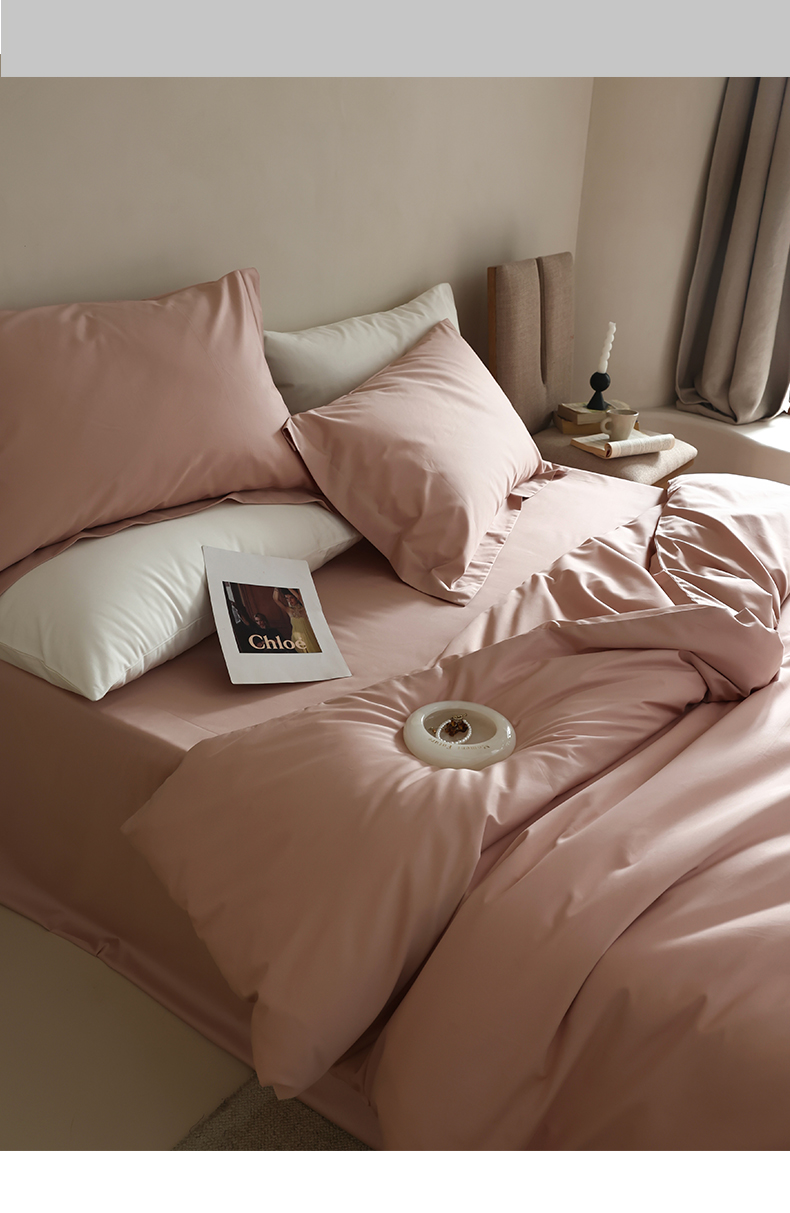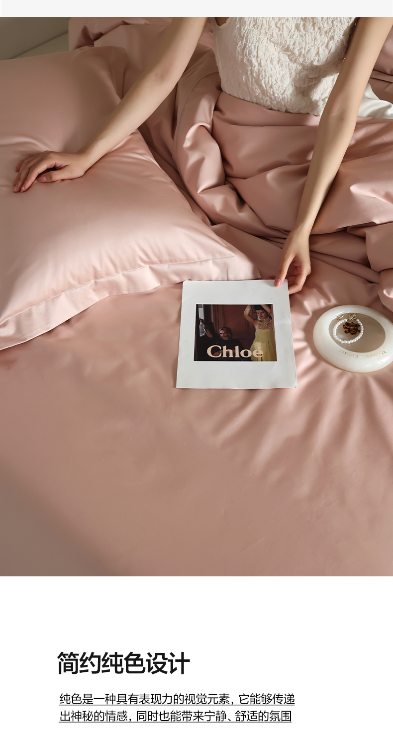 轩和 2024新款70支埃及匹马棉纯棉纯色四件套风格二 画眉粉
