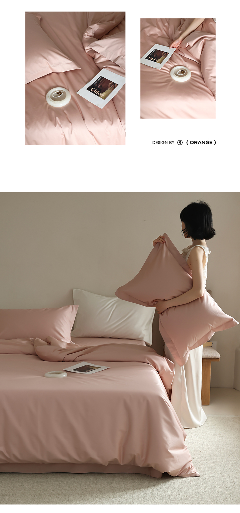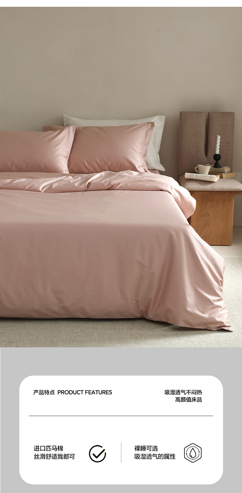 商品名称:轩和 2024新款70支埃及匹马棉纯棉纯色四件套风格二 画眉粉