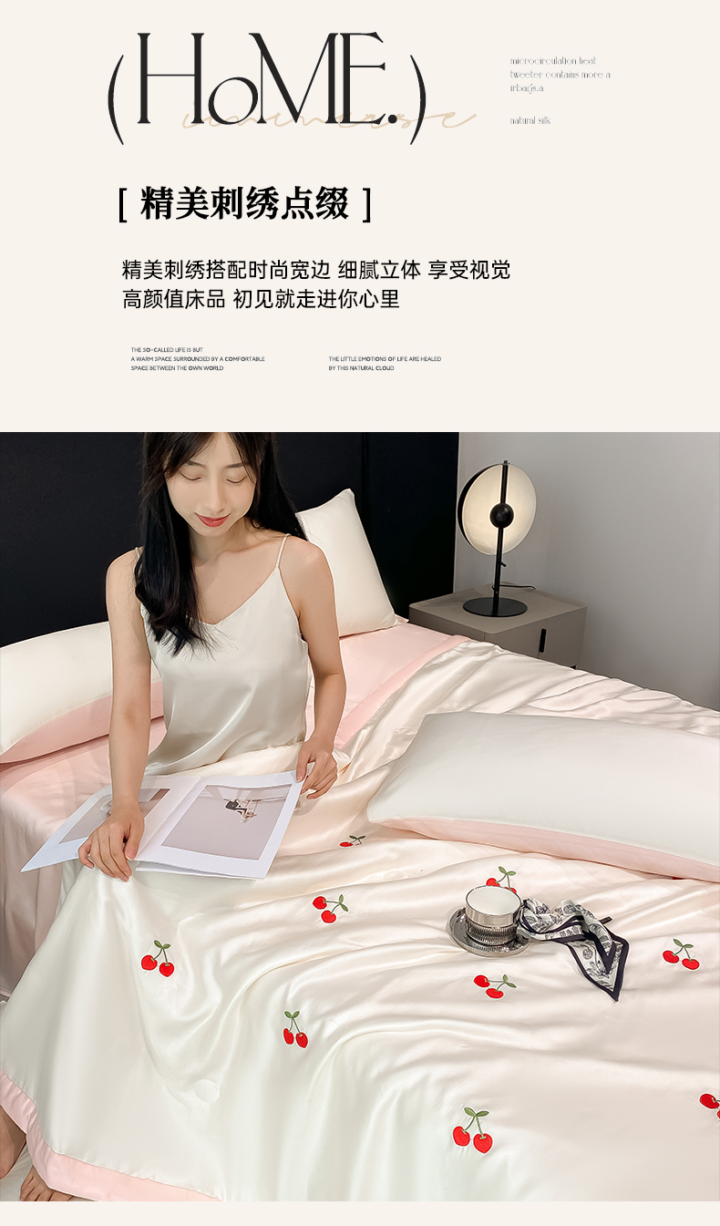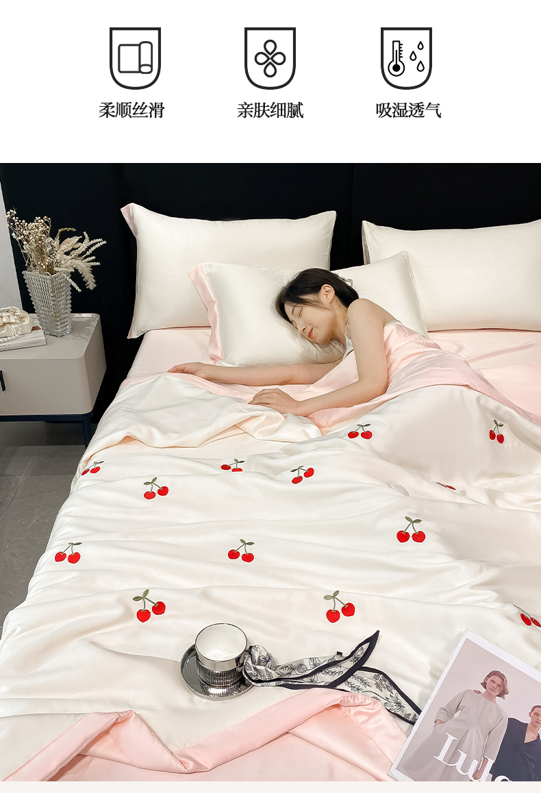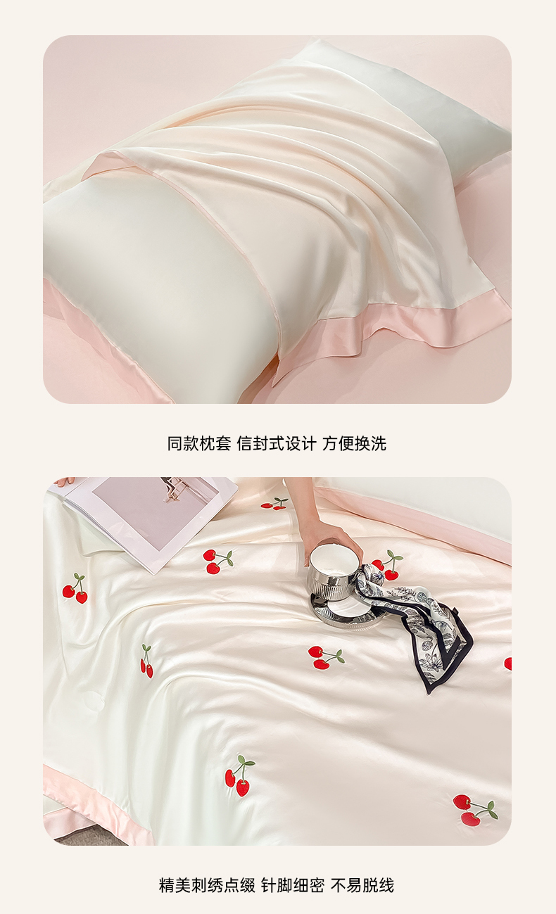 当前位置: 91家纺网 > 商品网购 > 床品套件 > 四件套 > 夏被四件套 > 利欧 2025新款刺绣水洗真丝夏被四件套 樱桃-奶白粉