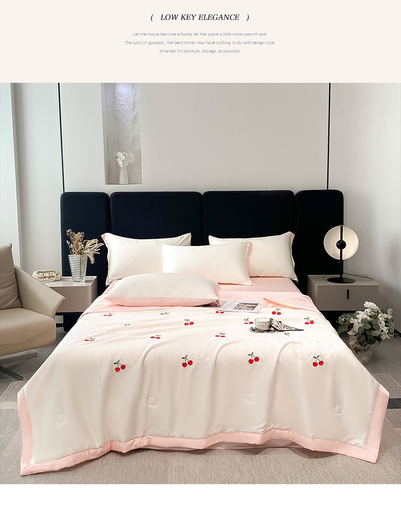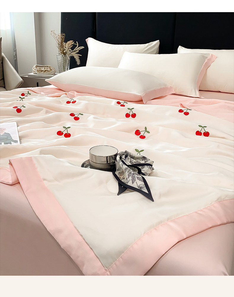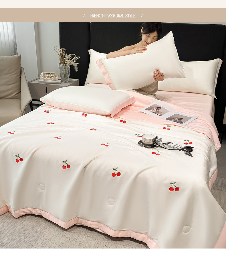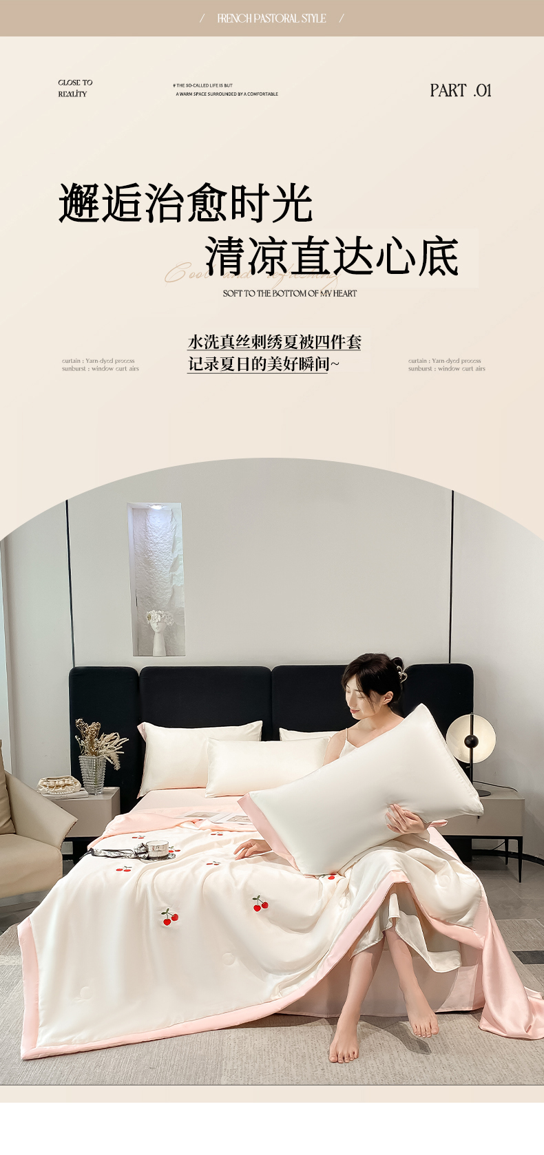 当前位置: 91家纺网 > 商品网购 > 床品套件 > 四件套 > 夏被四件套 > 利欧 2025新款刺绣水洗真丝夏被四件套 樱桃-奶白粉