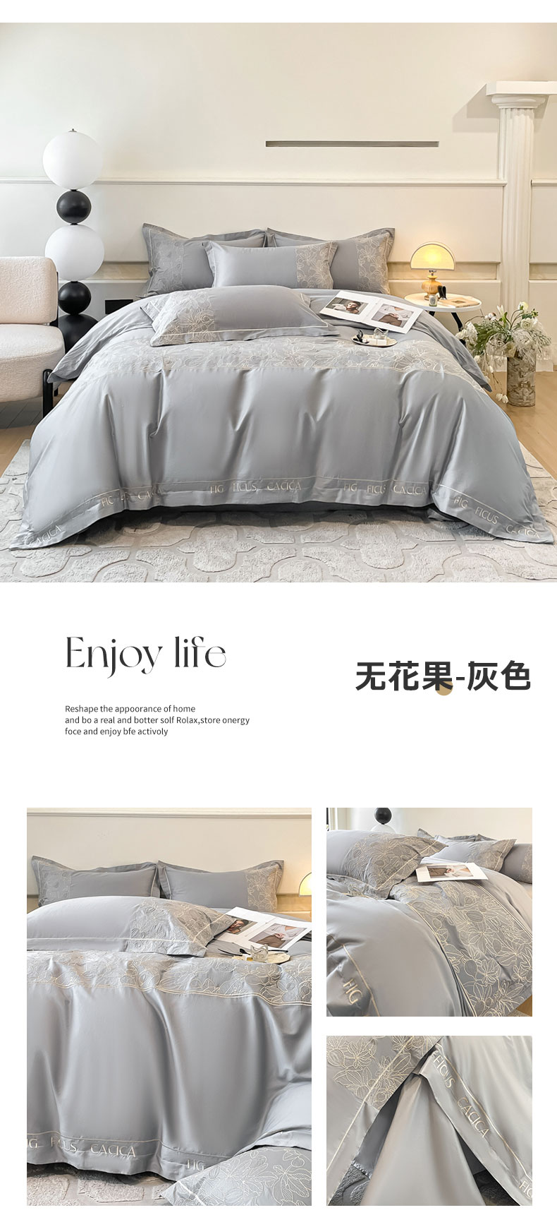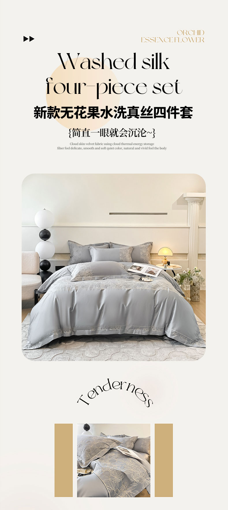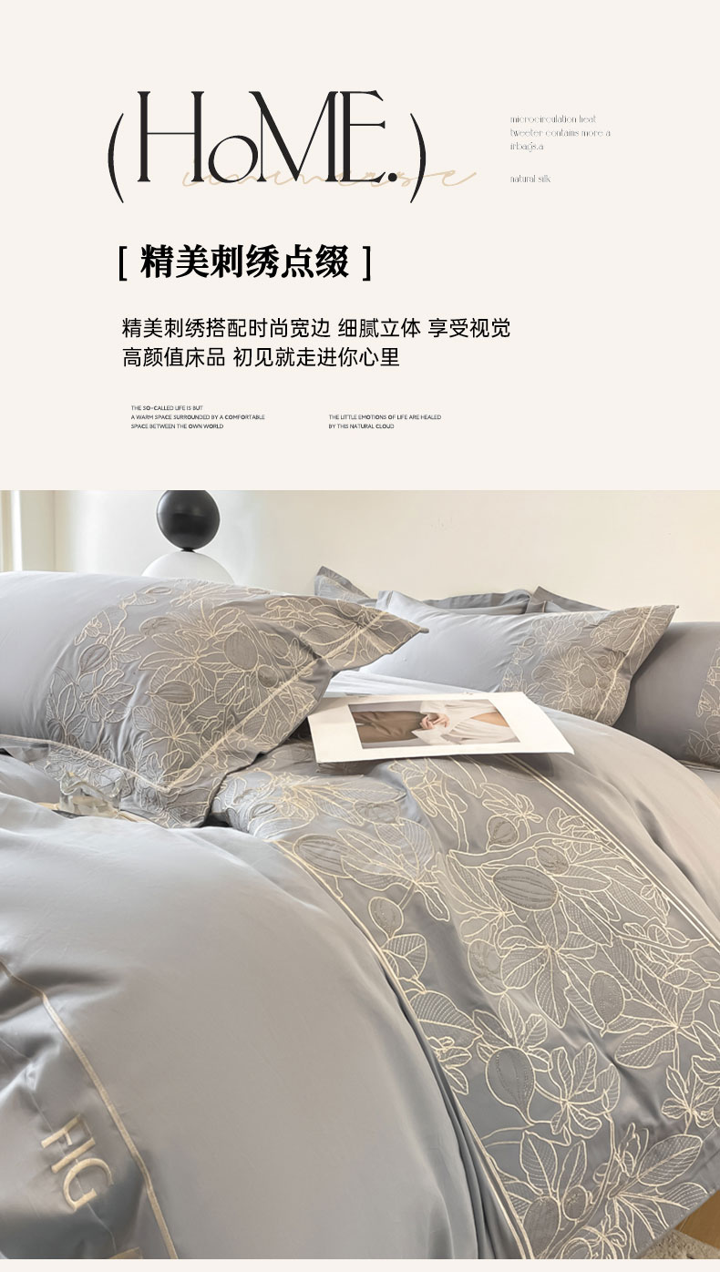红嘴企鹅 2025新款无花果水洗真丝四件套 无花果-灰色