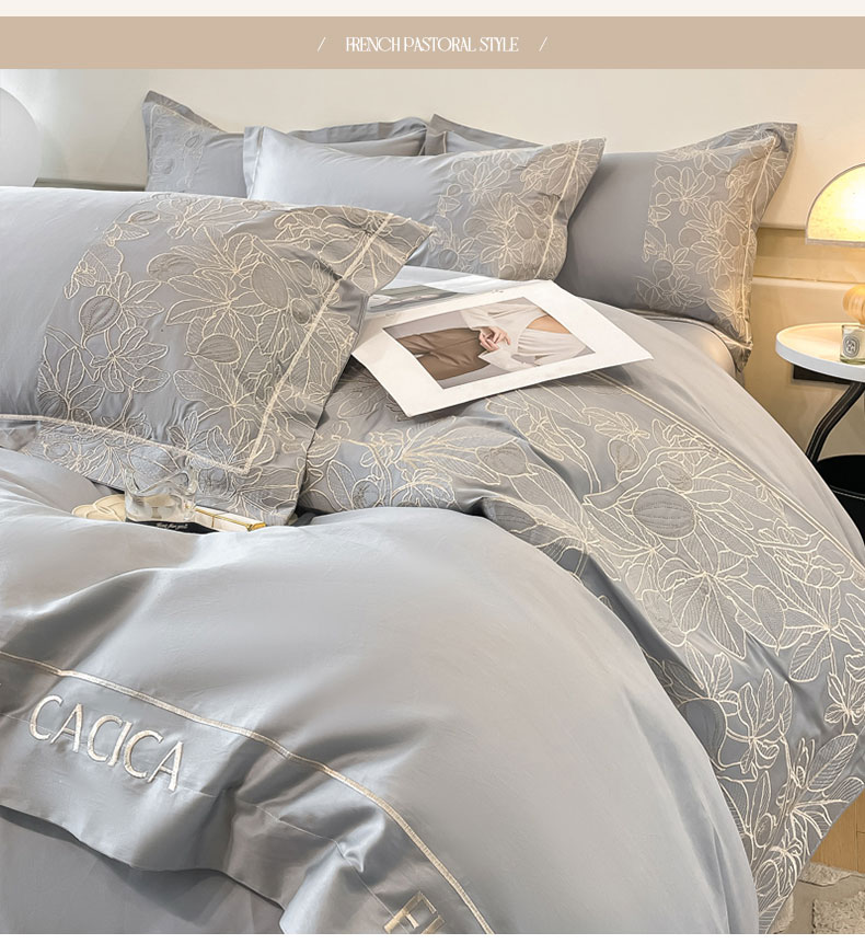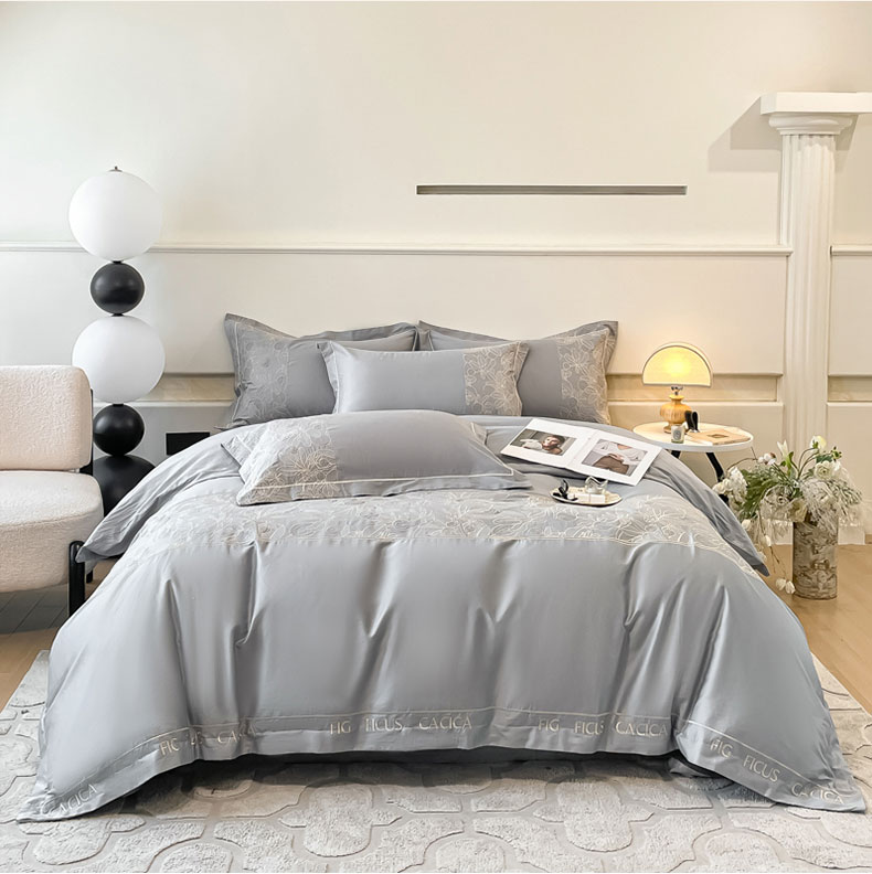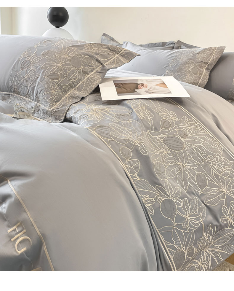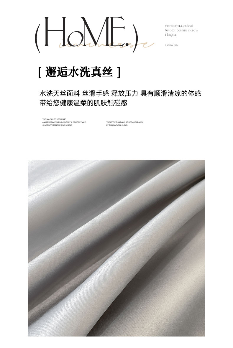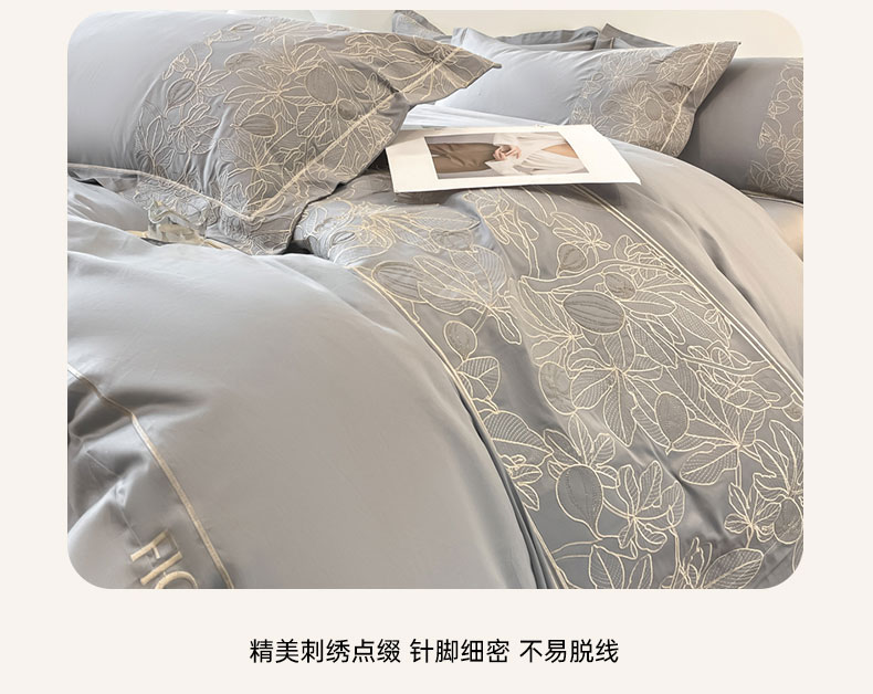 红嘴企鹅 2025新款无花果水洗真丝四件套 无花果-灰色
