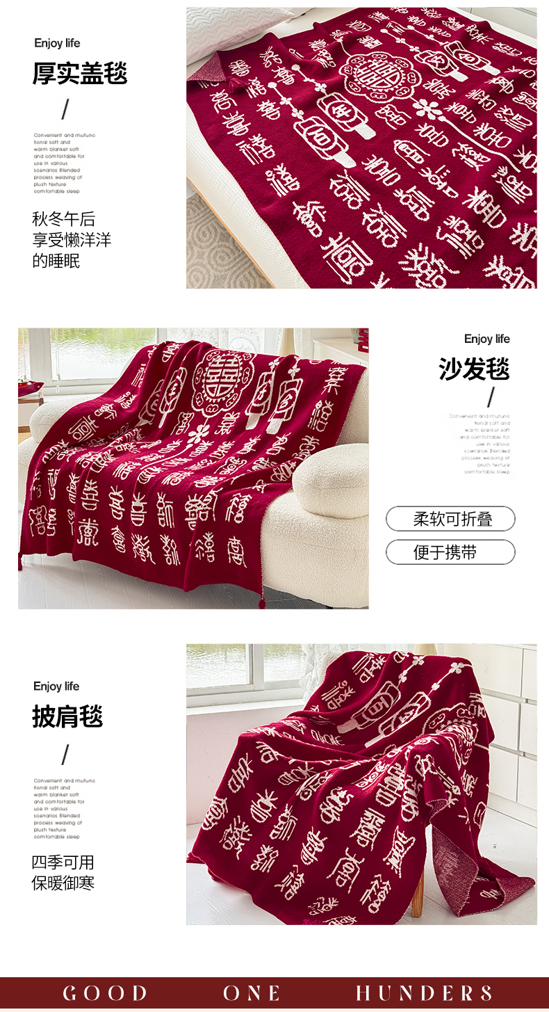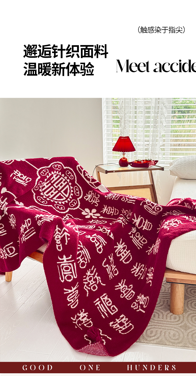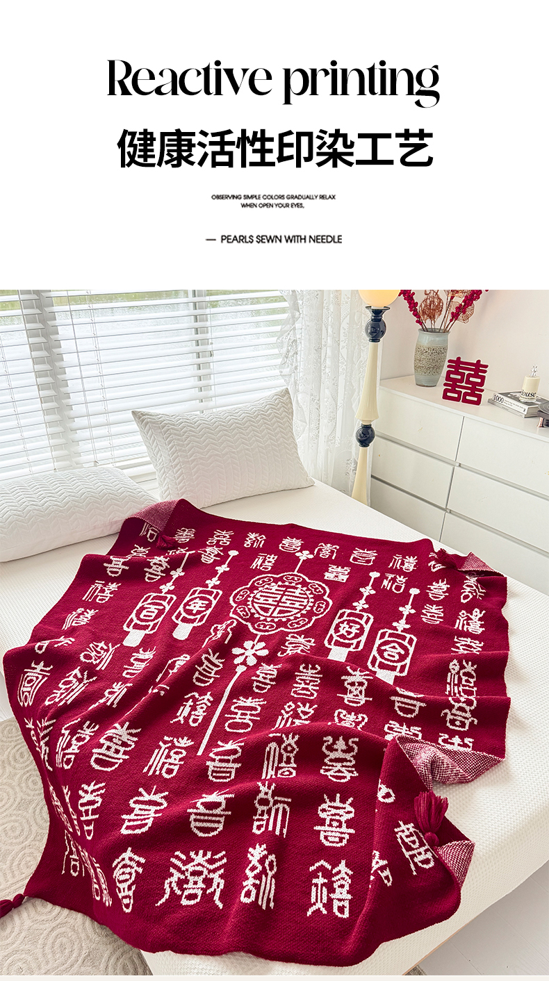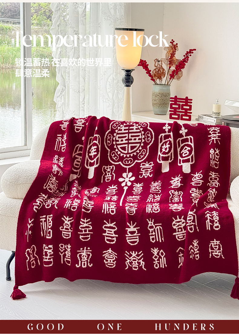 当前位置: 91家纺网 > 商品网购 > 毛毯休闲毯绒毯 > 针织毯 > 苏艺针织盖毯 2024新款中式风高端婚礼喜字毛毯 针织喜-繁百年好合盖毯