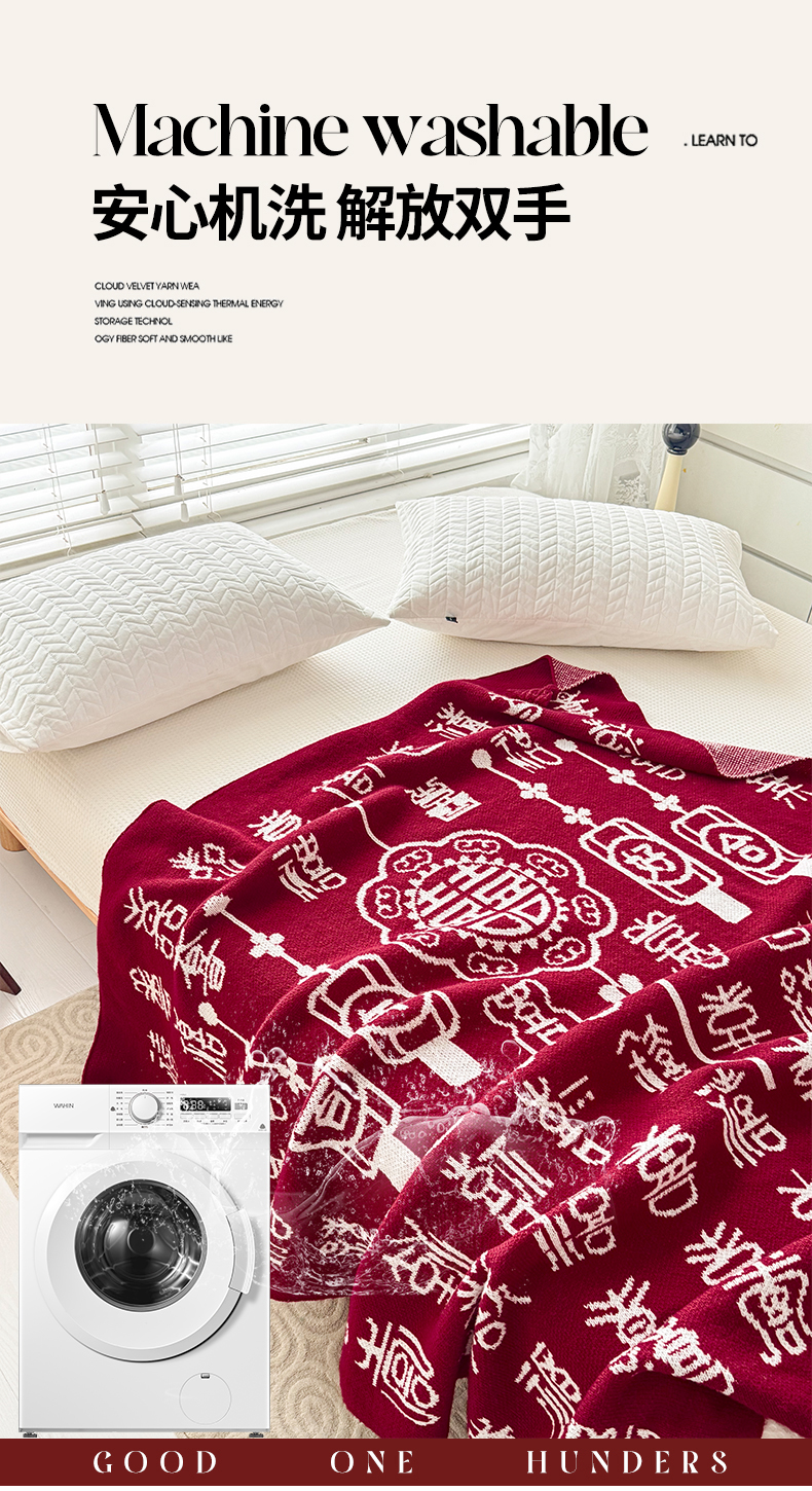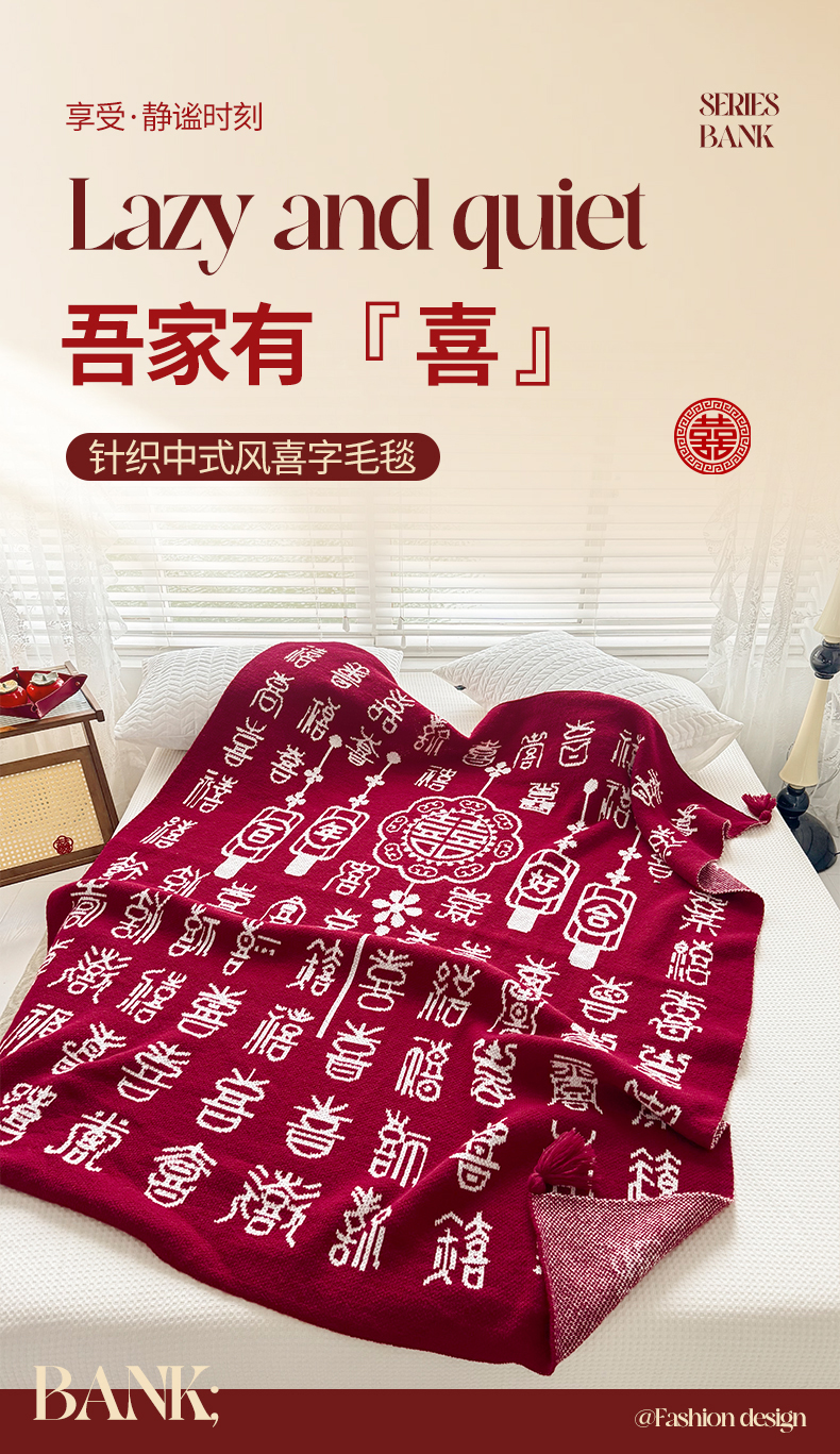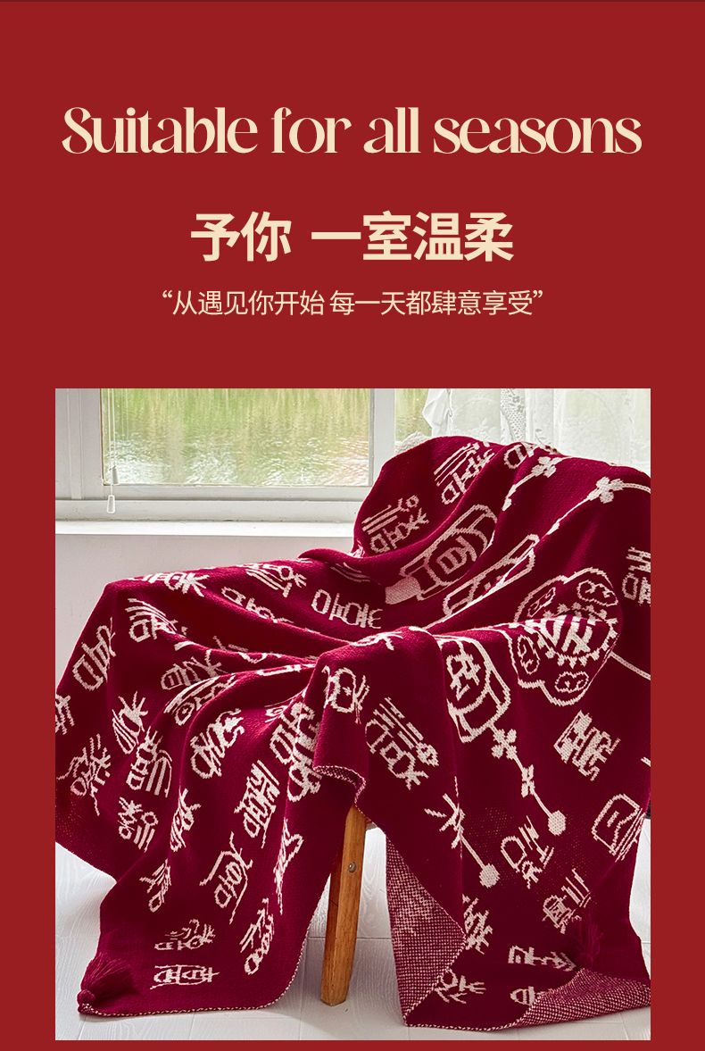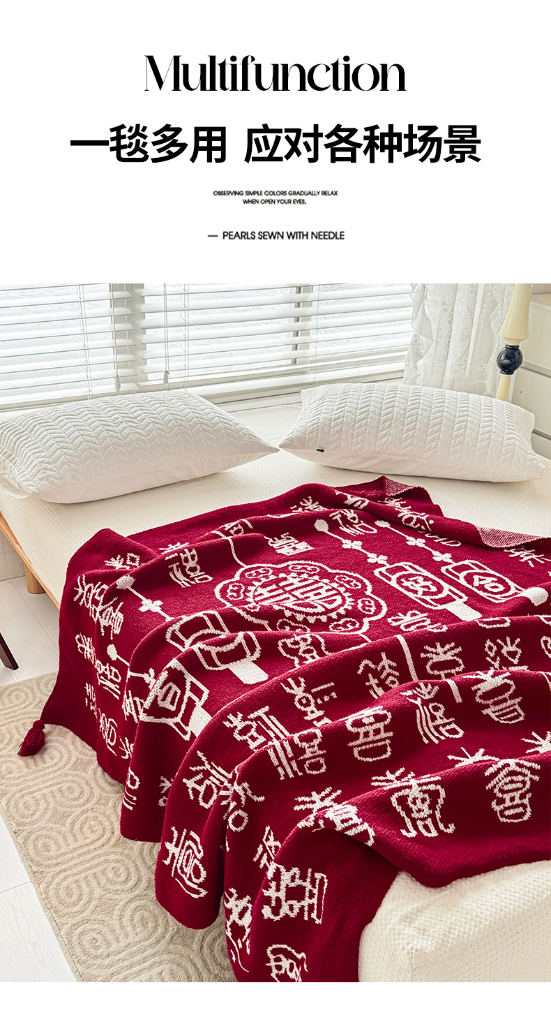 当前位置: 91家纺网 > 商品网购 > 毛毯休闲毯绒毯 > 针织毯 > 苏艺针织盖毯 2024新款中式风高端婚礼喜字毛毯 针织喜-繁百年好合盖毯