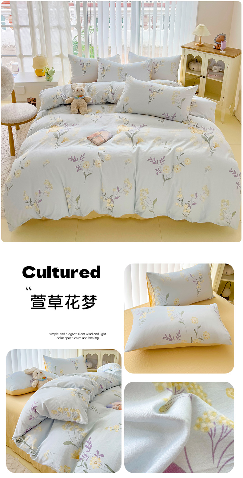 当前位置: 91家纺网 > 商品网购 > 床品套件 > 四件套 > 水洗棉四件套 > 玉海棠家纺 2024新款印花水洗棉四件套 萱草花梦