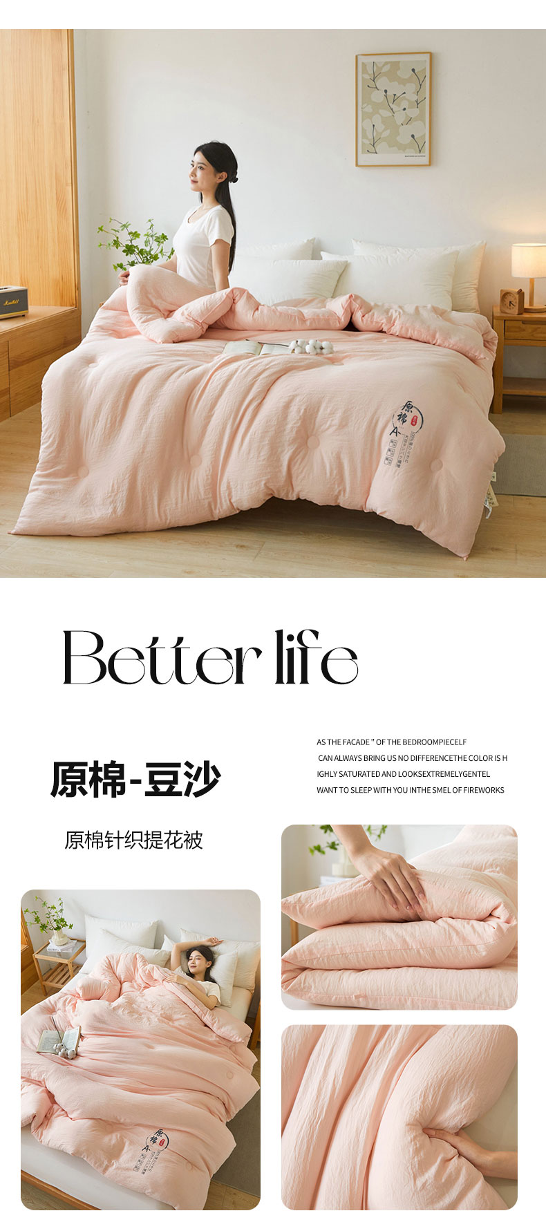 • 91家纺网 家纺一手货源 找家纺 (总)易博家纺 2025新款无印风良品类提花竖条泡泡纱被冬被被芯春秋被空调被,米白,玫粉,浅灰,果绿
