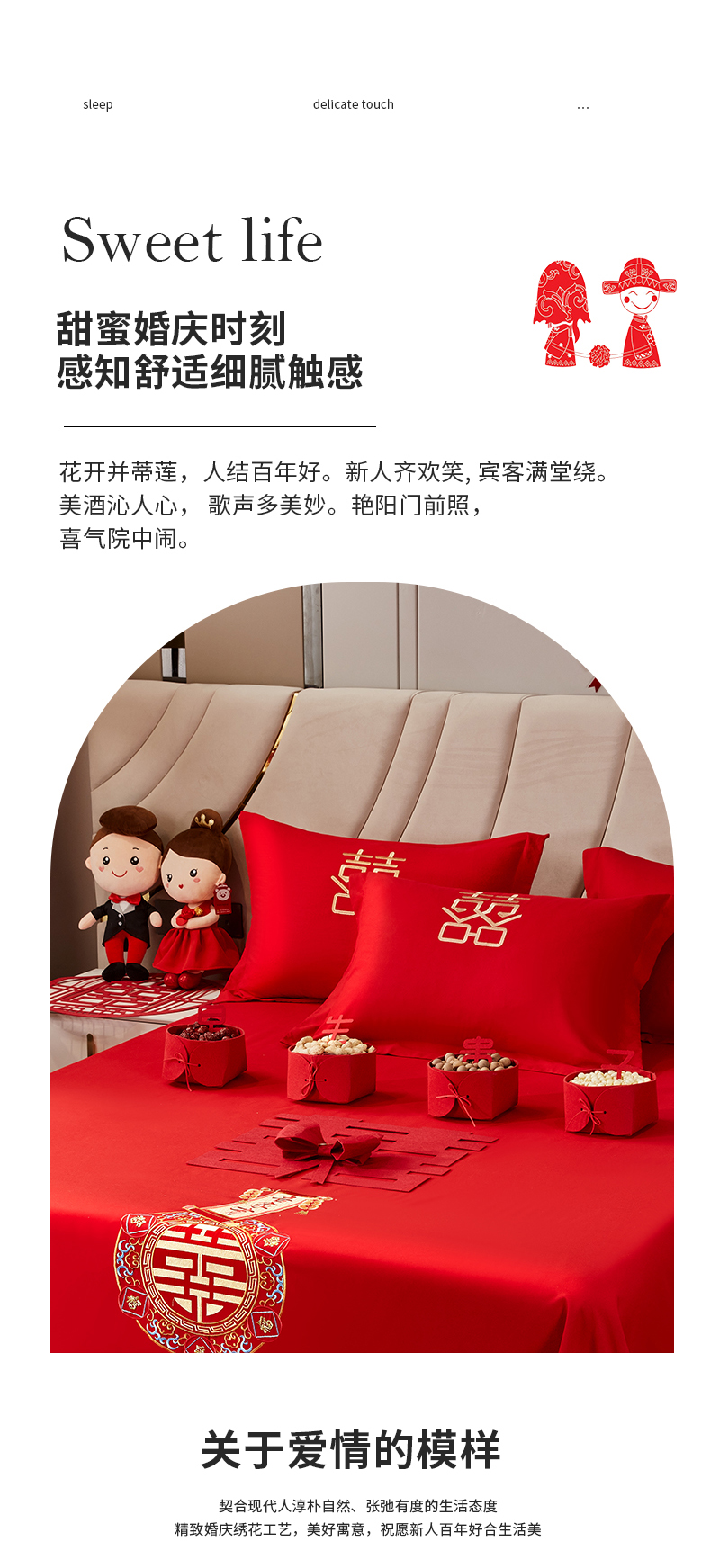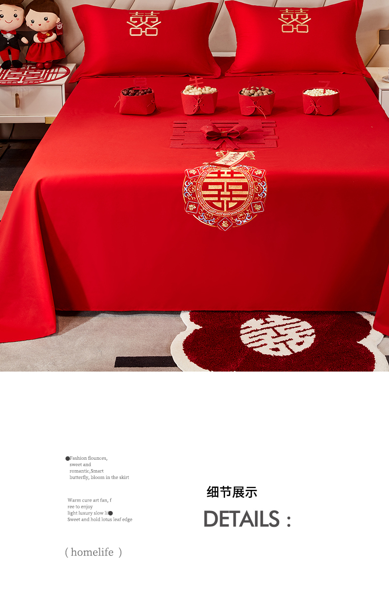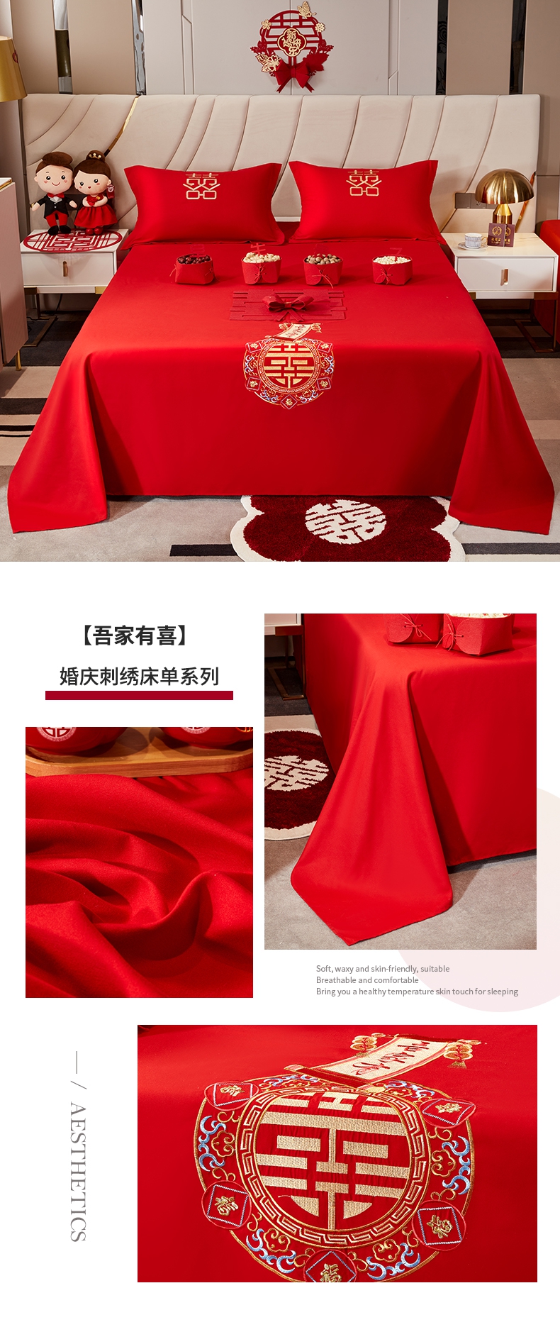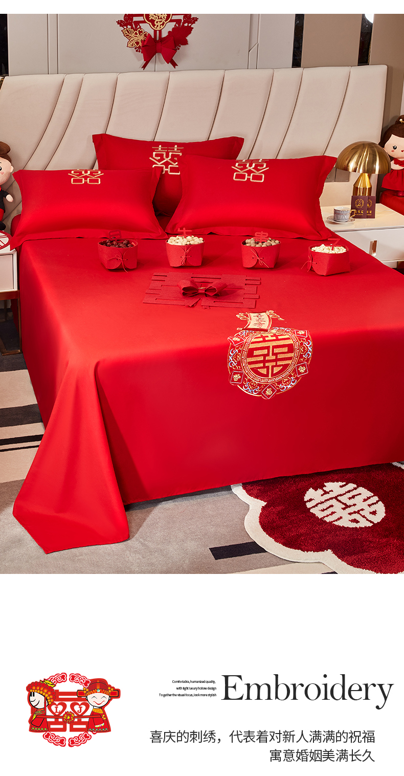 当前位置: 91家纺网 > 商品网购 > 床品套件 > 四件套 > 婚庆四件套 > 玉雅家纺 2025新款婚庆刺绣单品床裙床单床笠三件套 婚庆床单-吾家有喜