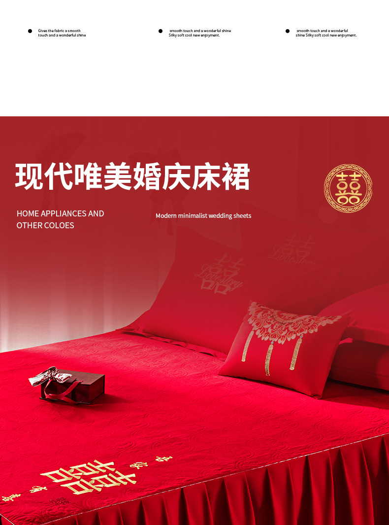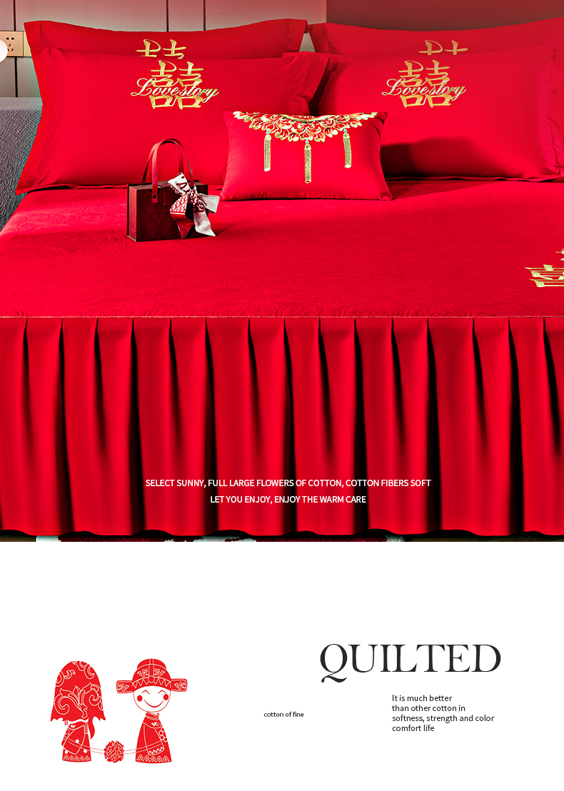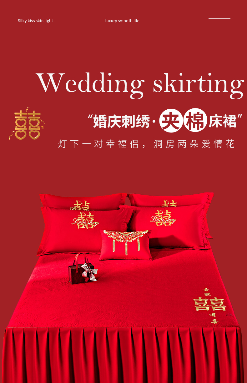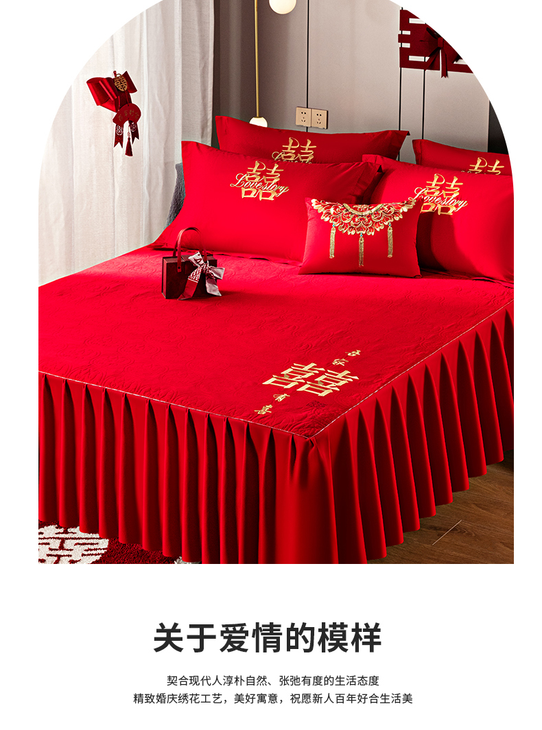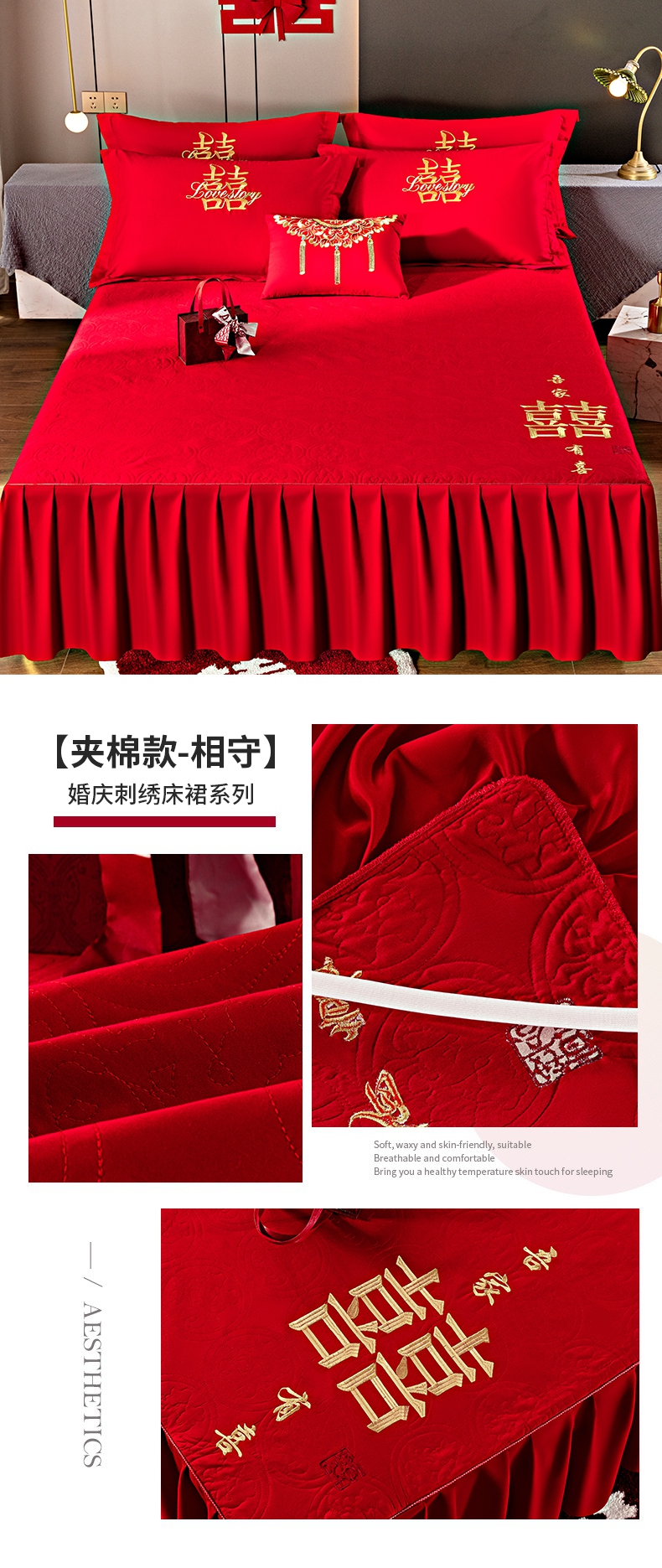 当前位置: 91家纺网 > 商品网购 > 床品套件 > 四件套 > 婚庆四件套 > 玉雅家纺 2025新款婚庆刺绣单品床裙床单床笠三件套 婚庆夹棉床裙-相守