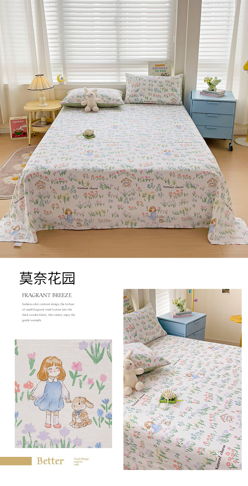 • 91家纺网 家纺一手货源 找家纺 名兮家居 2024年新款全棉床单 莫奈花园