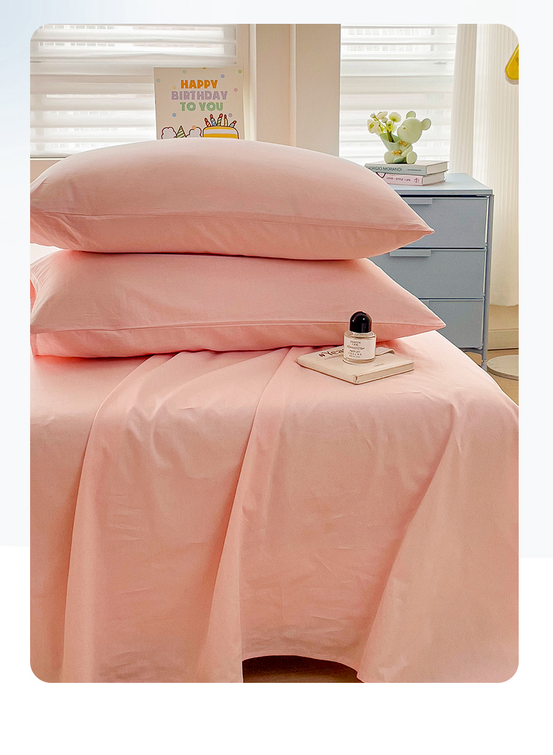 名兮家居 2024新款全棉纯色枕套 百合粉