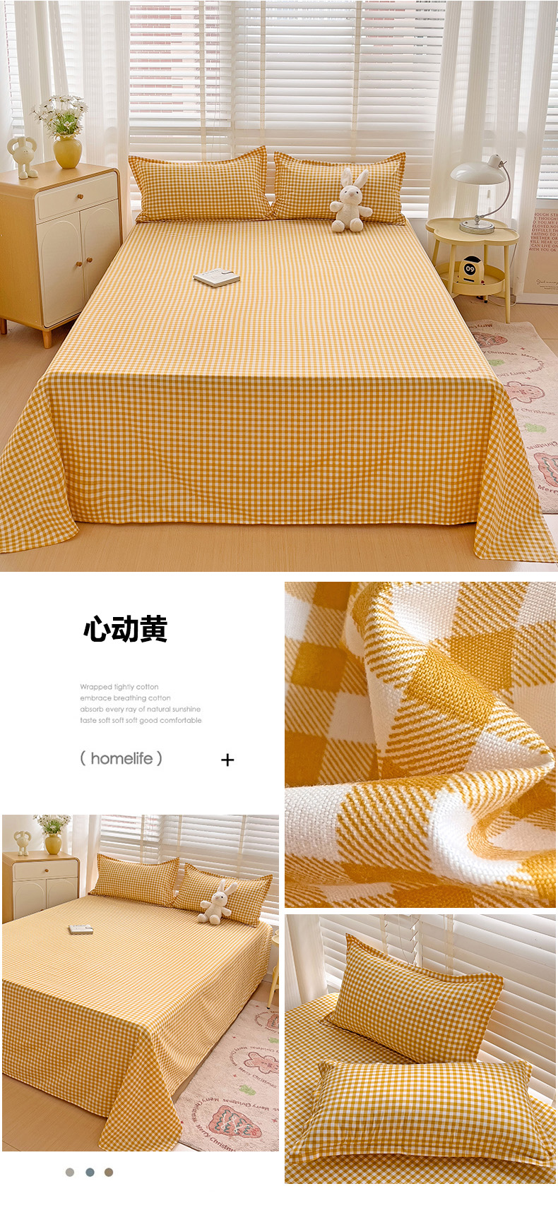 • 91家纺网 家纺一手货源 找家纺 楠沐家纺  2025新款印花亲肤芦荟棉水洗棉床单系列-床单(第二批) 心动黄
