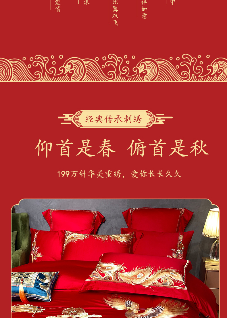 当前位置: 91家纺网 > 商品网购 > 床品套件 > 四件套 > 婚庆四件套 > 美娘阁 2025新款长绒棉贡缎新中式古典韵味精美刺绣婚庆四件套多件套系列 余生有你