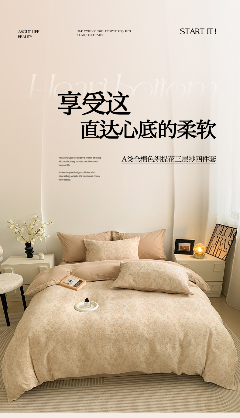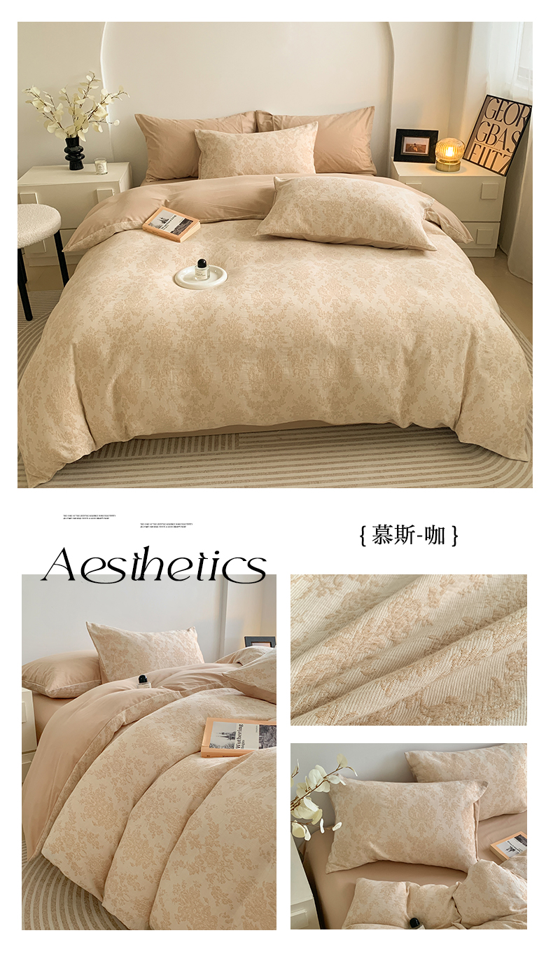 (总)莱茵家居 2025新款A类60支厚织提花美拉德风全棉纯棉四件套-暮合系列,暮合-可可,暮合-米咖,暮合-奶茶,暮合-棕榈