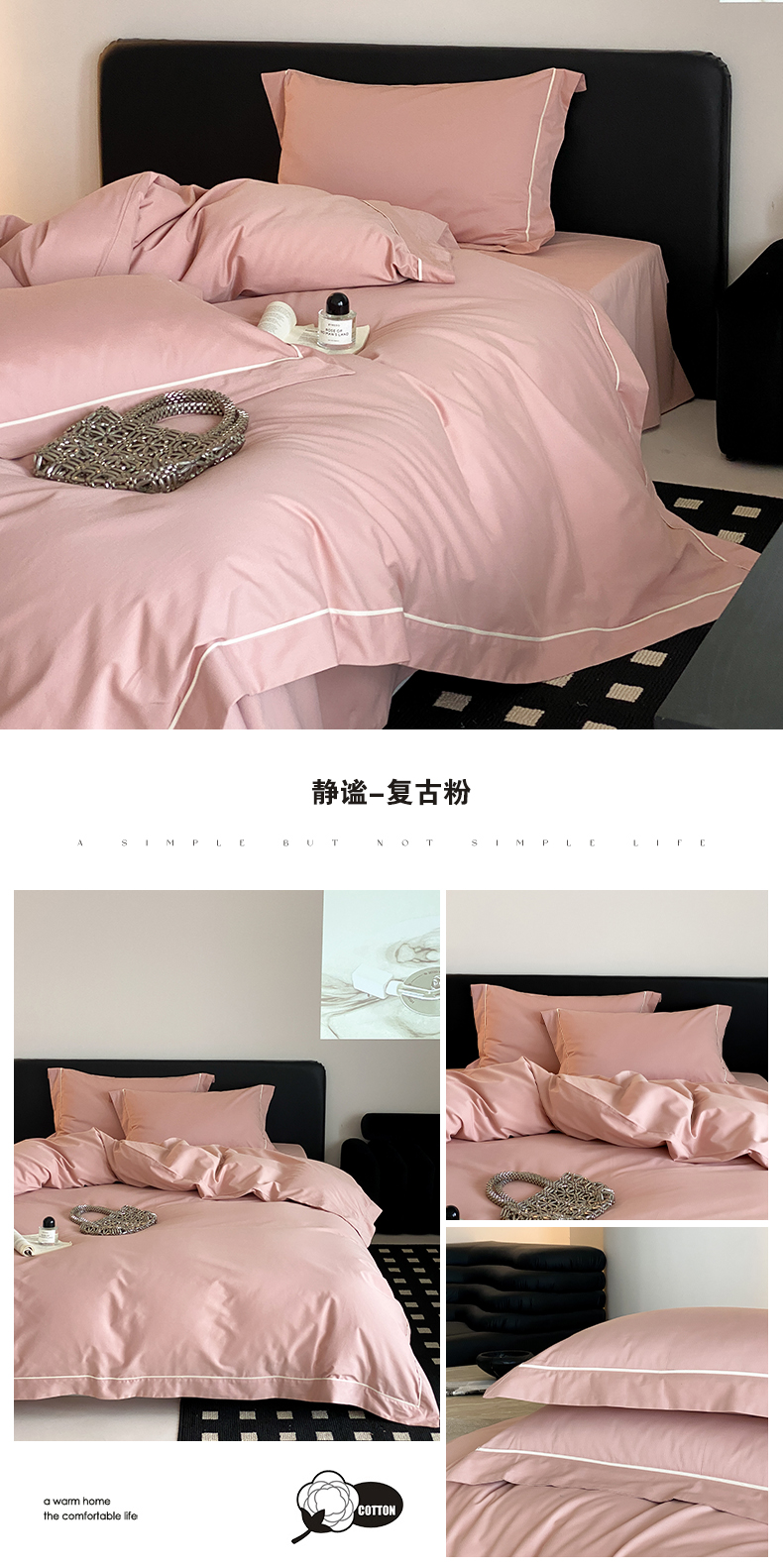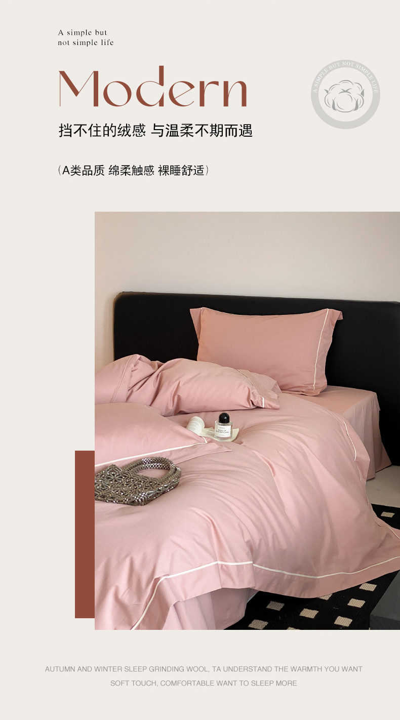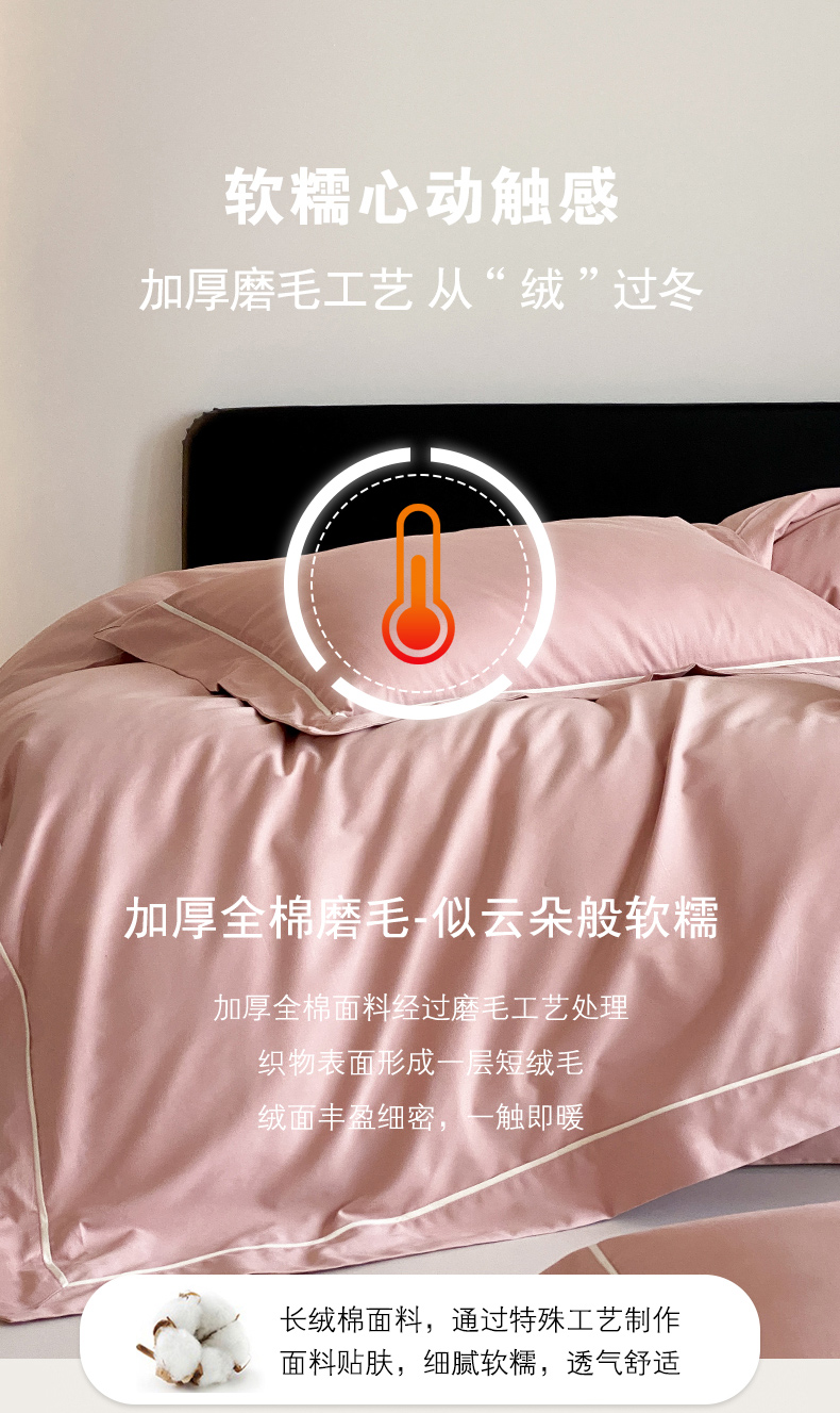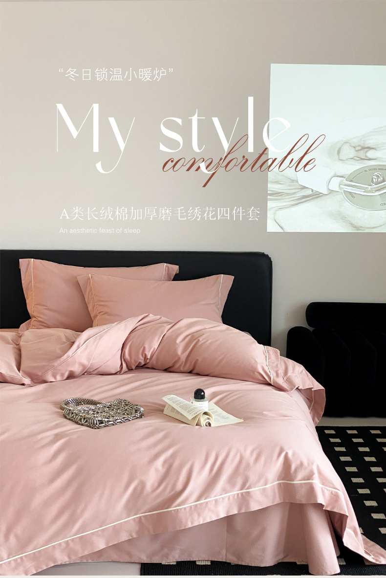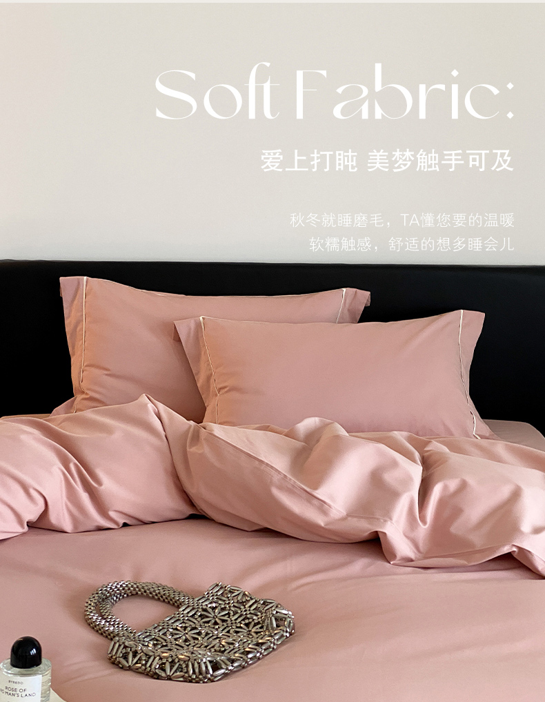 商品名称:云栖家居 2024A类全棉磨毛静谧系列四件套 静谧-复古粉