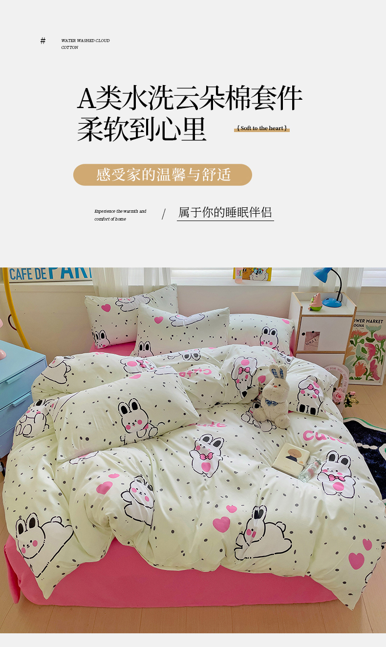 当前位置: 91家纺网 > 商品网购 > 床品套件 > 四件套 > 水洗棉四件套 > 慕晨 2024开学季新款学生宿舍三件套被套小清新卡通超柔水洗云朵棉皱皱泡泡棉四件套 甜心小兔