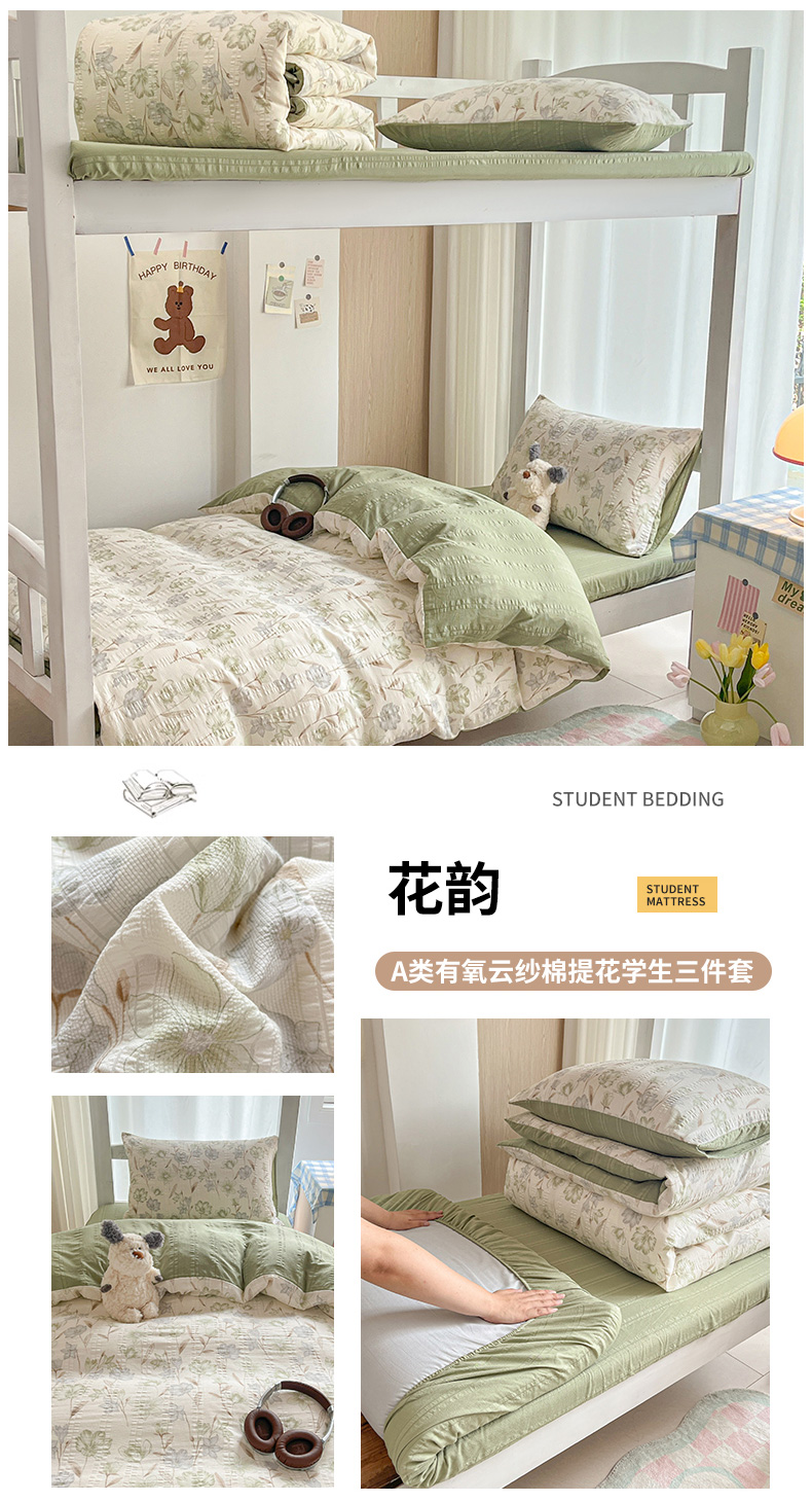当前位置: 91家纺网 > 商品网购 > 床品套件 > 四件套 > 其它四件套 > 安哆啦家纺 2024新款A类有氧泡泡纱云纱棉学生季宿舍床三四件套 花韵