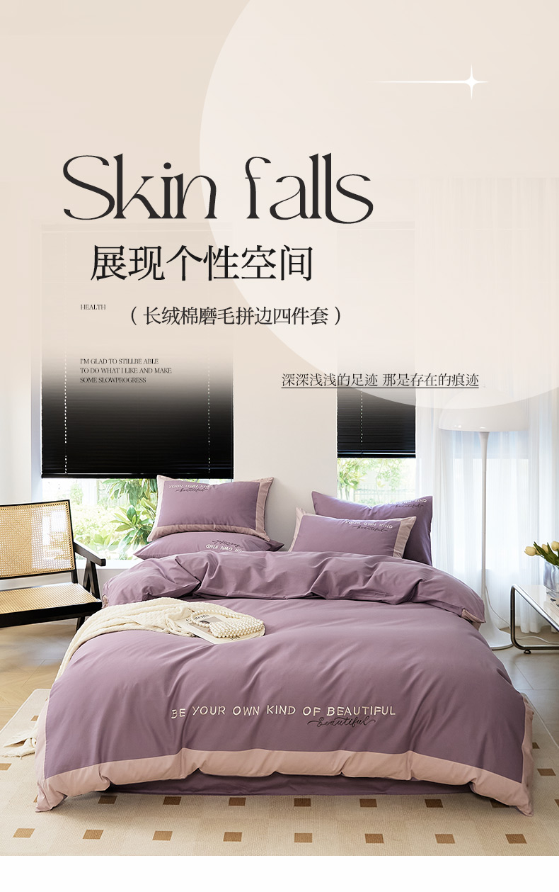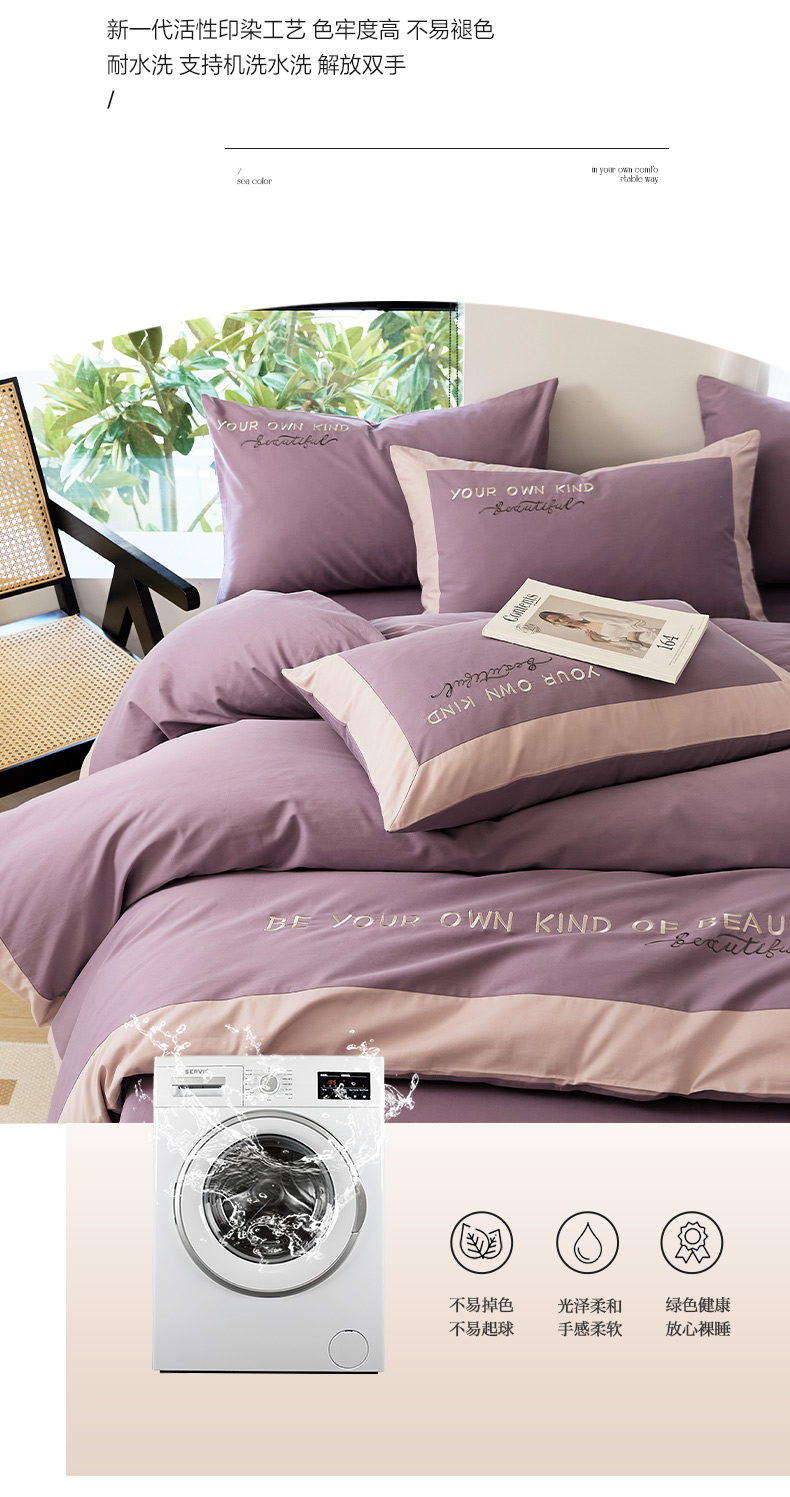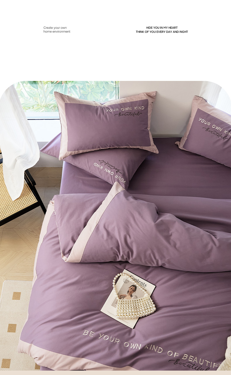 当前位置: 91家纺网 > 商品网购 > 床品套件 > 四件套 > 全棉普通四件套 > EH家居 2024新款全棉磨毛四件套-知己系列 知己-紫