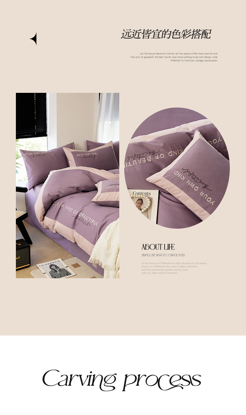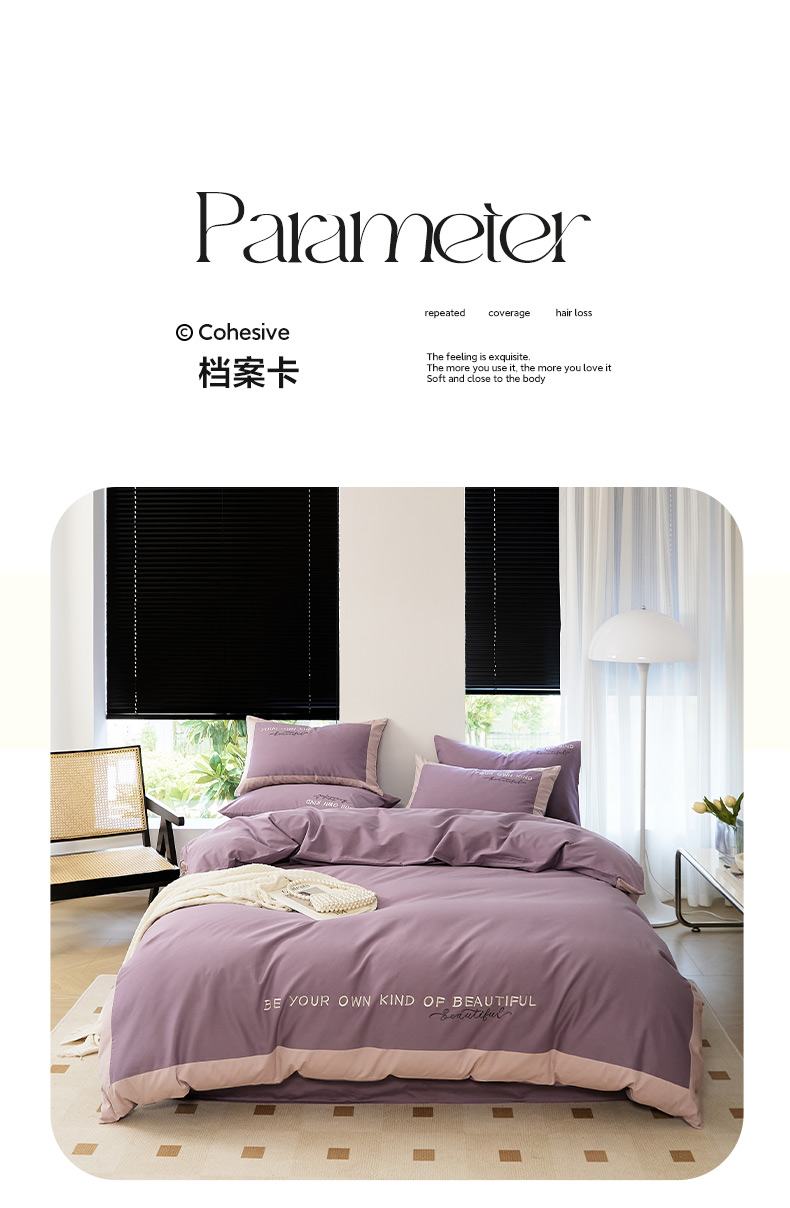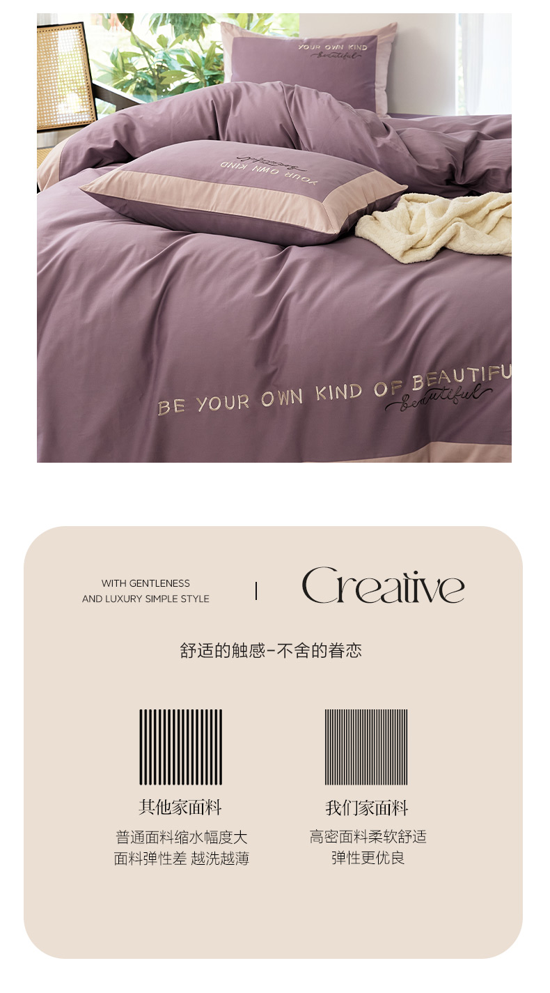当前位置: 91家纺网 > 商品网购 > 床品套件 > 四件套 > 全棉普通四件套 > EH家居 2024新款全棉磨毛四件套-知己系列 知己-紫