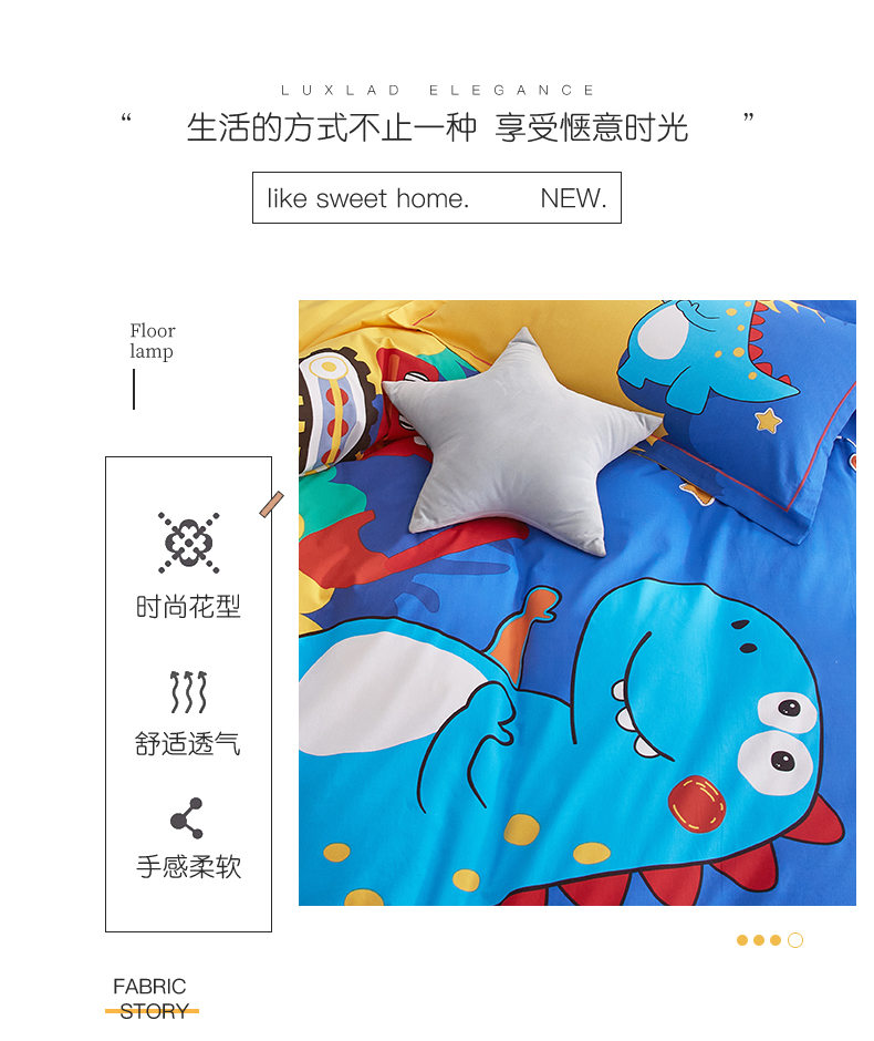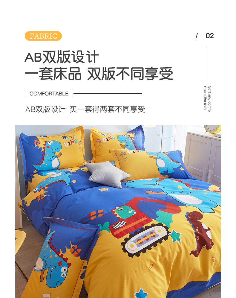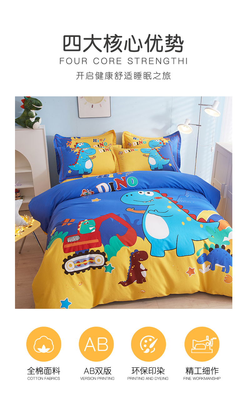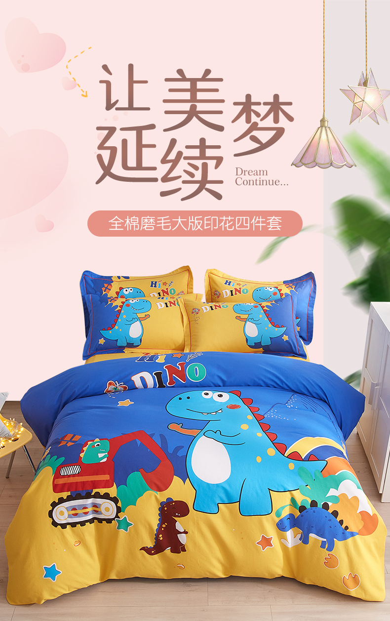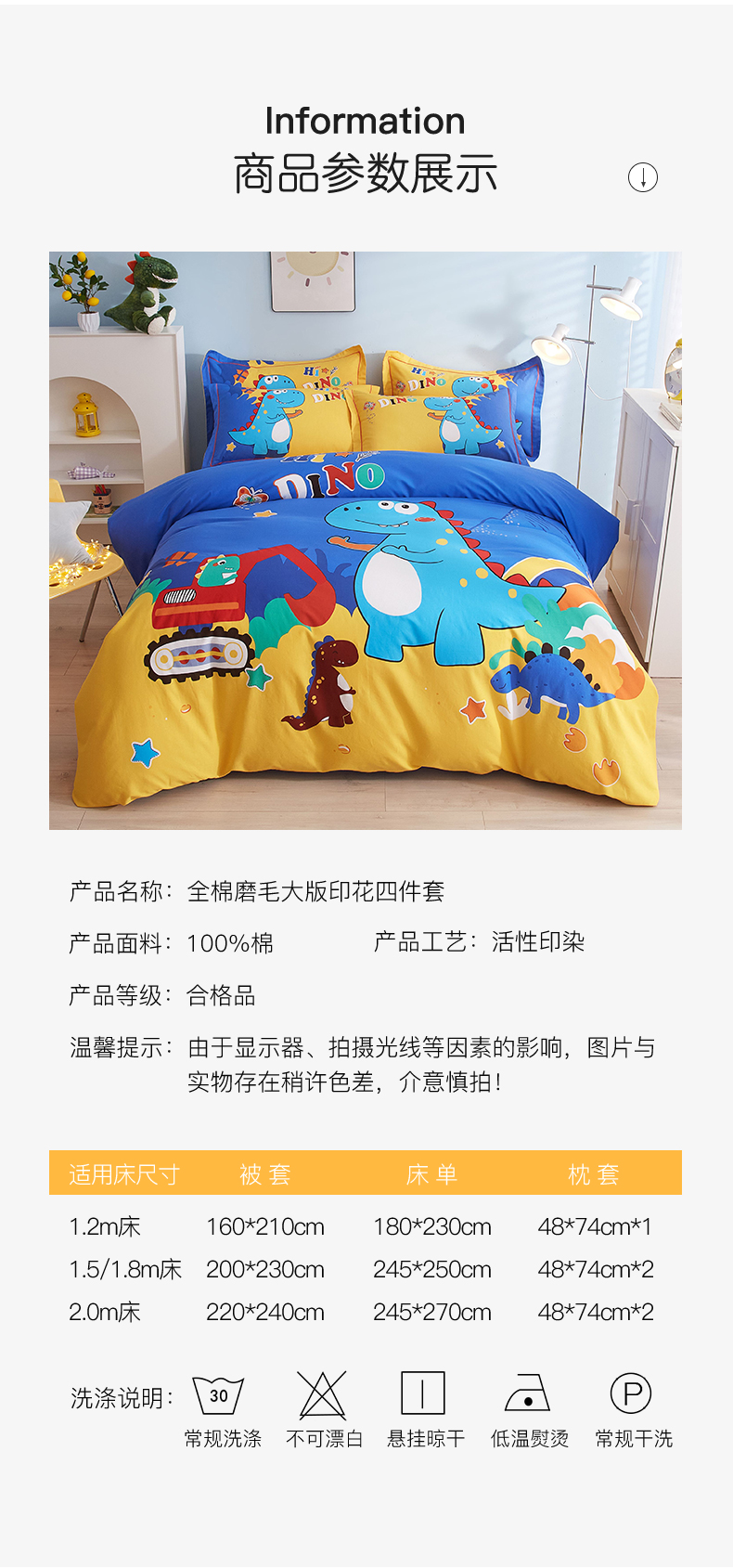 商品名称:格里芬家纺 2025新款全棉加厚大版磨毛纯棉磨毛四件套 恐龙游记