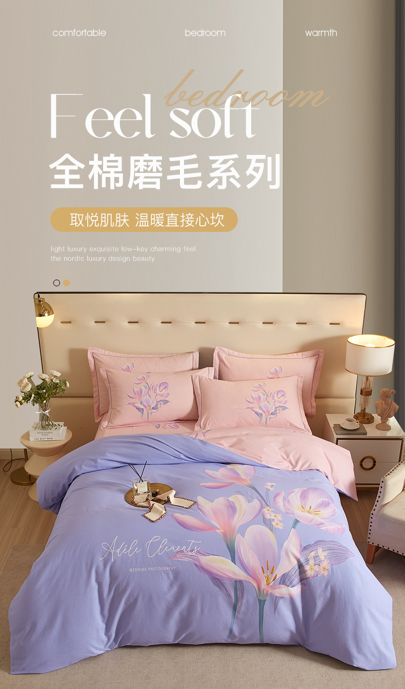 商品名称:格里芬家纺 2025新款全棉加厚大版磨毛纯棉磨毛四件套 青莲居