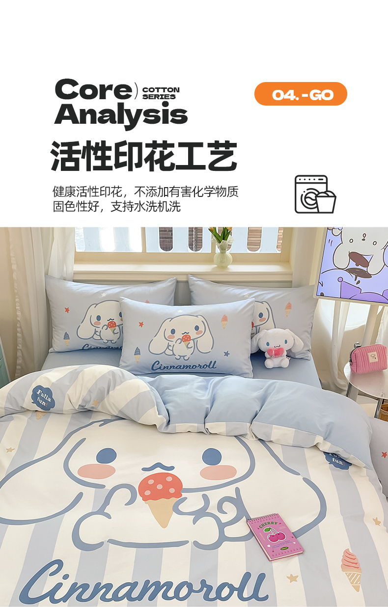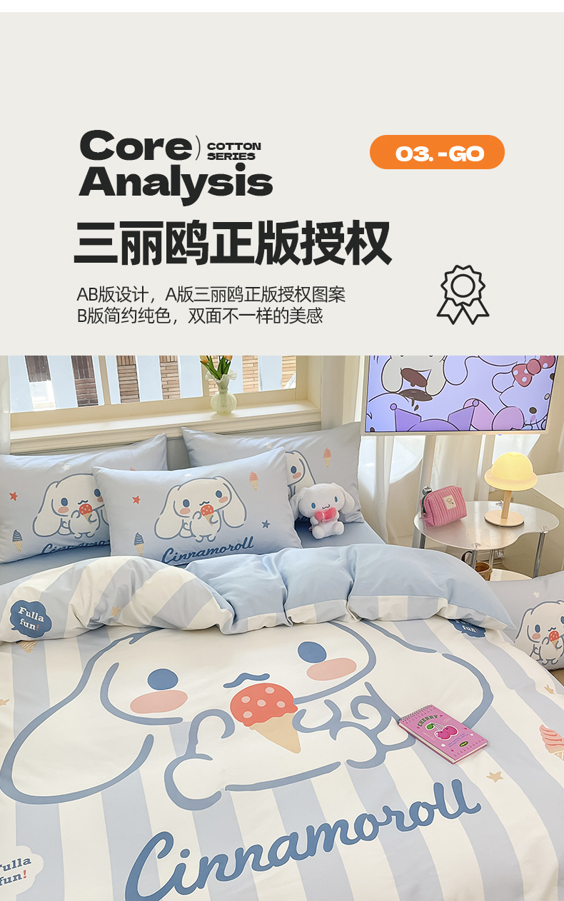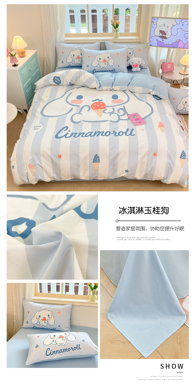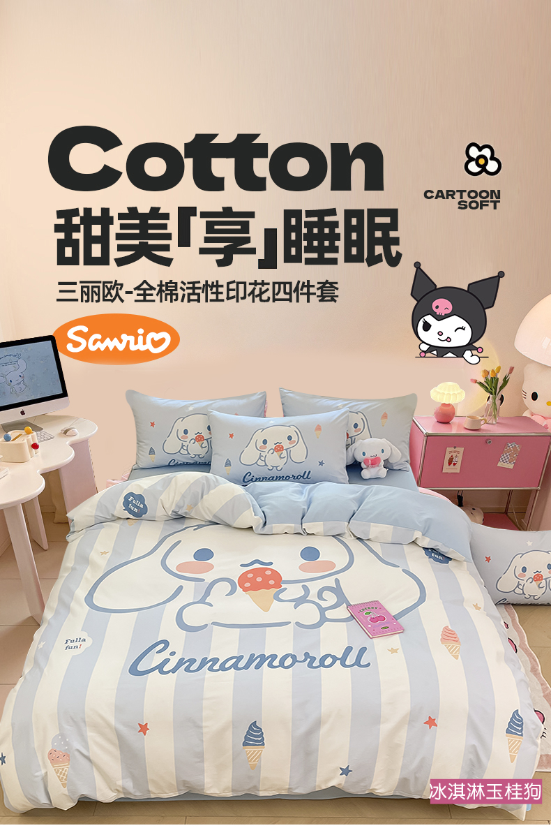 当前位置: 91家纺网 > 商品网购 > 床品套件 > 四件套 > 全棉普通四件套 > 桃子家居 2024纯棉大版三丽鸥卡通平网印花系列四件套 棉大版-D冰淇淋玉桂狗