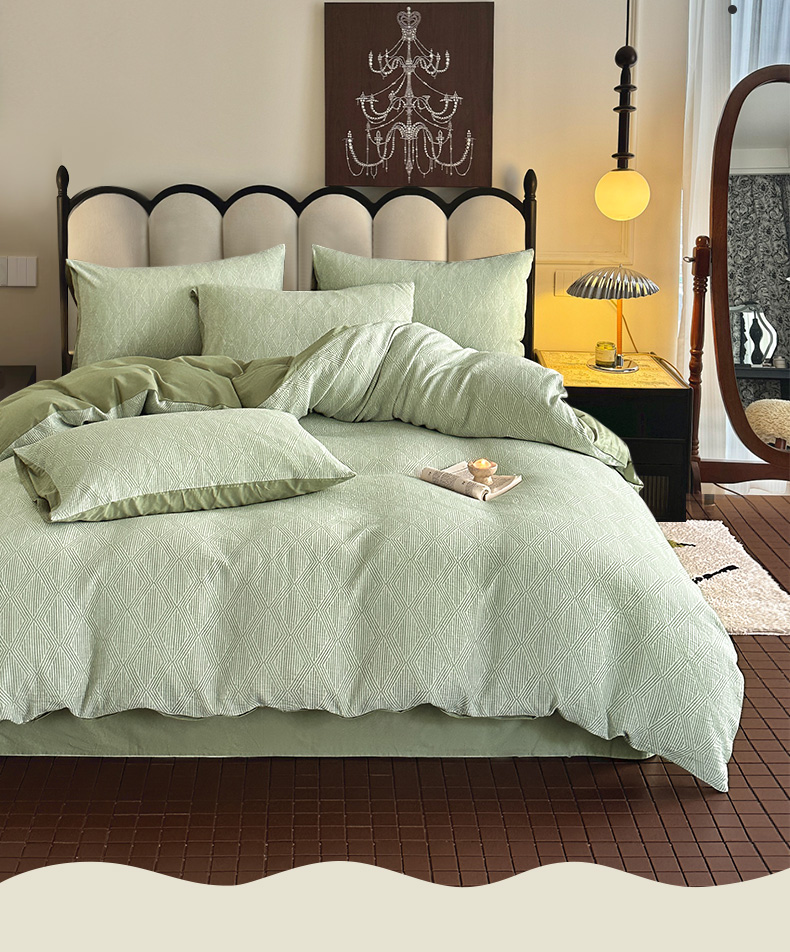 当前位置: 91家纺网 > 商品网购 > 床品套件 > 四件套 > 全棉普通四件套 > ab家纺 2024新款A类全棉三层纱提花四件套--凡尔赛 凡尔赛 绿色