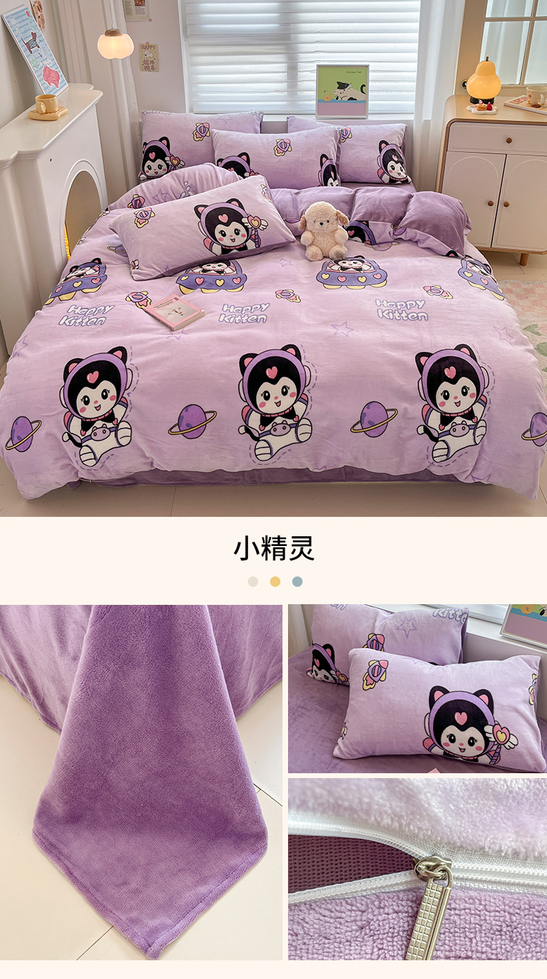 当前位置: 91家纺网 > 商品网购 > 床品套件 > 四件套 > 牛奶绒四件套 > 孩子王家纺 2025新款小清新冬季加厚牛奶绒水晶绒珊瑚绒印花系列四件套 小精灵