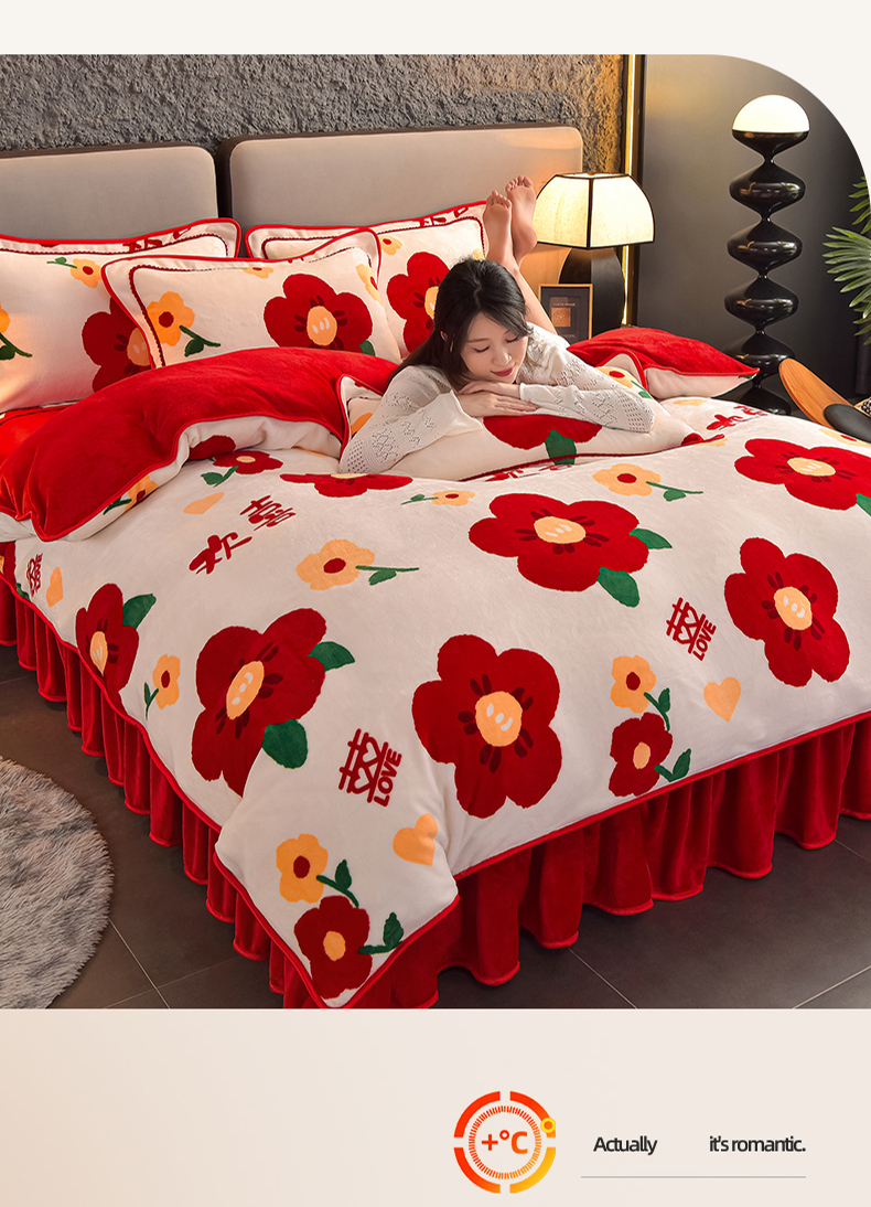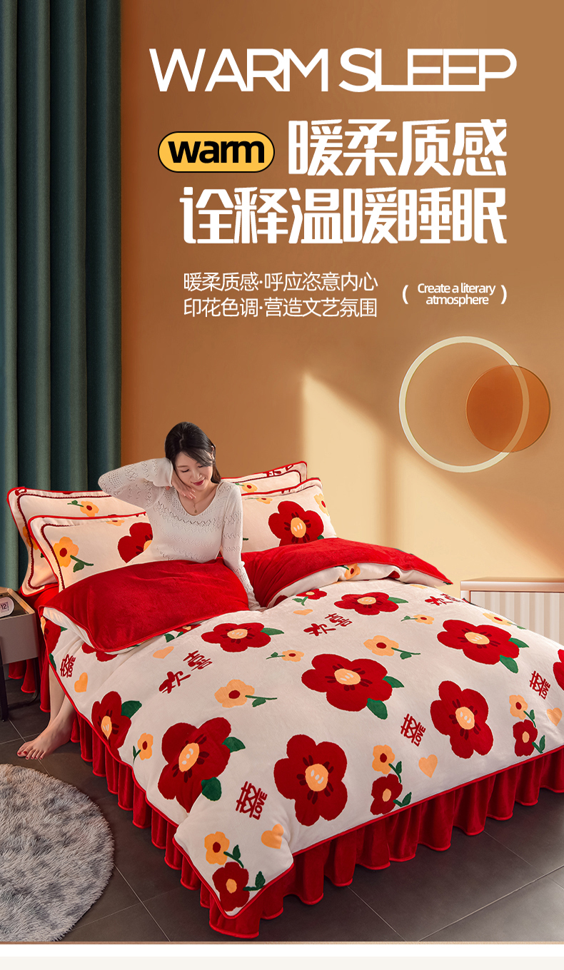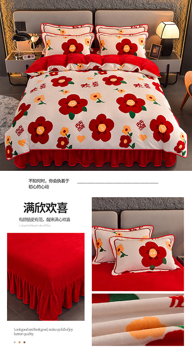 佳品居 2025新款7斤牛奶绒四件套 满欣欢喜