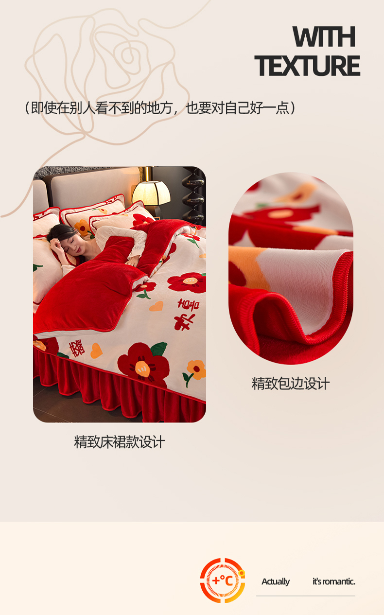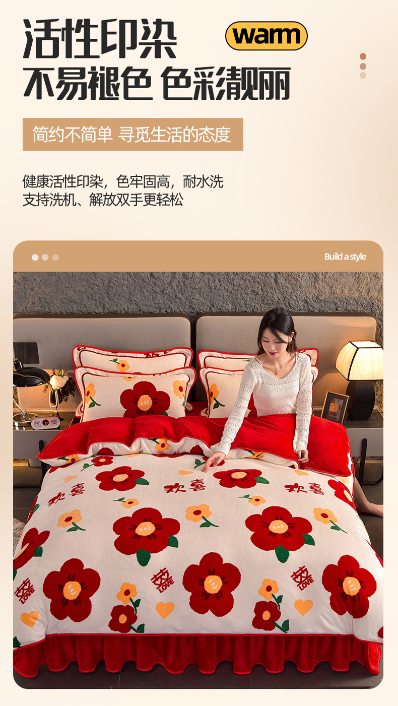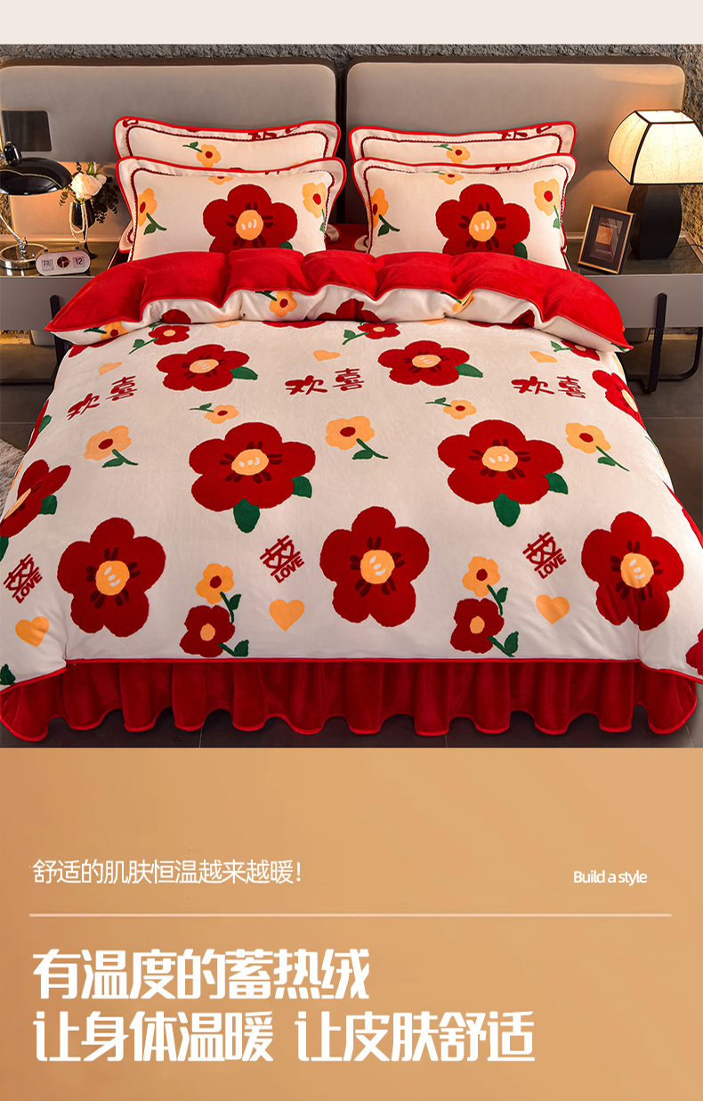 佳品居 2025新款7斤牛奶绒四件套 满欣欢喜