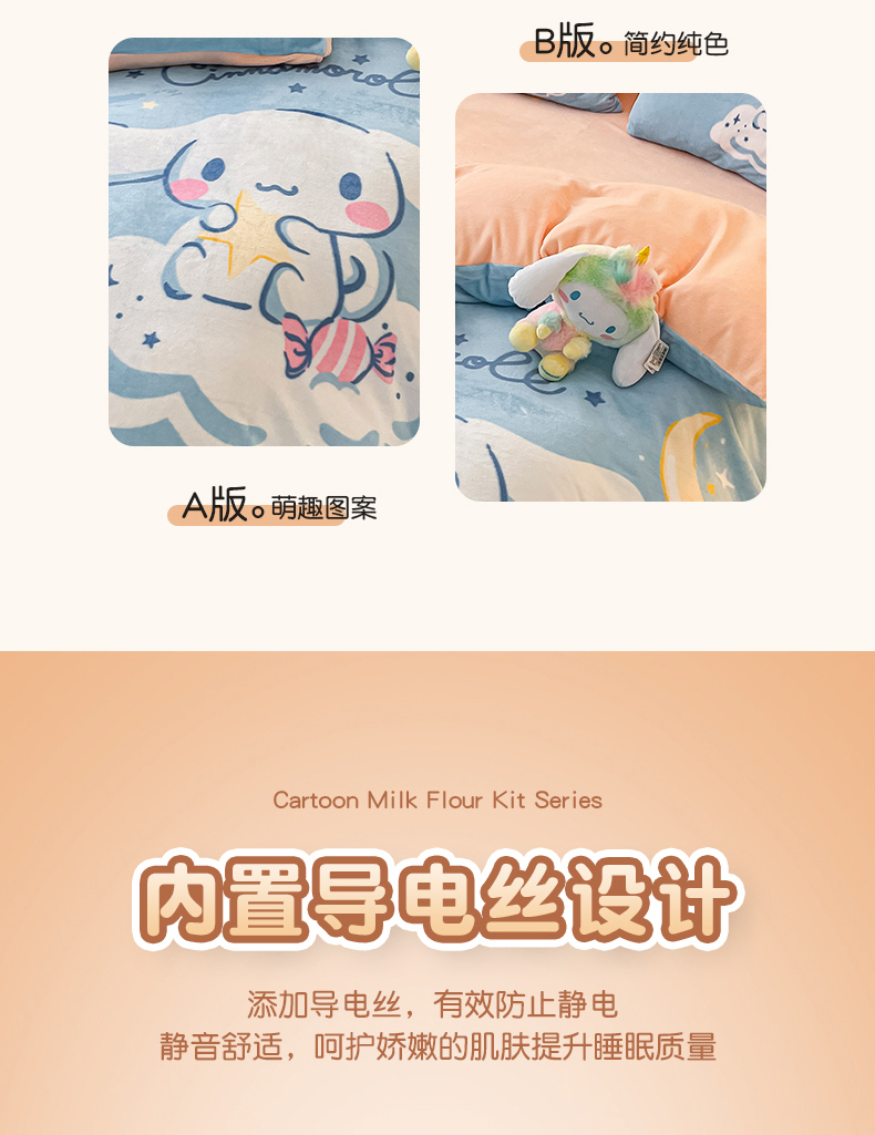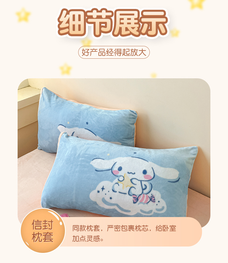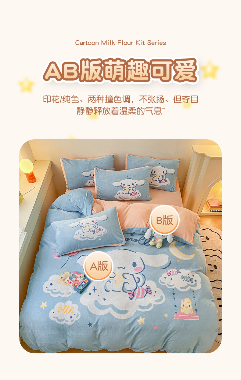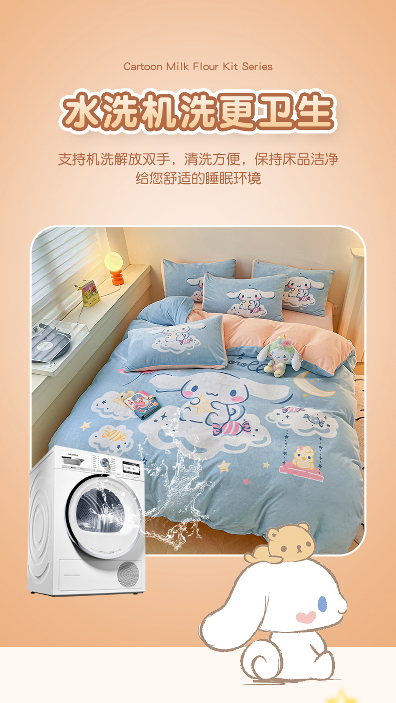 当前位置: 91家纺网 > 商品网购 > 床品套件 > 四件套 > 牛奶绒四件套 > 孩子王家纺 2024新款正版授权三丽鸥库洛米大版卡通学生宿舍双面加厚牛奶绒系列四件套--提供买家秀 云朵玉桂狗