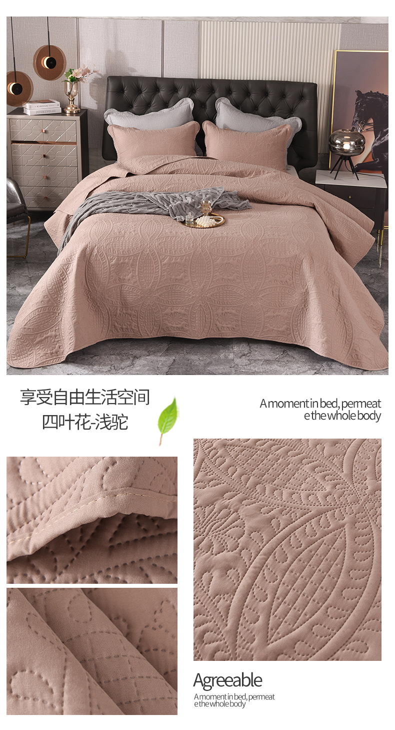 商品名称:恩和家纺 2024新款水洗棉床盖压花加厚四件套-四叶花 四叶花-浅驼