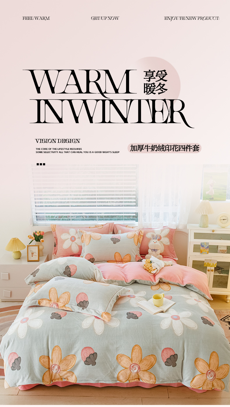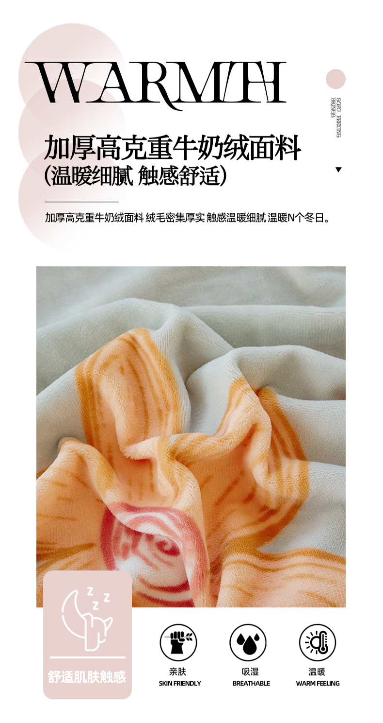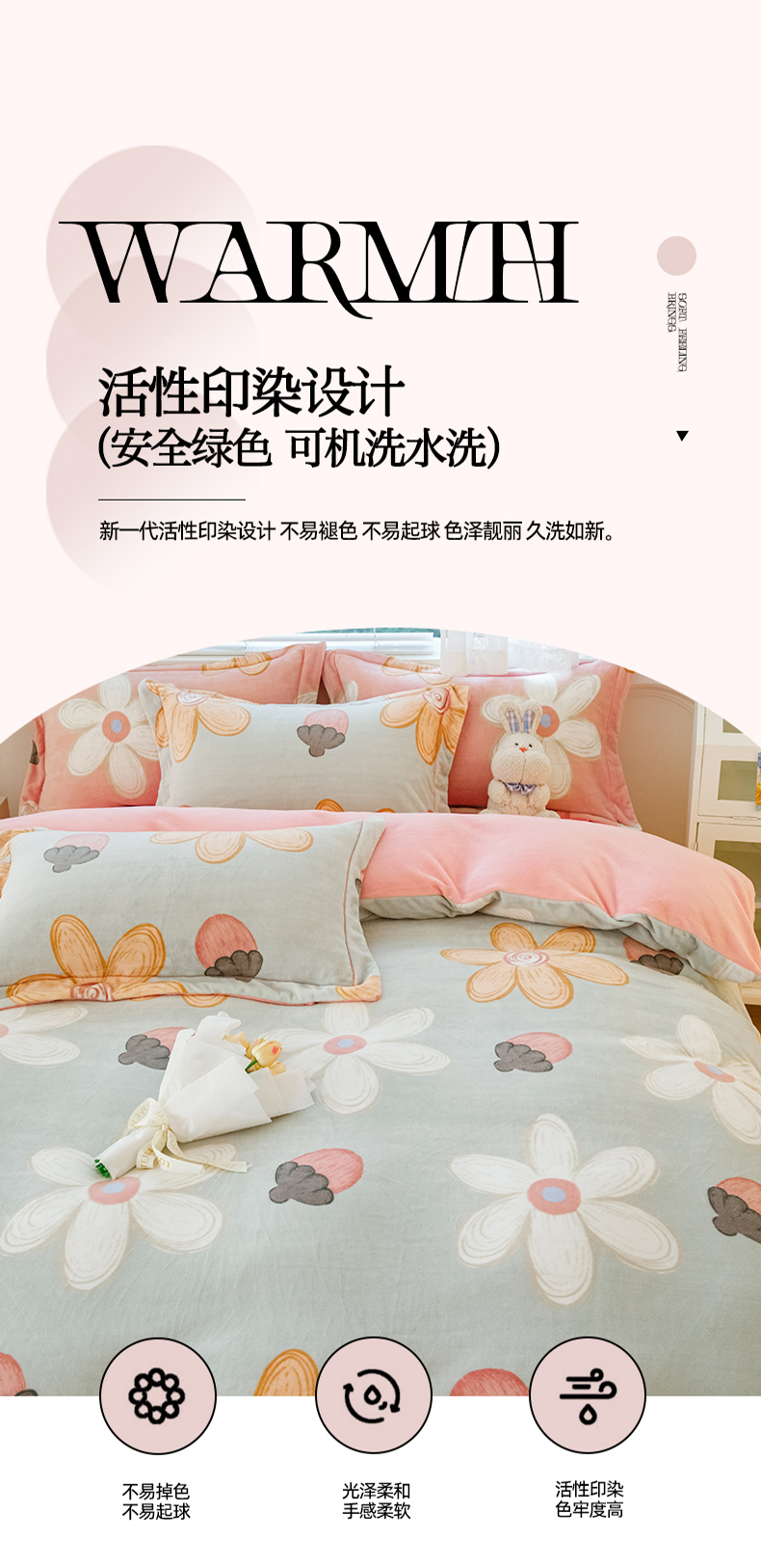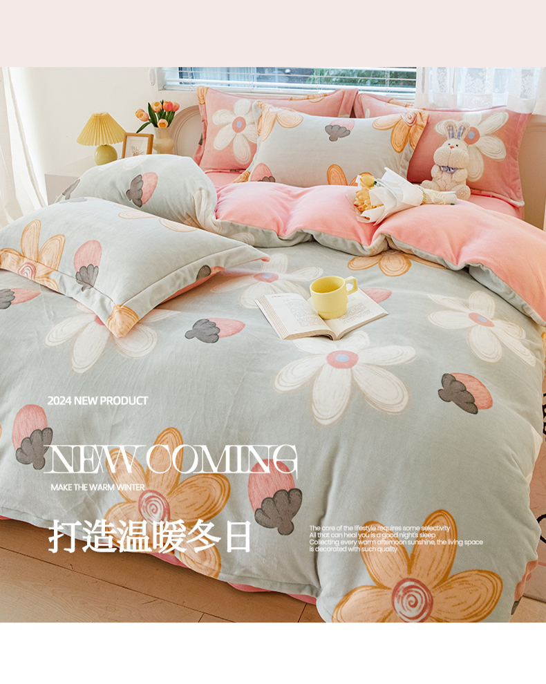 商品名称:锦罗绣 2024新款加厚牛奶绒四件套印花四件套单被套 蓓思