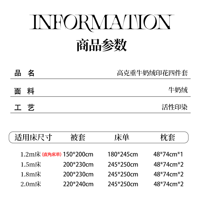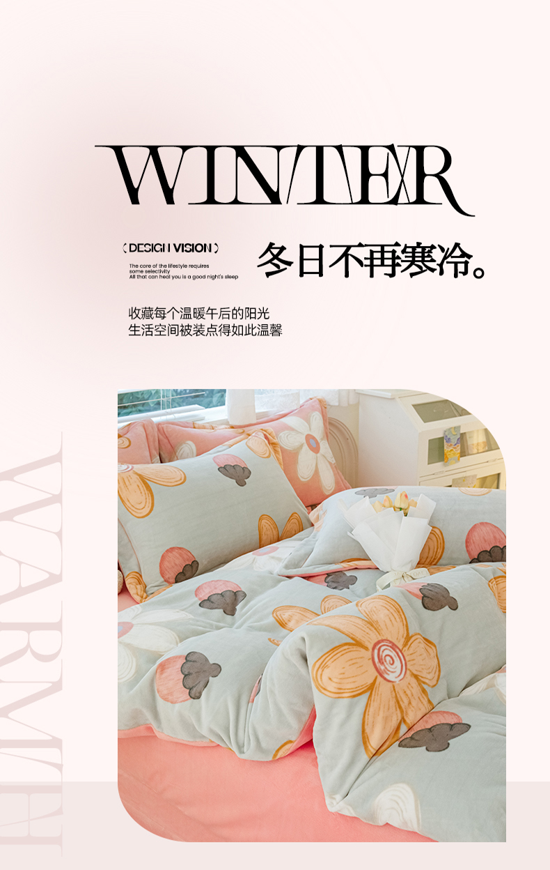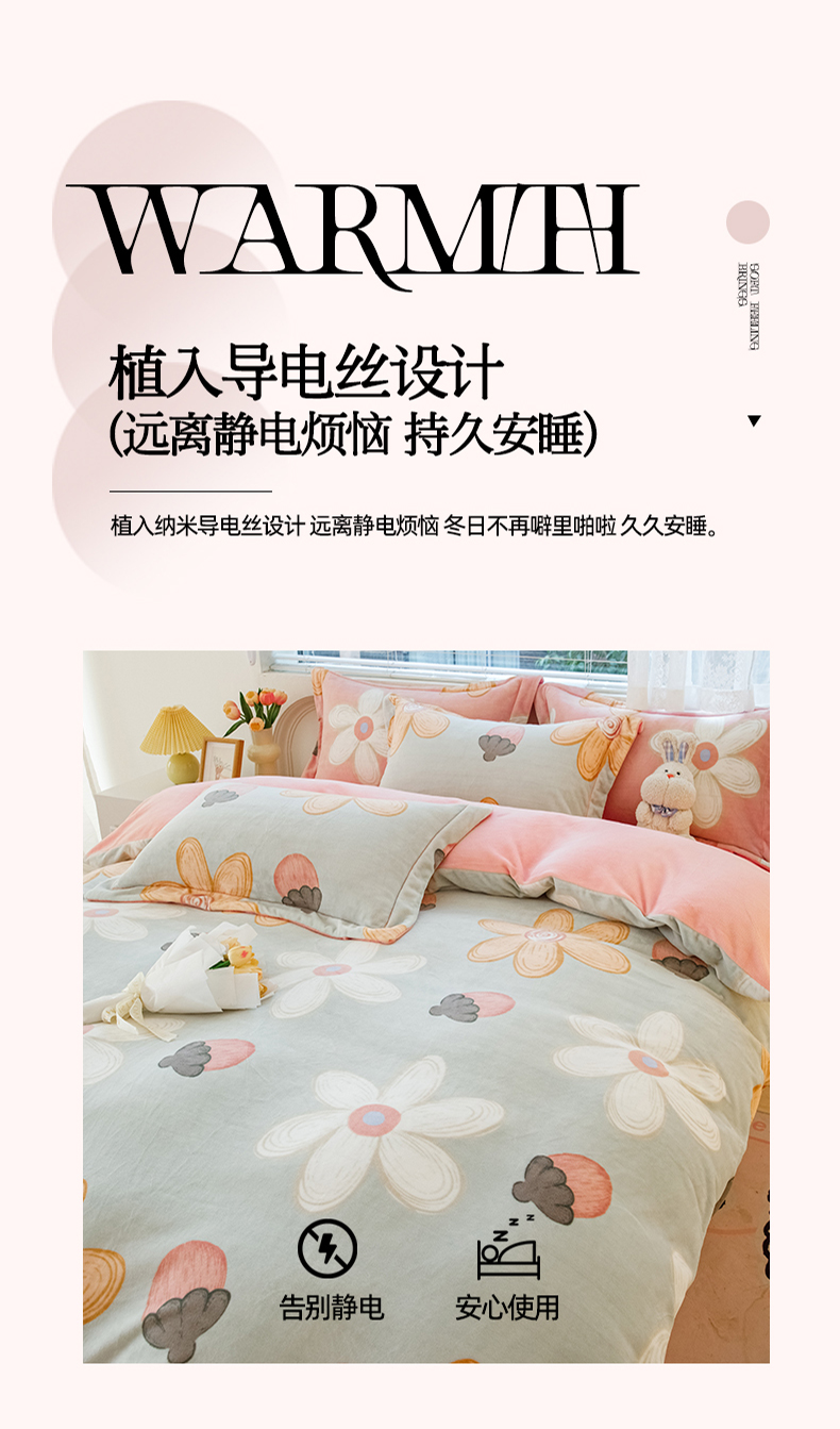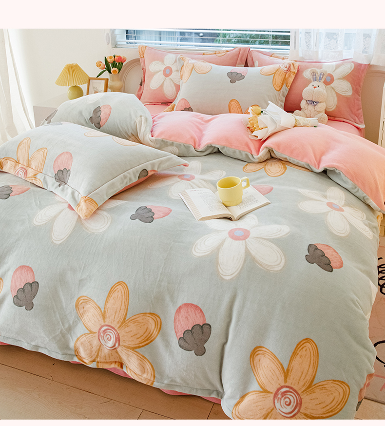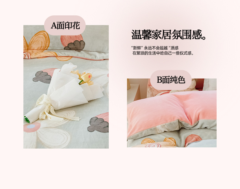 商品名称:锦罗绣 2024新款加厚牛奶绒四件套印花四件套单被套 蓓思