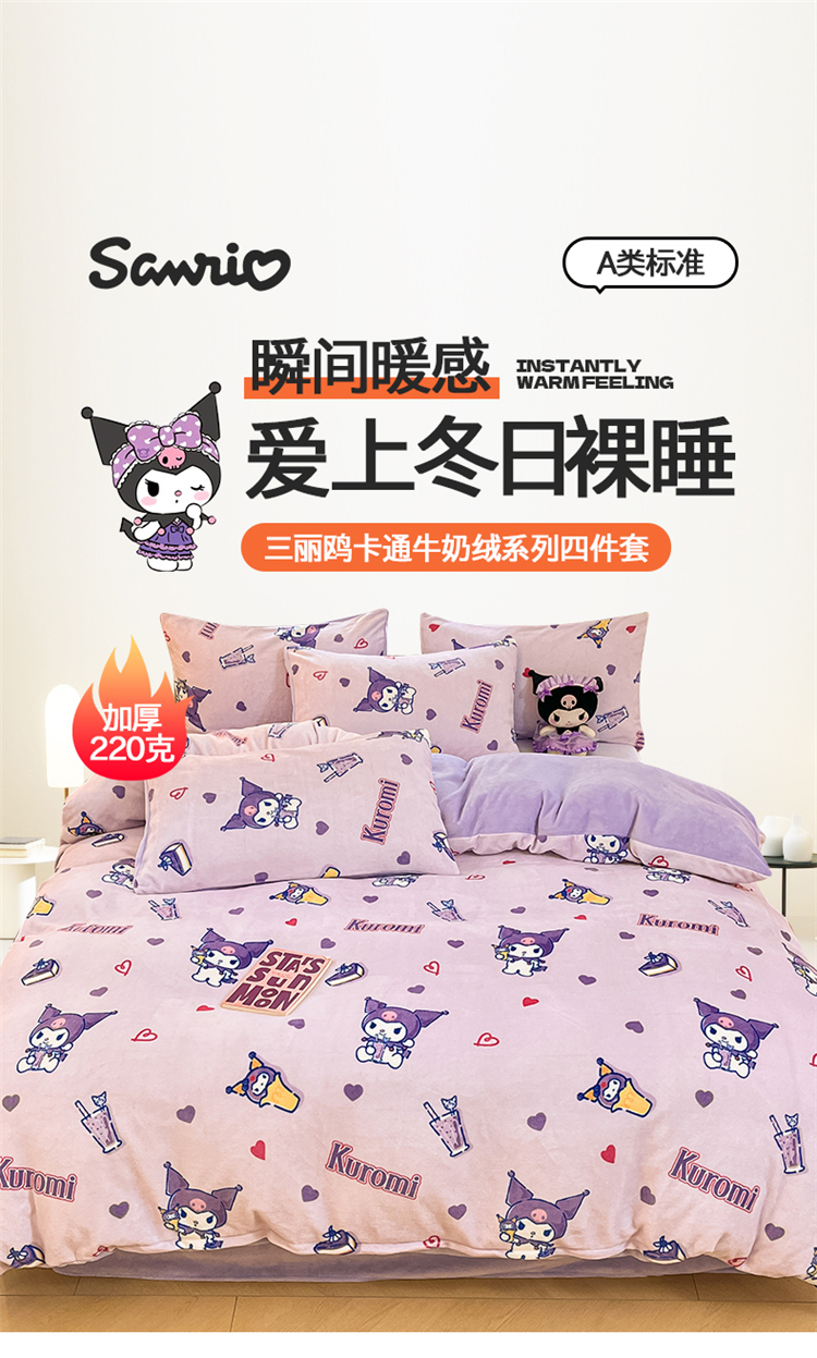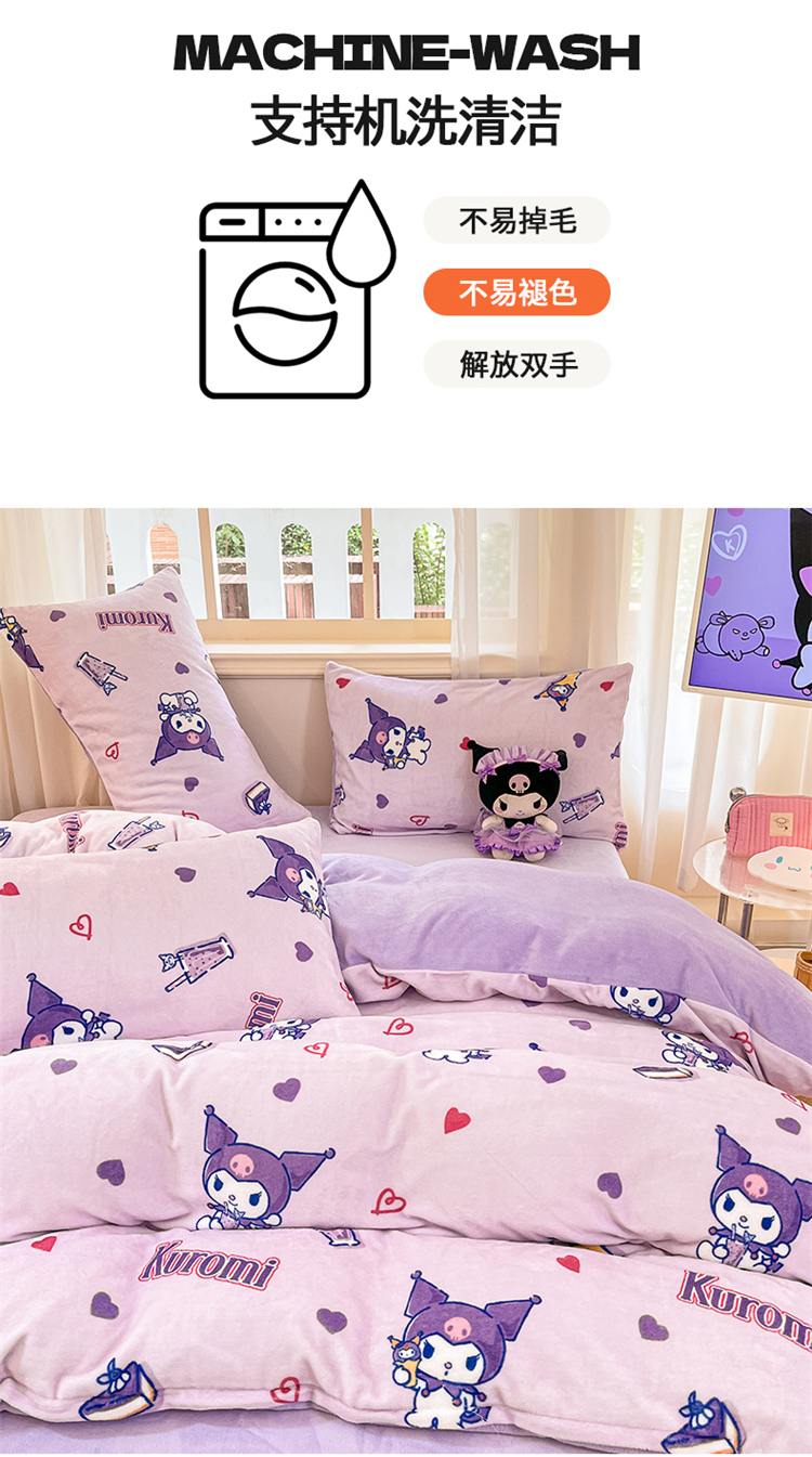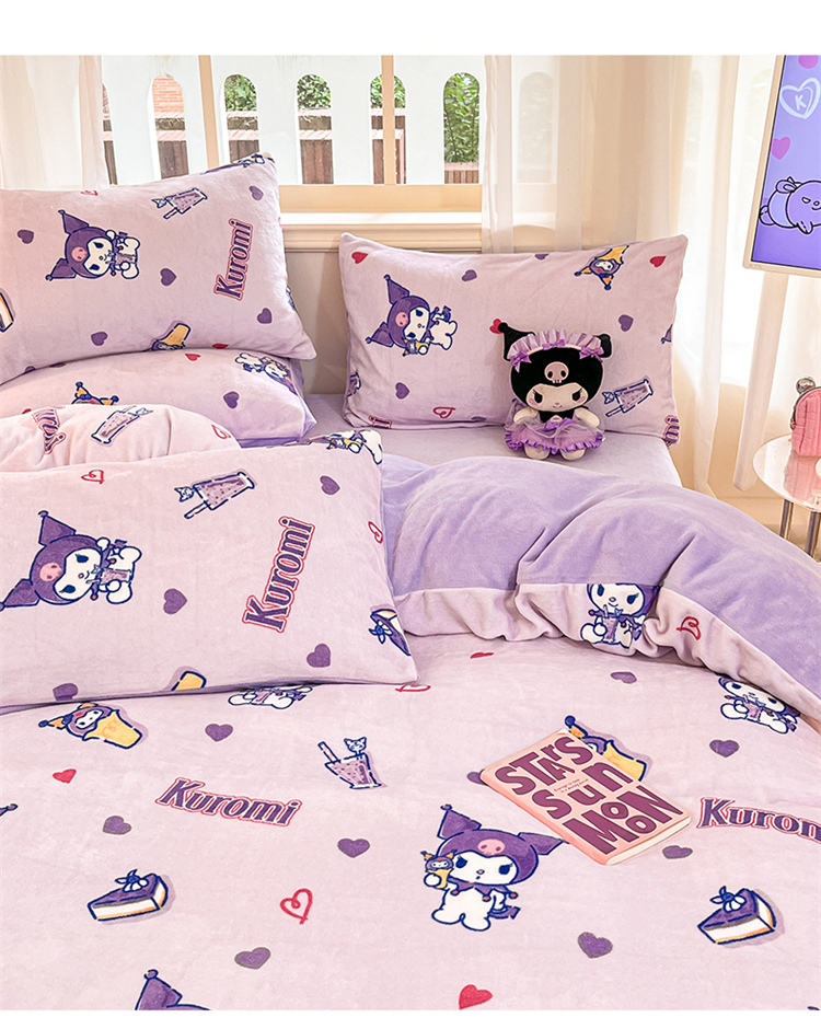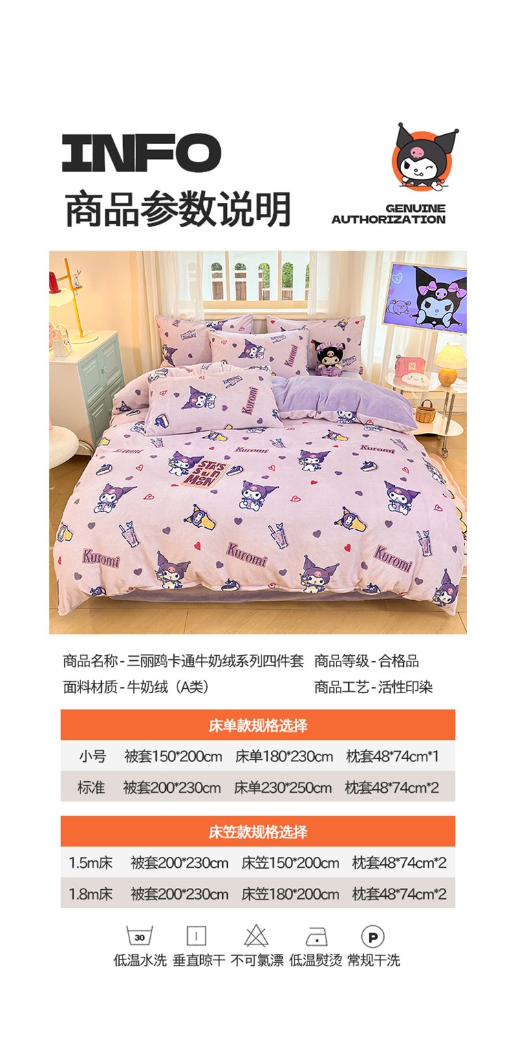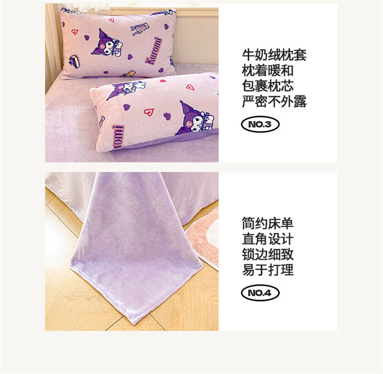 当前位置: 91家纺网 > 商品网购 > 床品套件 > 四件套 > 牛奶绒四件套 > 2024新品正版三丽鸥授权卡通加厚高克重牛奶绒系列四件套 绒三丽鸥-紫心库洛米