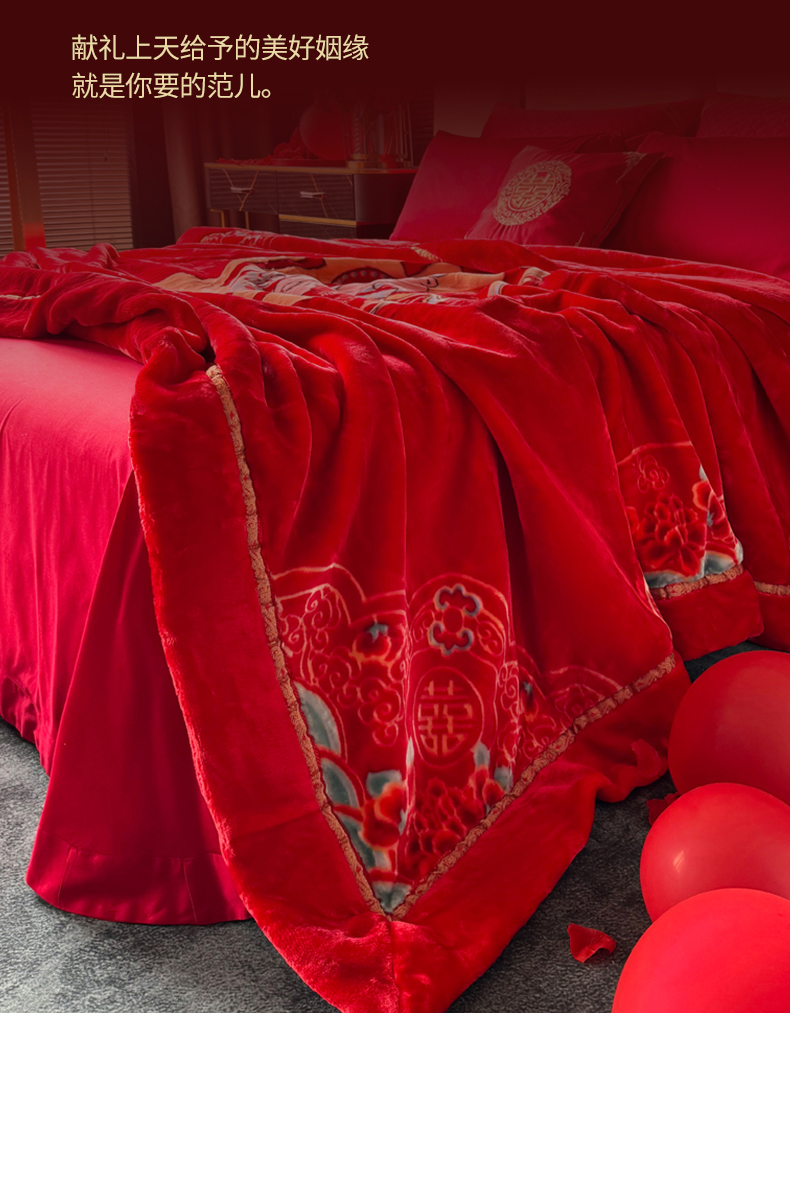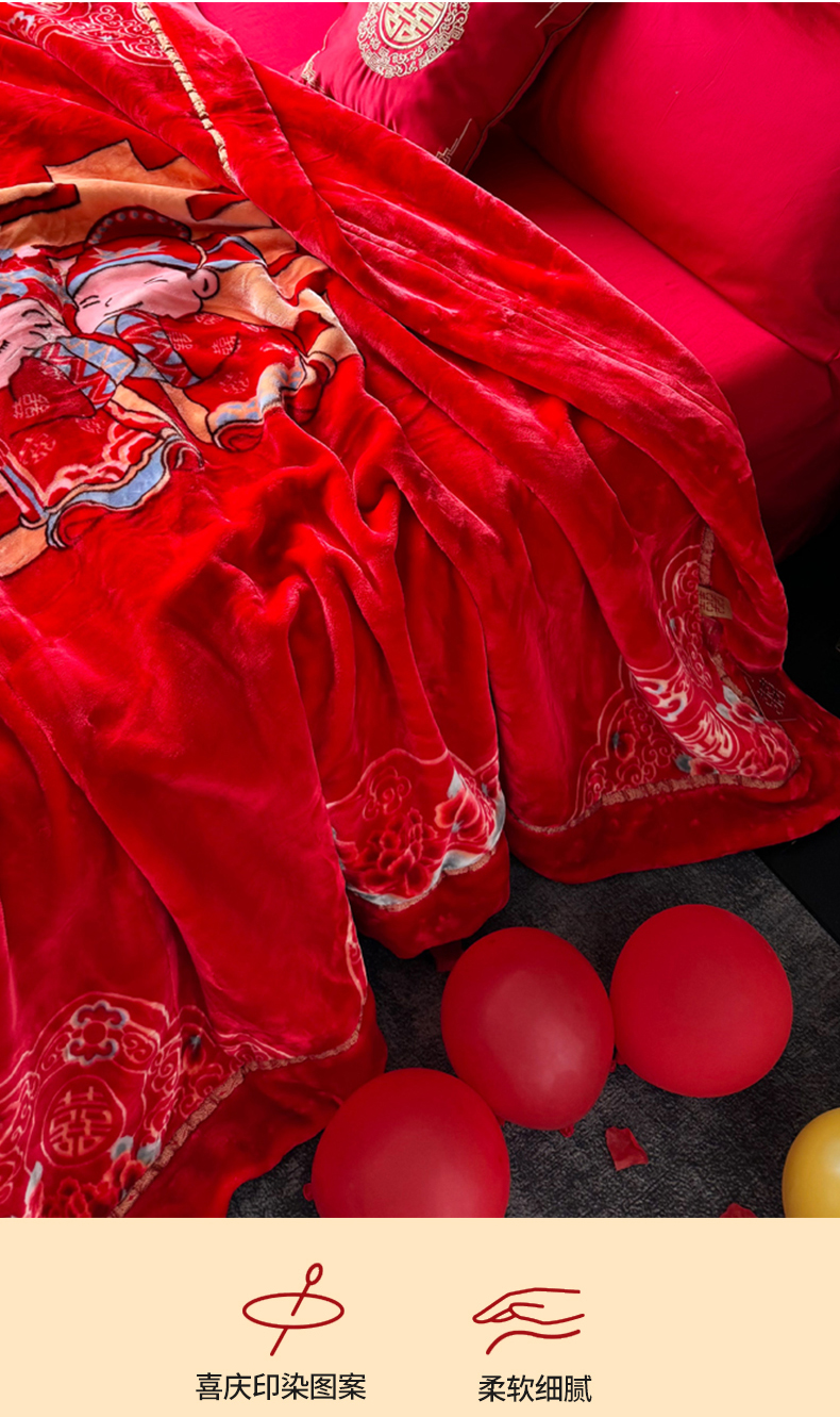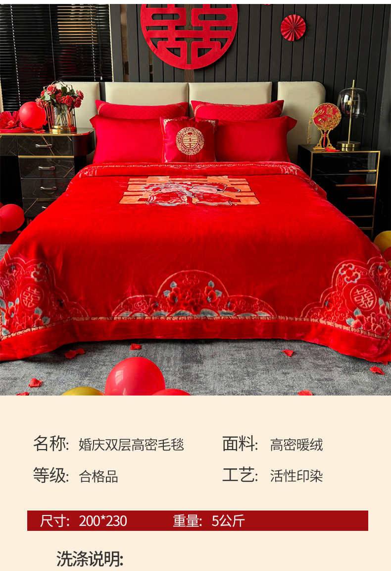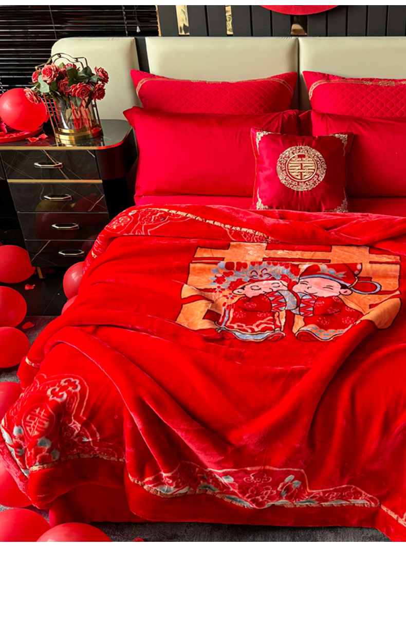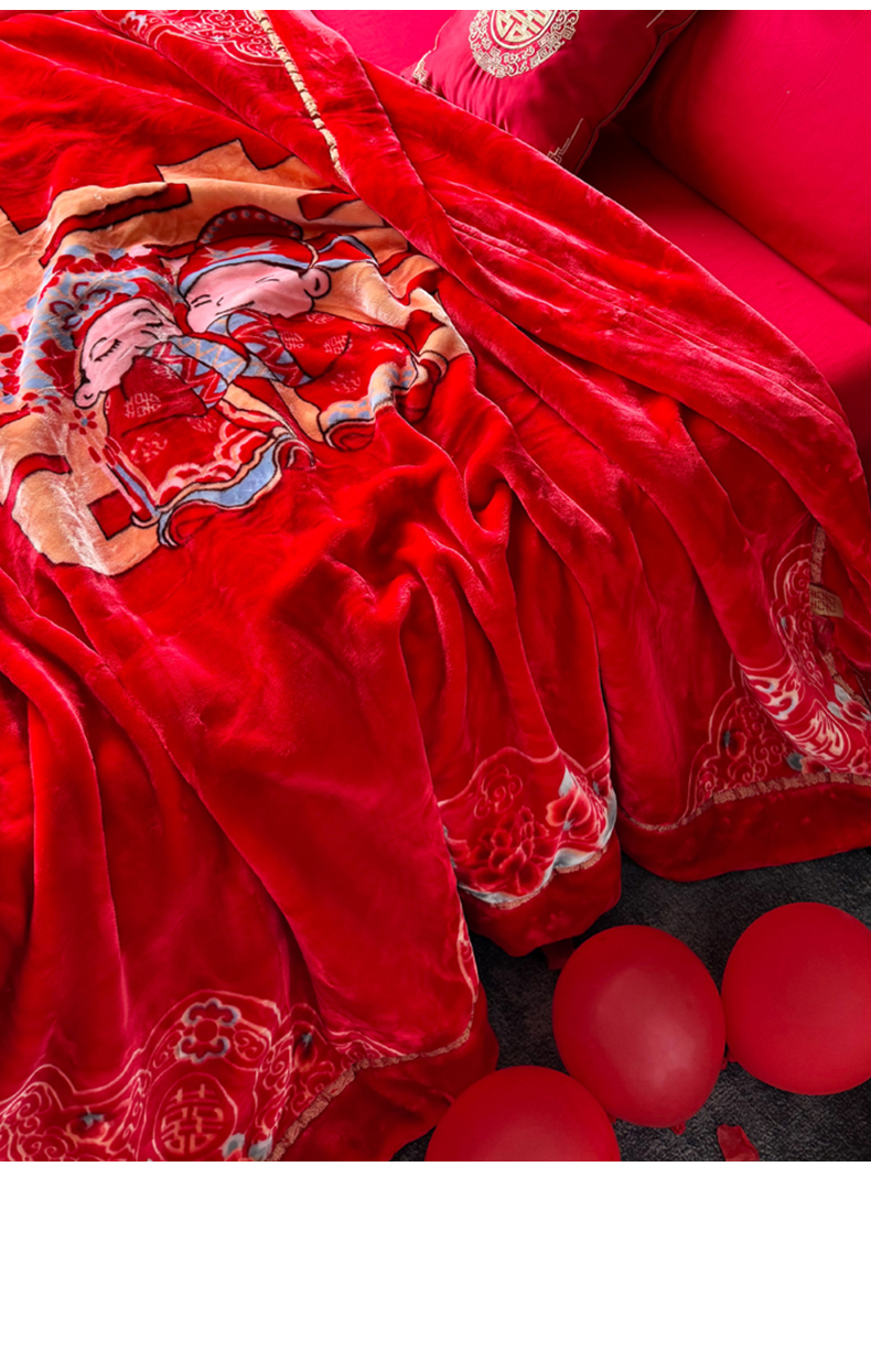 商品名称:2024新款婚庆双层高密云毛毯毯子 喜从天降