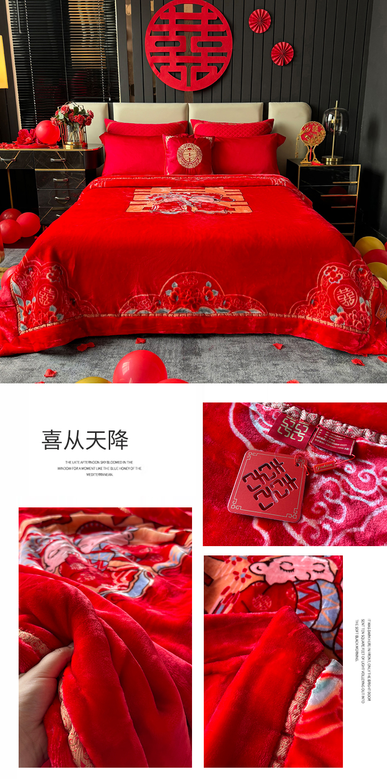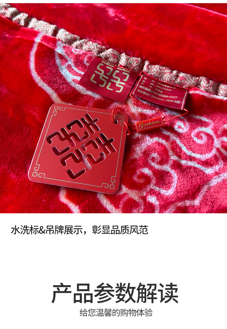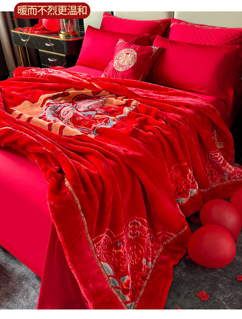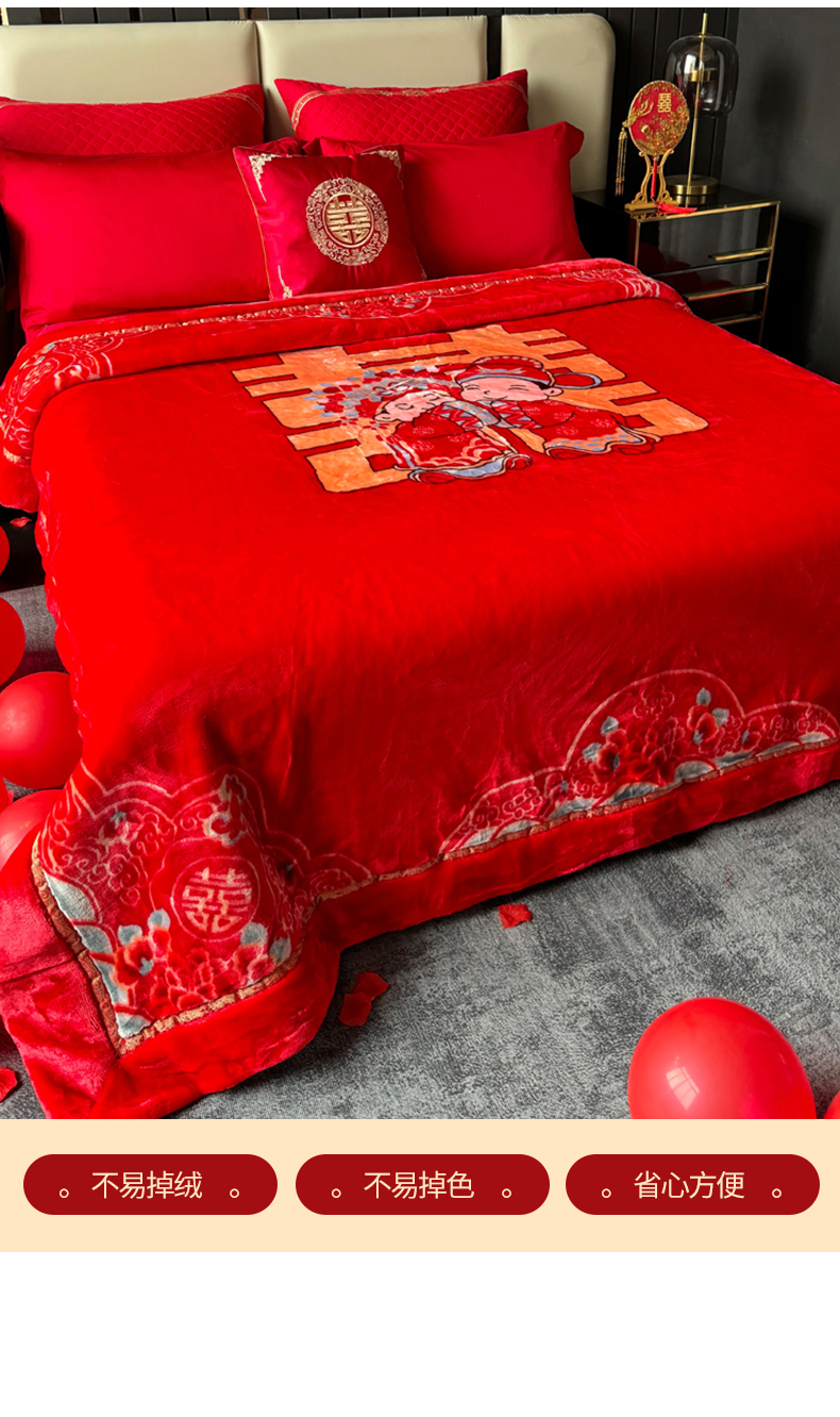 商品名称:2024新款婚庆双层高密云毛毯毯子 喜从天降