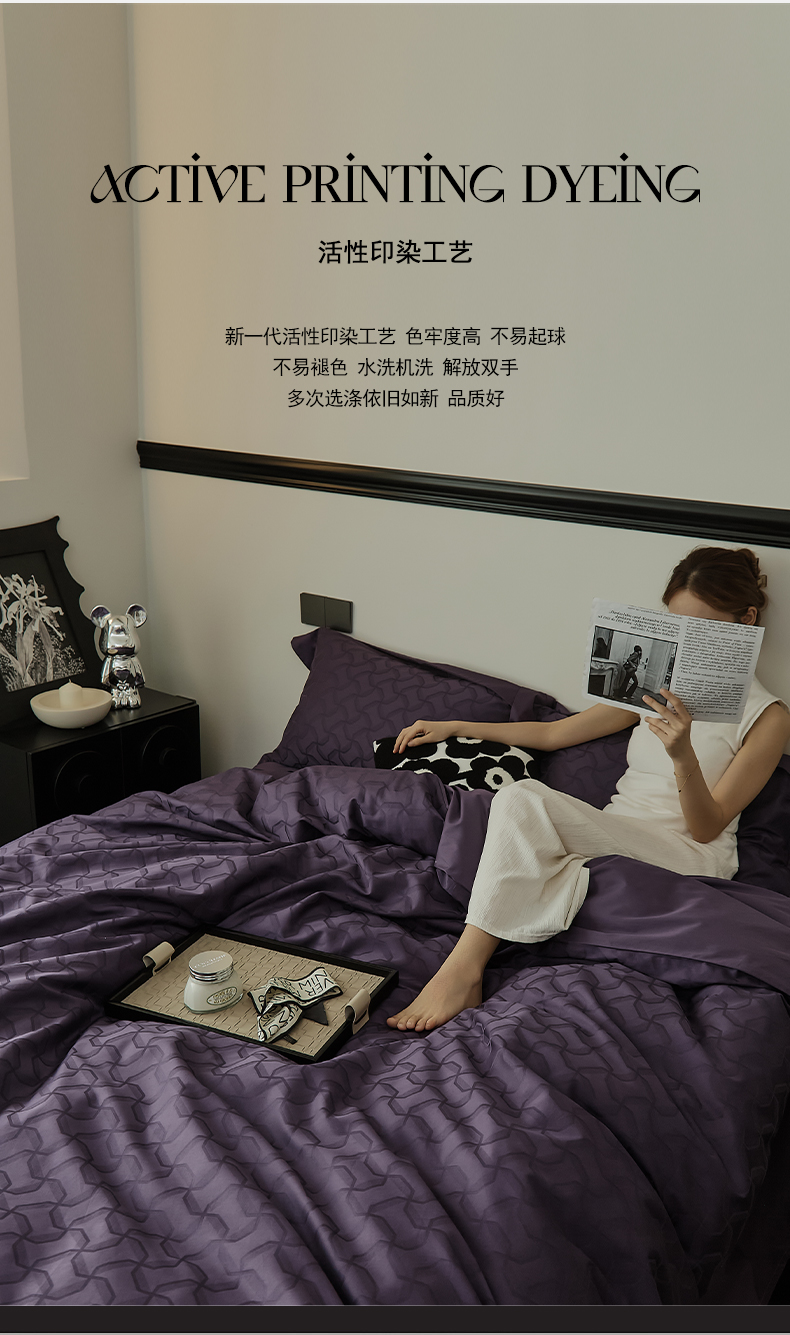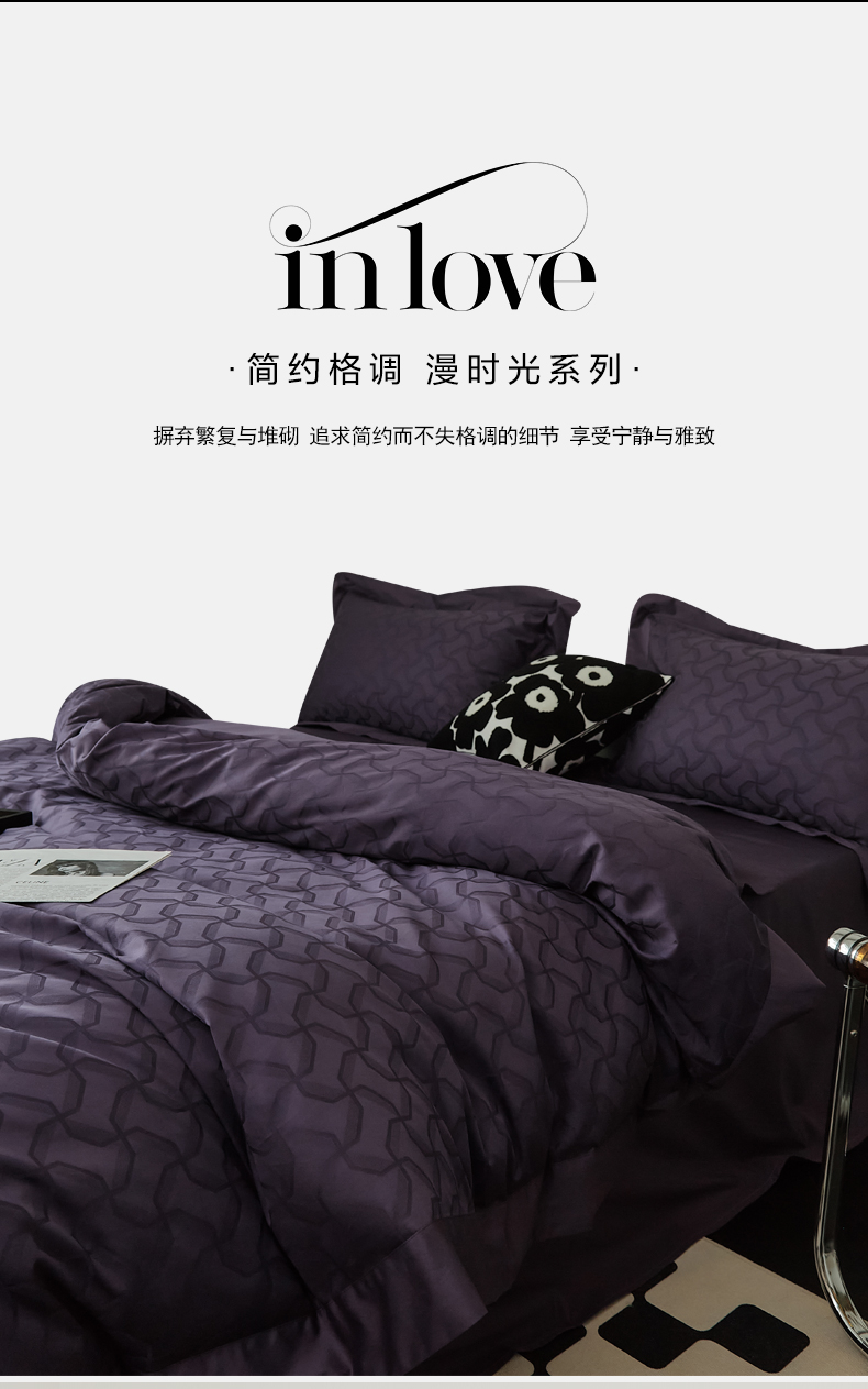 当前位置: 91家纺网 > 商品网购 > 床品套件 > 四件套 > 长绒棉四件套 > 2024新款60支长绒棉提花四件套--漫时光系列(常规版) 漫时光-黑葡紫