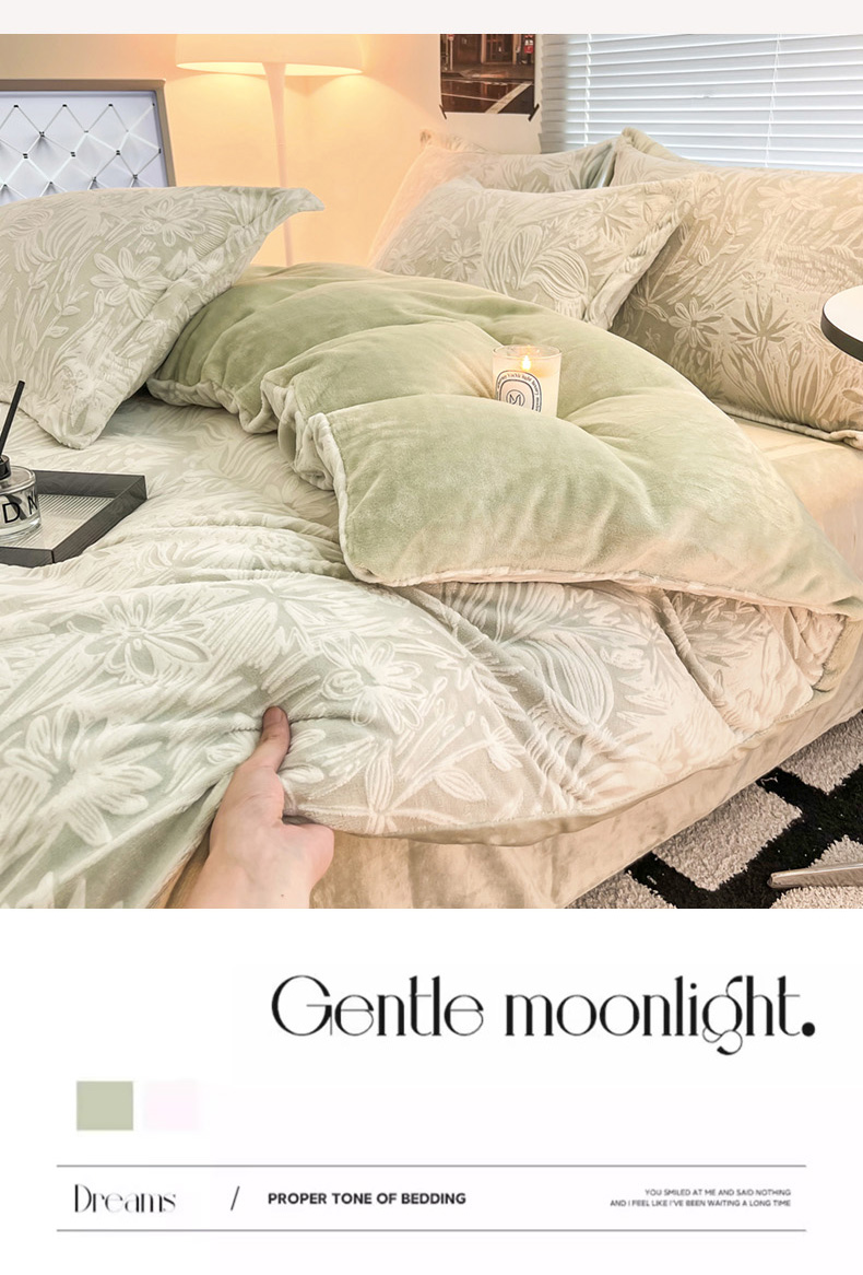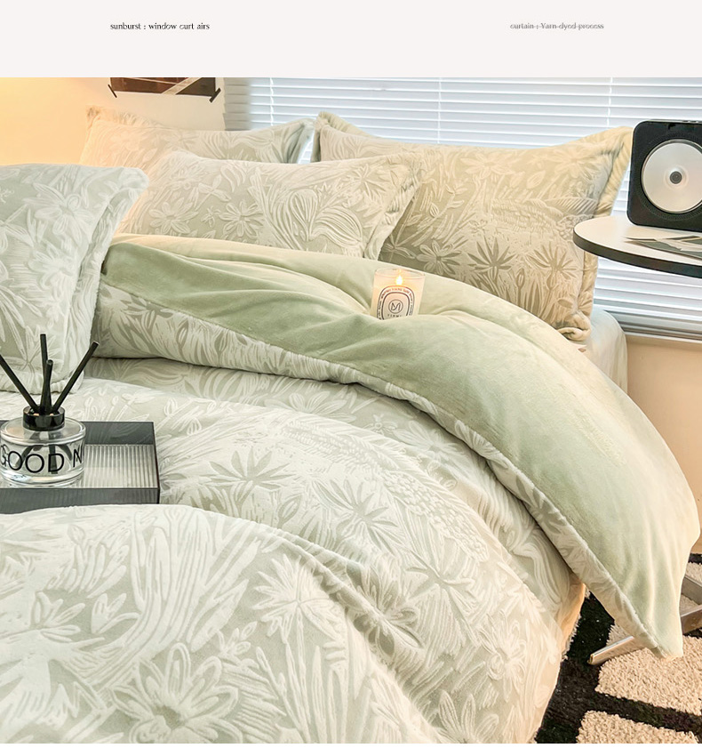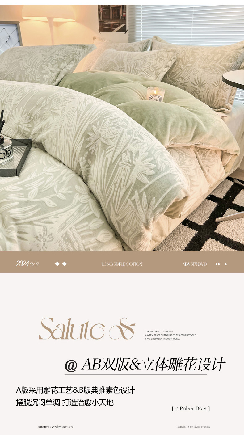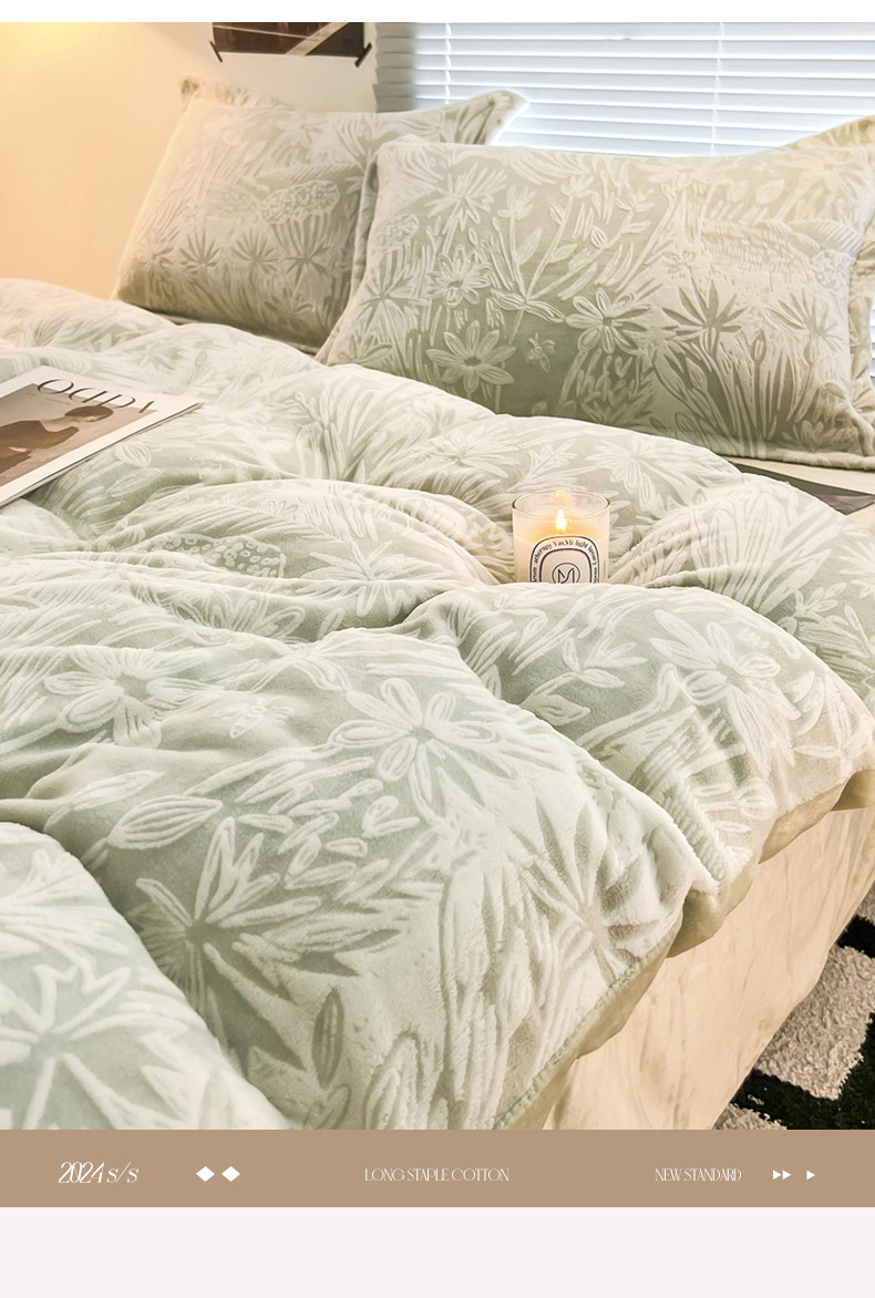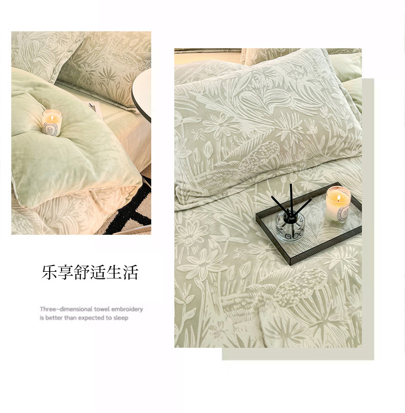 2024新款A类高克重立体浮雕牛奶绒加厚保暖系列-被套 花语绿灰