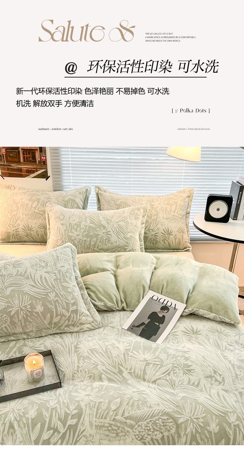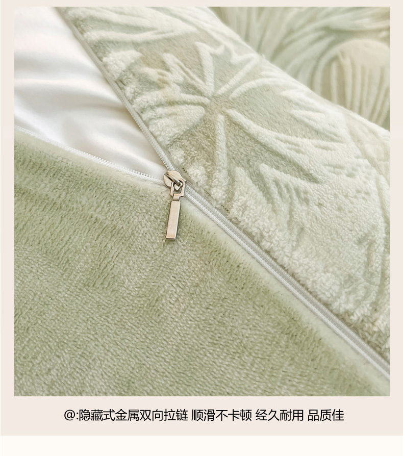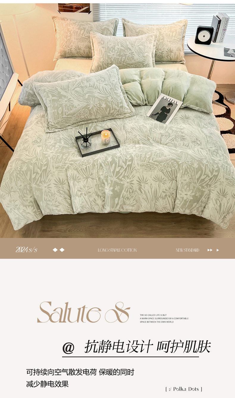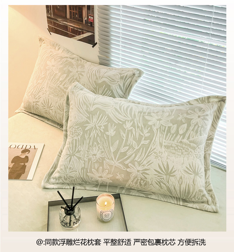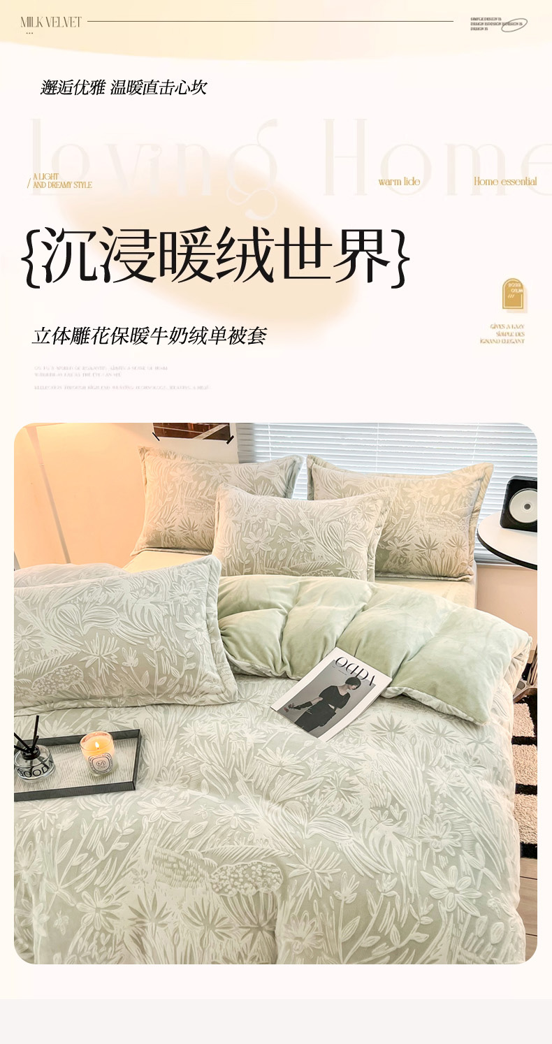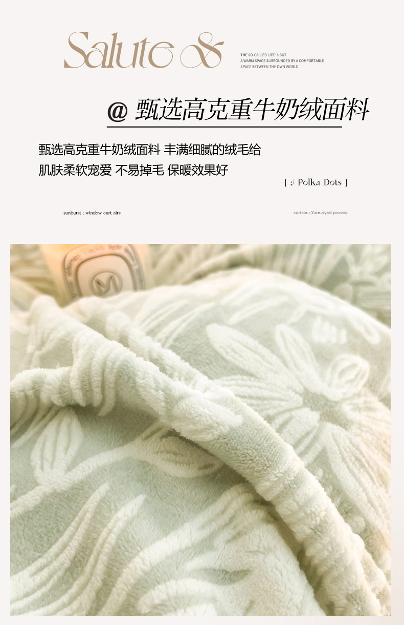 商品名称:2024新款A类高克重立体浮雕牛奶绒加厚保暖系列-被套 花语绿灰