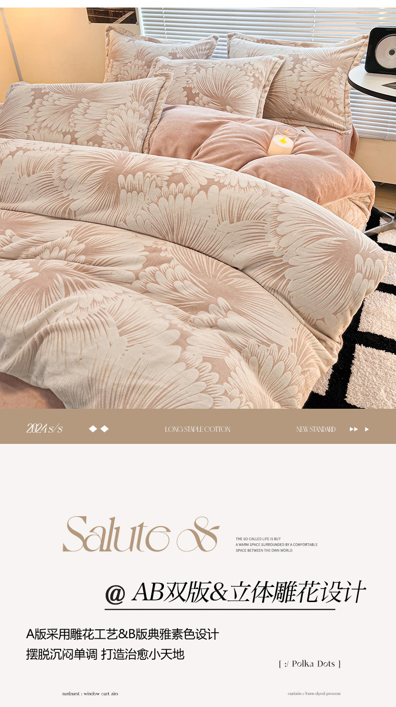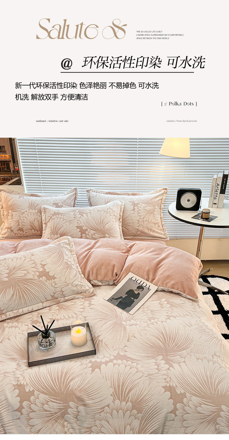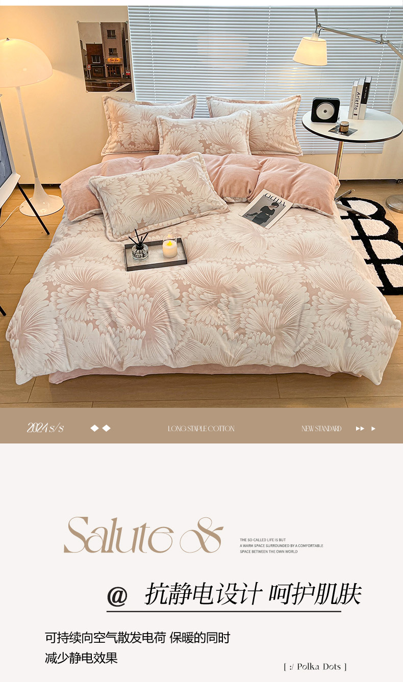 (总)倾慕 2025新款兔绒立体雕花加厚保暖系列四件套,爱娜玉,春絮蓝,春絮绿,伊宁玉,伊宁紫,优朵粉,珍妮粉,珍妮湖蓝
