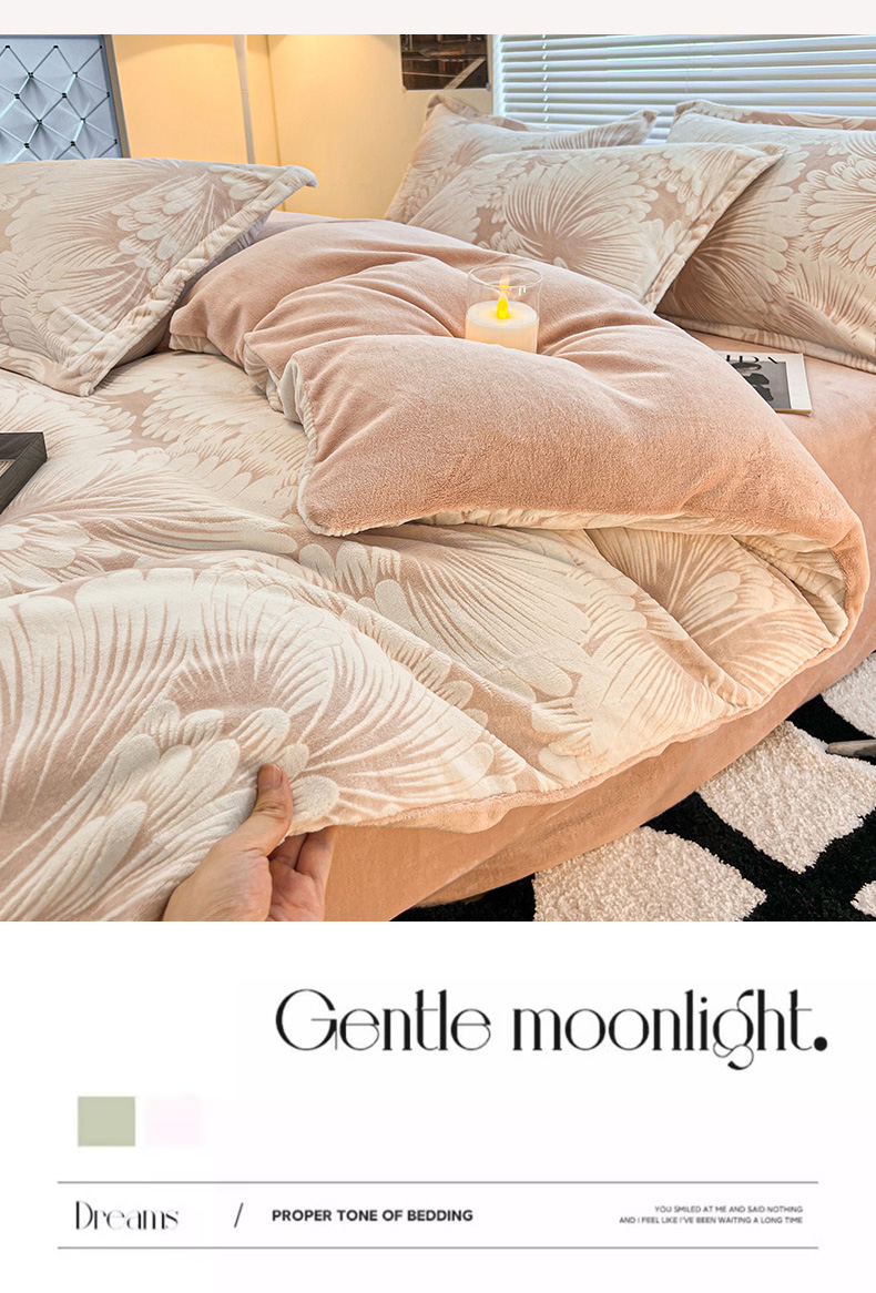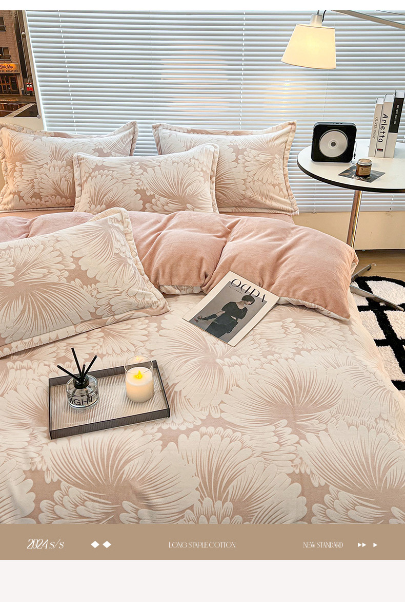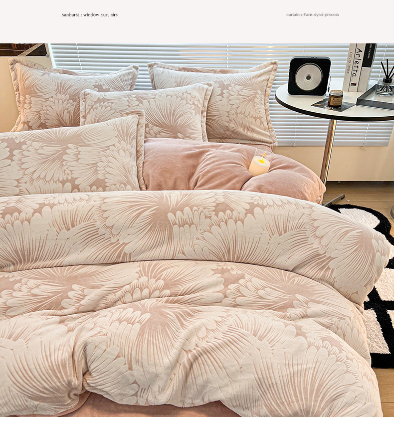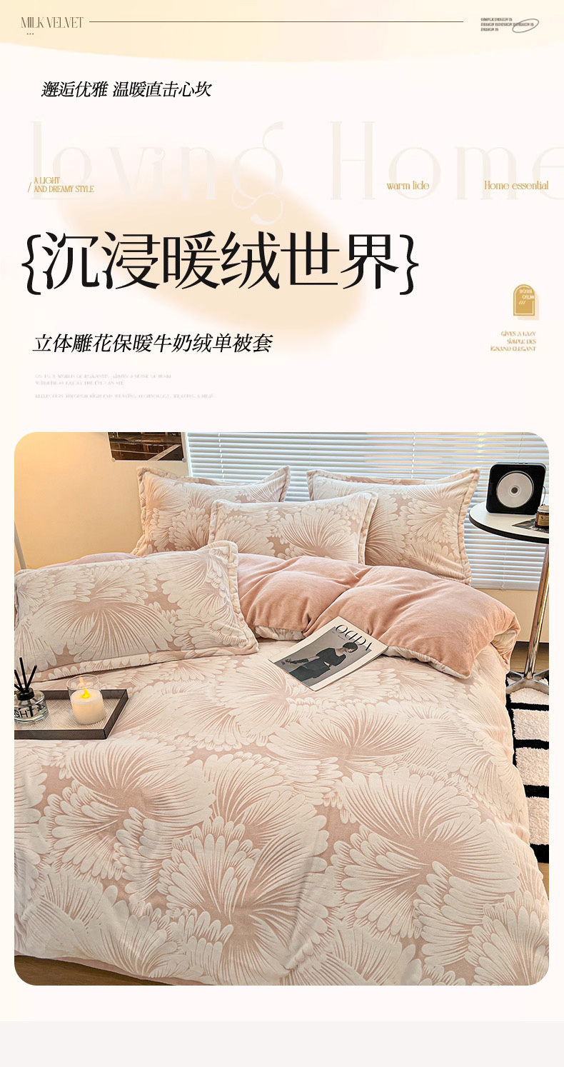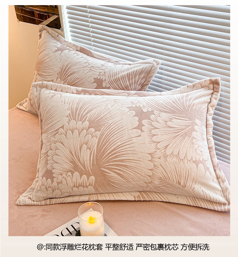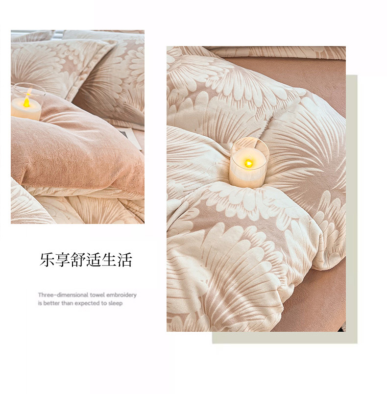 商品名称:2024新款A类高克重立体浮雕牛奶绒加厚保暖系列-被套 烟花浅粉