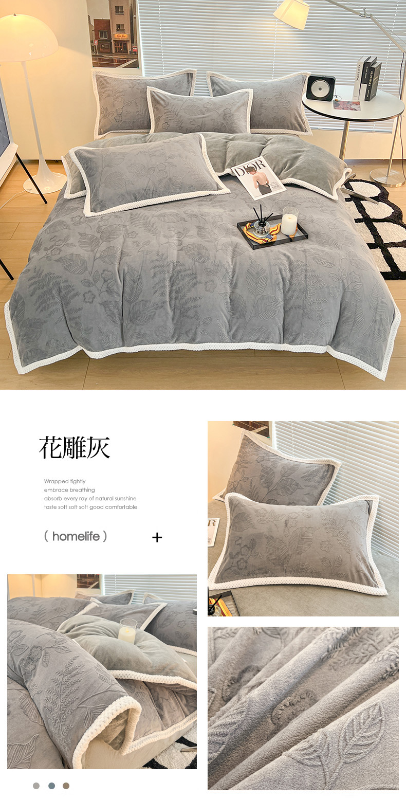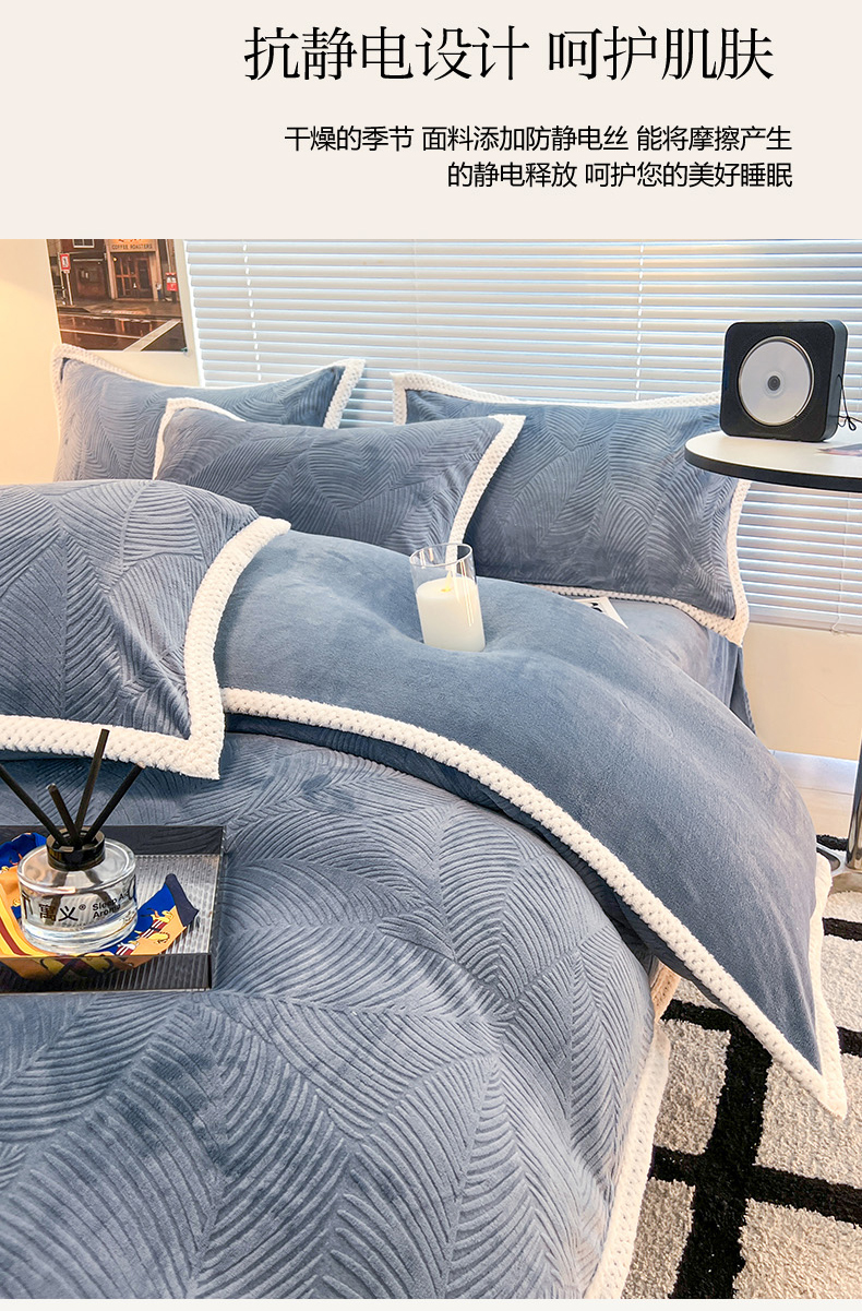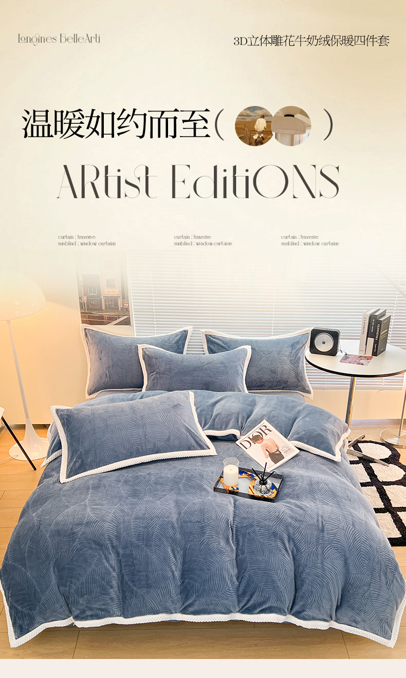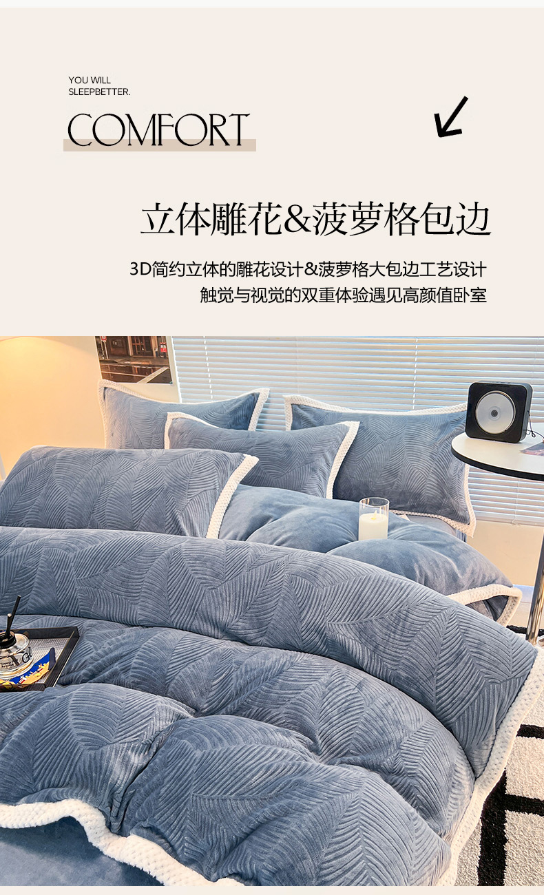 商品名称:(总)2024新款A类高克重3D立体雕花牛奶绒保暖系列套件单品-四件套
